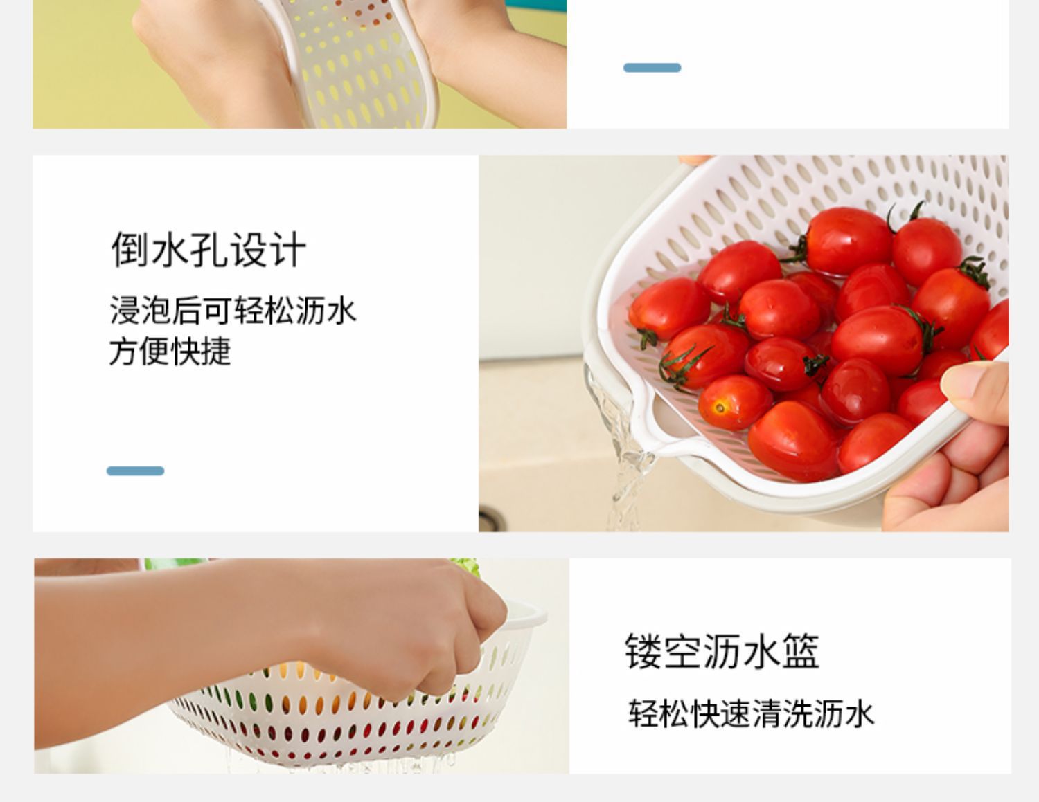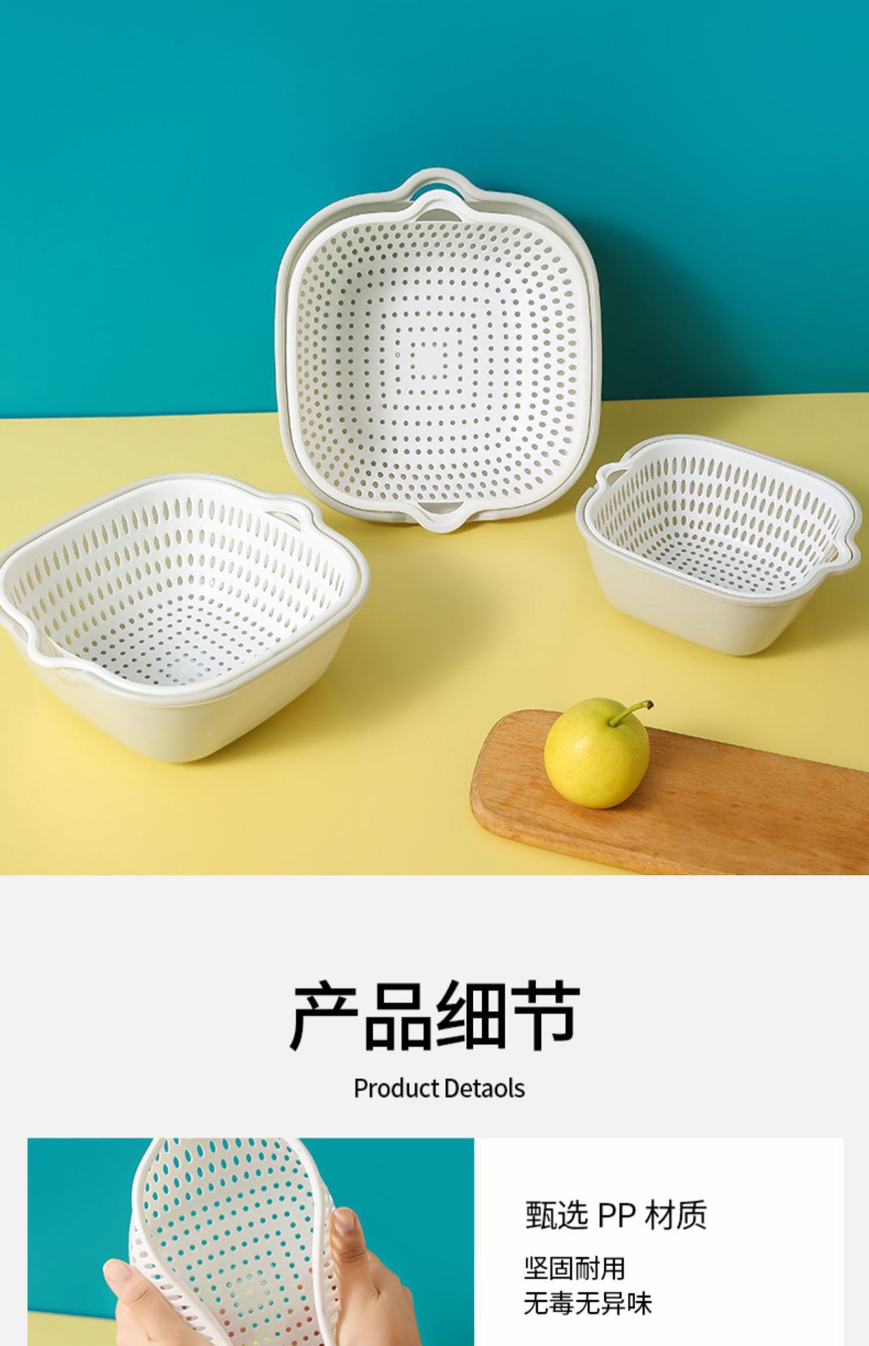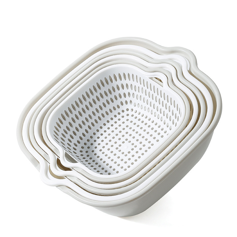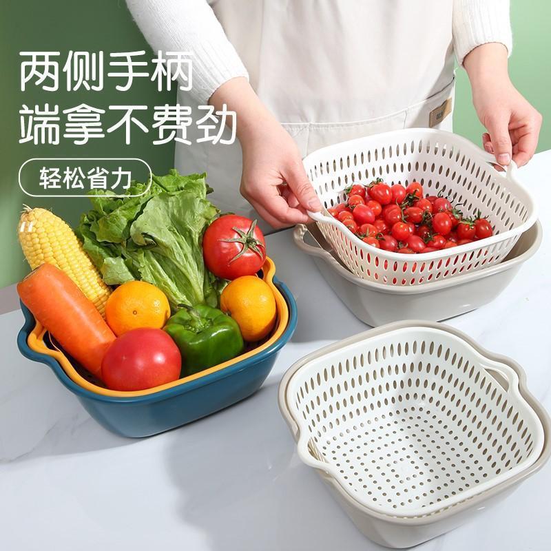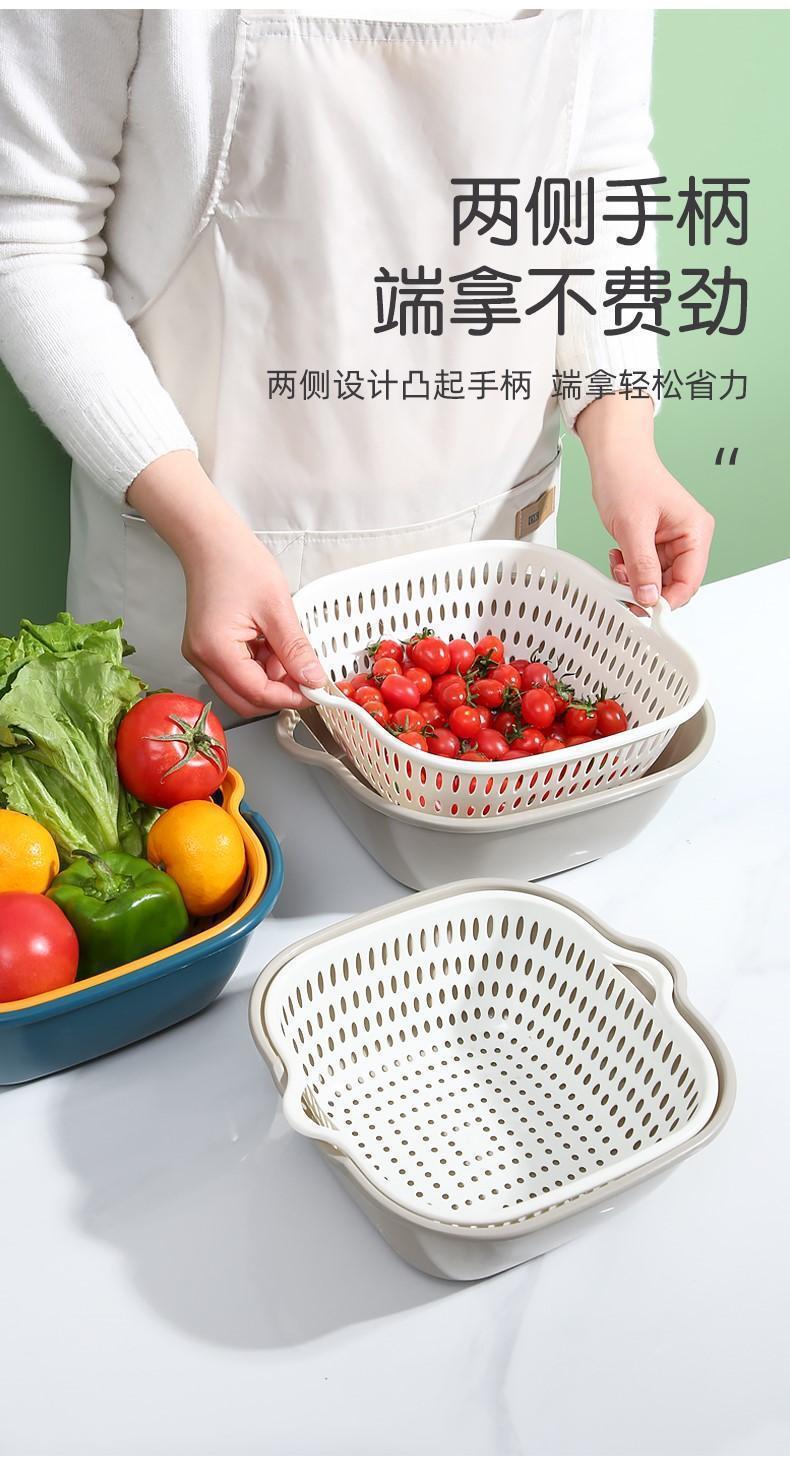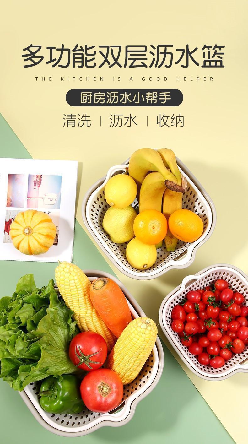 Двухслойная раковина для мытья овощей Корзина для слива Тарелка с фруктами Гостиная Бытовая кухонная корзина из шести предметов для мытья фруктов Корзина для овощей Amoy