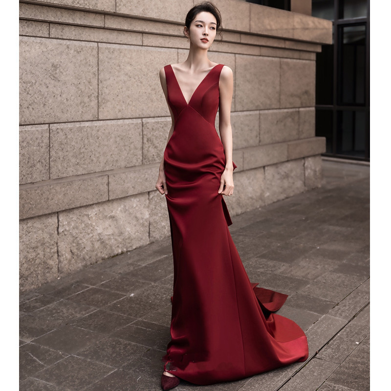 Европейское и американское вечернее платье для банкета 2026, новое, с V-образным вырезом, черное, в стиле легкой роскоши, для светских мероприятий, элегантное, приталенное, фасон «русалка»