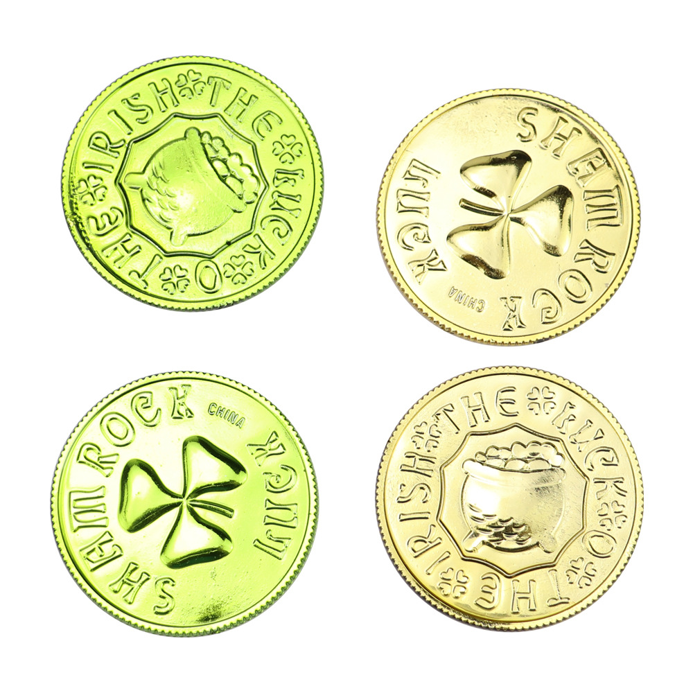 Трансграничная поставка Ирландский фестиваль пластиковых монет День Святого Патрика Трилистник золотые монеты Праздничная Вечеринка Бесплатная раздача