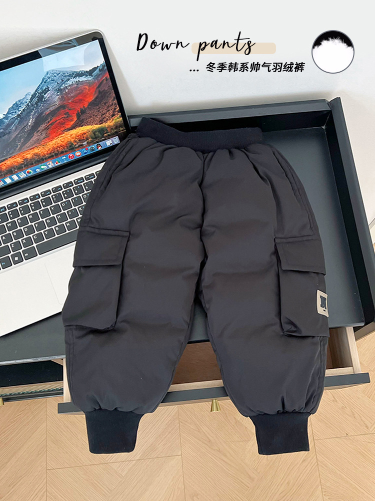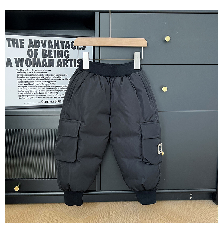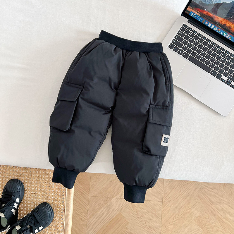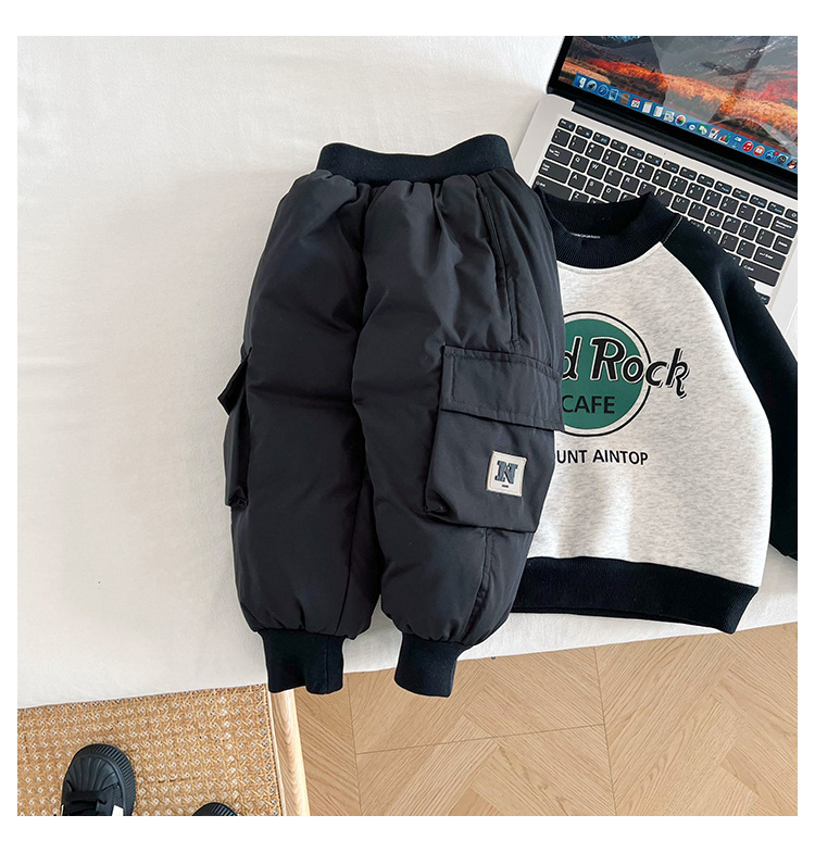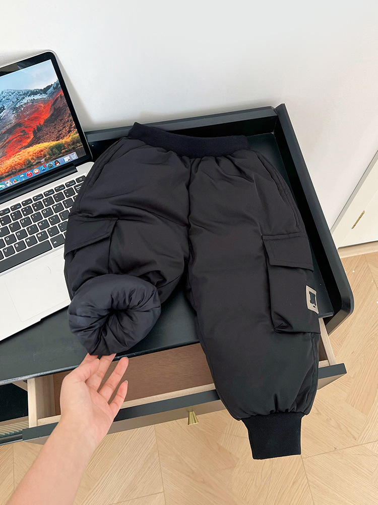 Wind Valley 2023 Зимние новые детские брюки Теплые черные пуховики Универсальные свободные брюки до щиколотки для мальчиков Модные