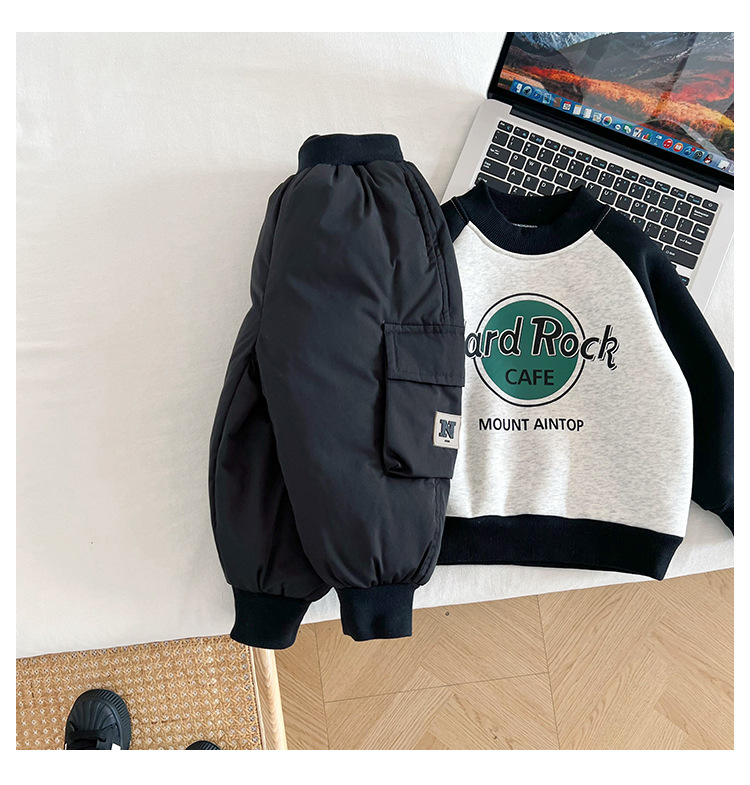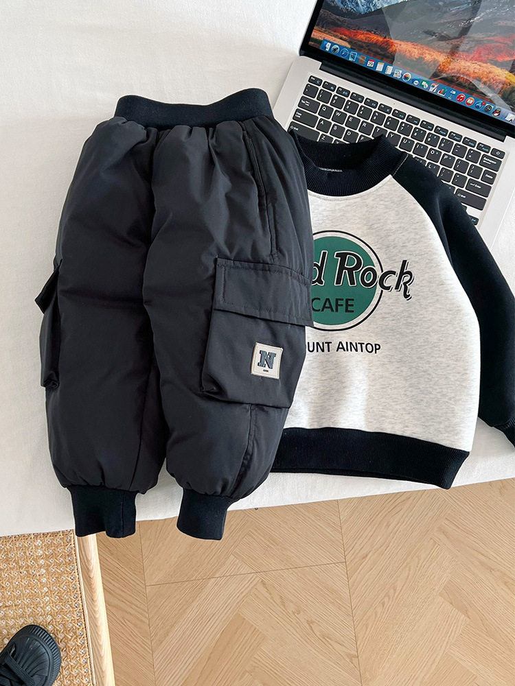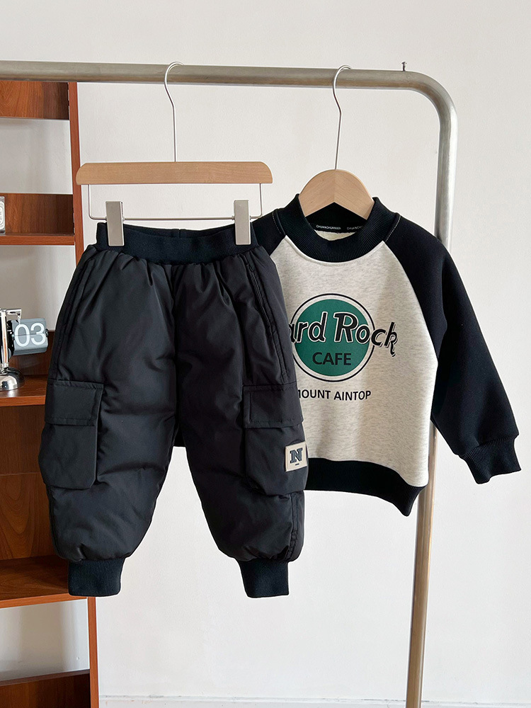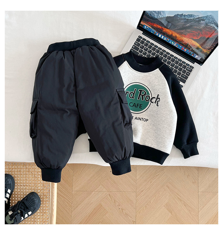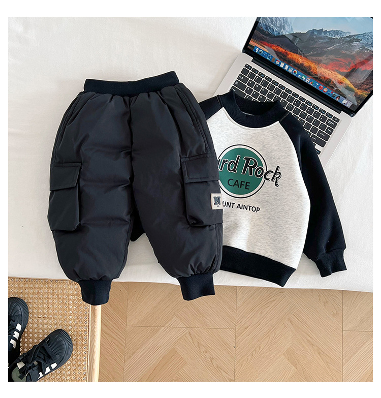 Wind Valley 2023 Зимние новые детские брюки Теплые черные пуховики Универсальные свободные брюки до щиколотки для мальчиков Модные