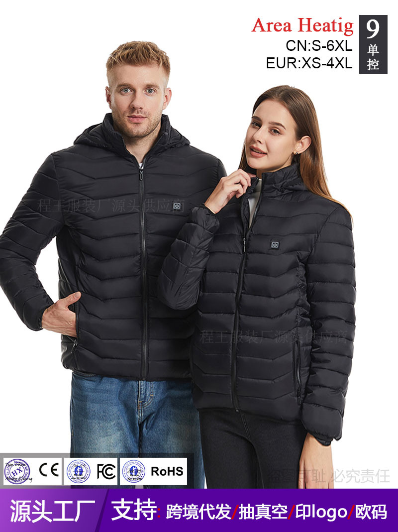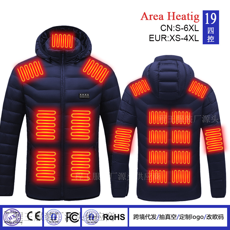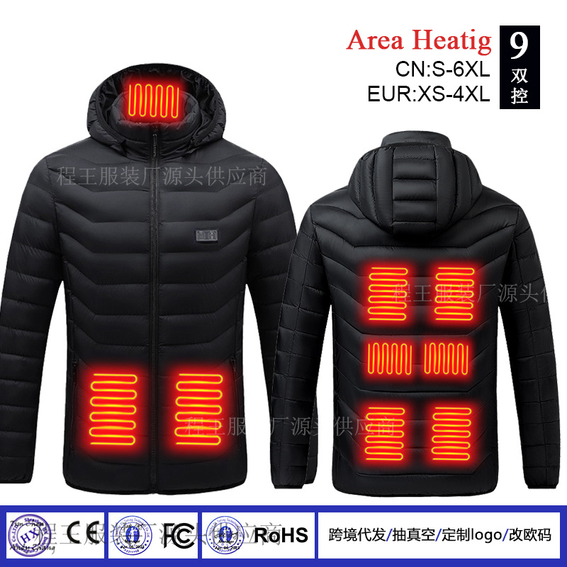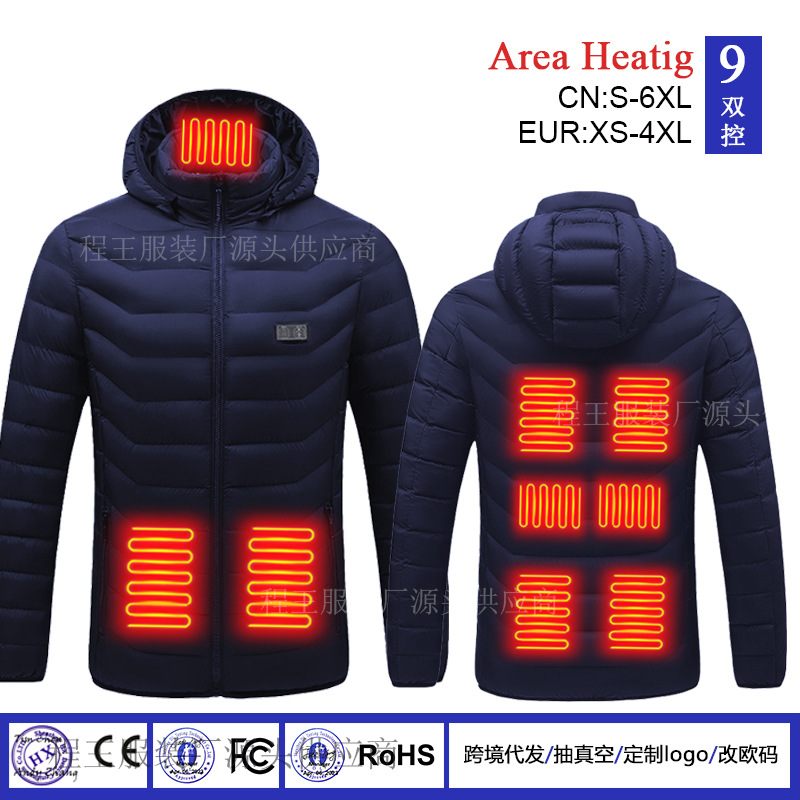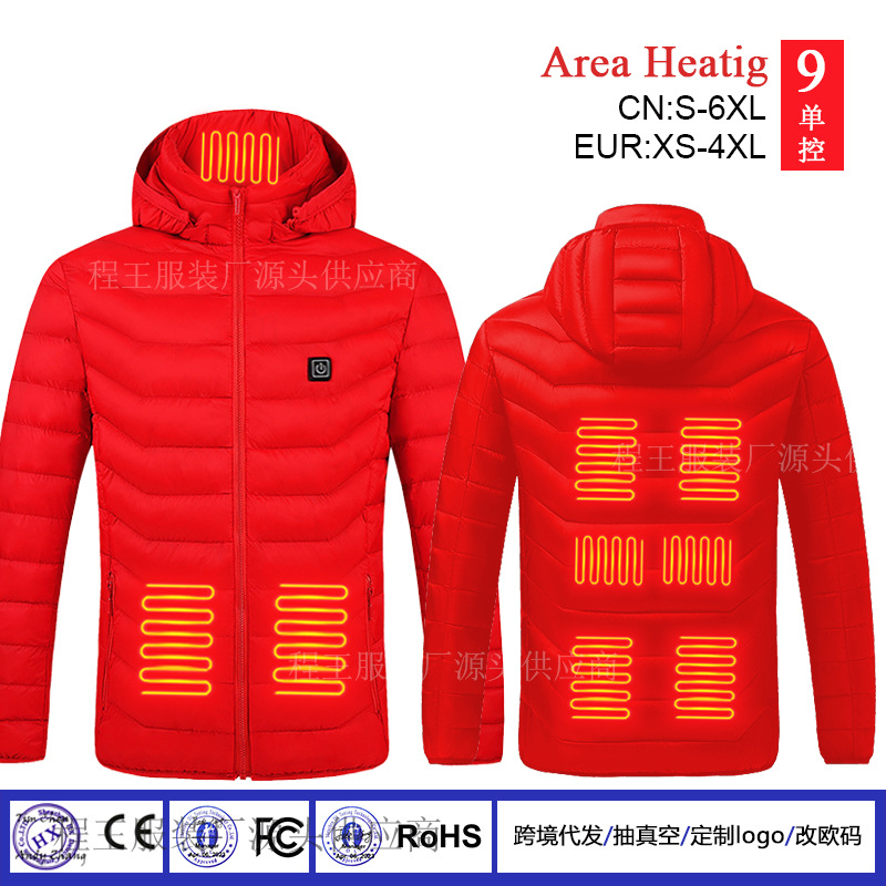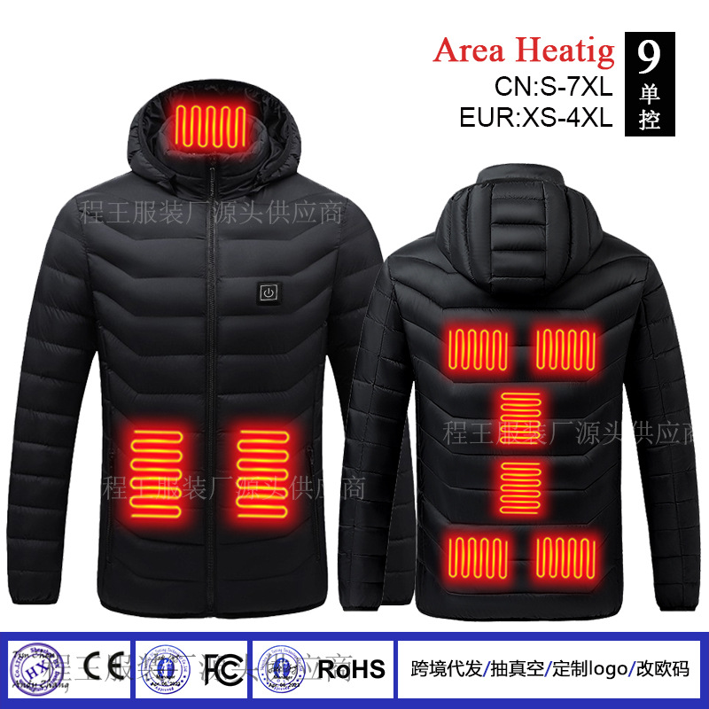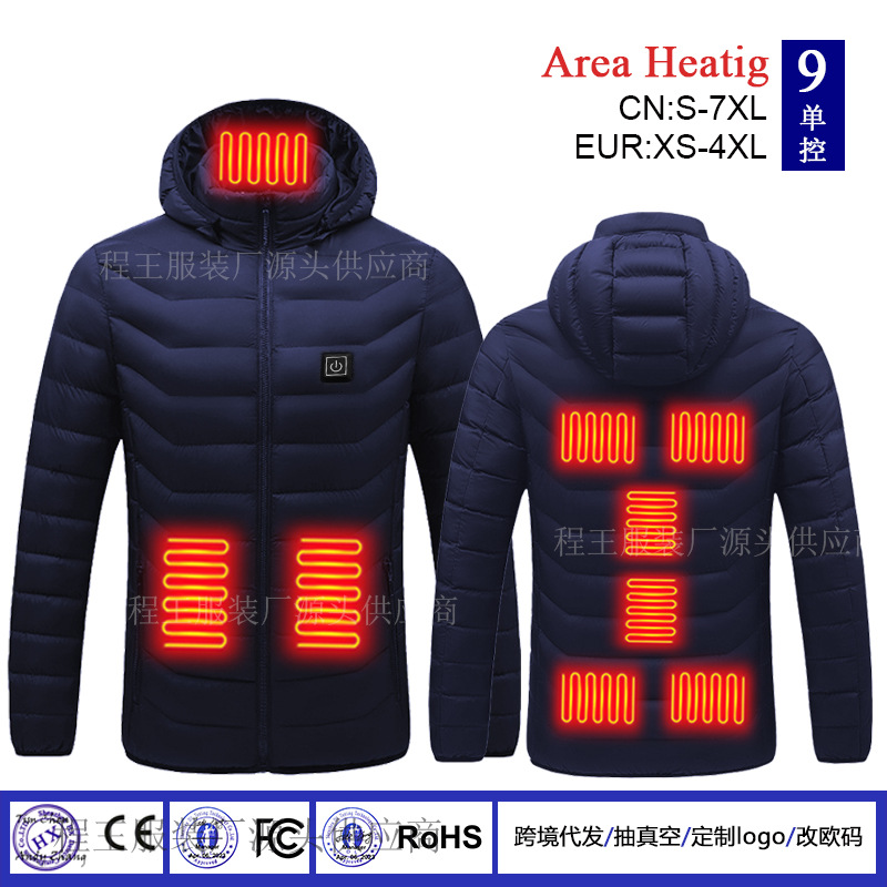 Трансграничный с капюшоном с одним управлением 9 зоны нагрева хлопчатобумажная одежда интеллектуальный подогрев наружная хлопчатобумажная одежда для защиты от холода, теплая электрическая куртка водонепроницаемая