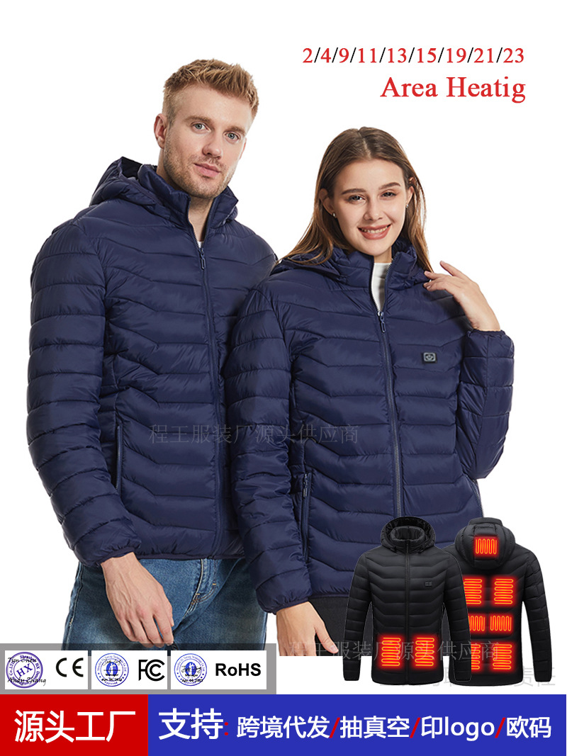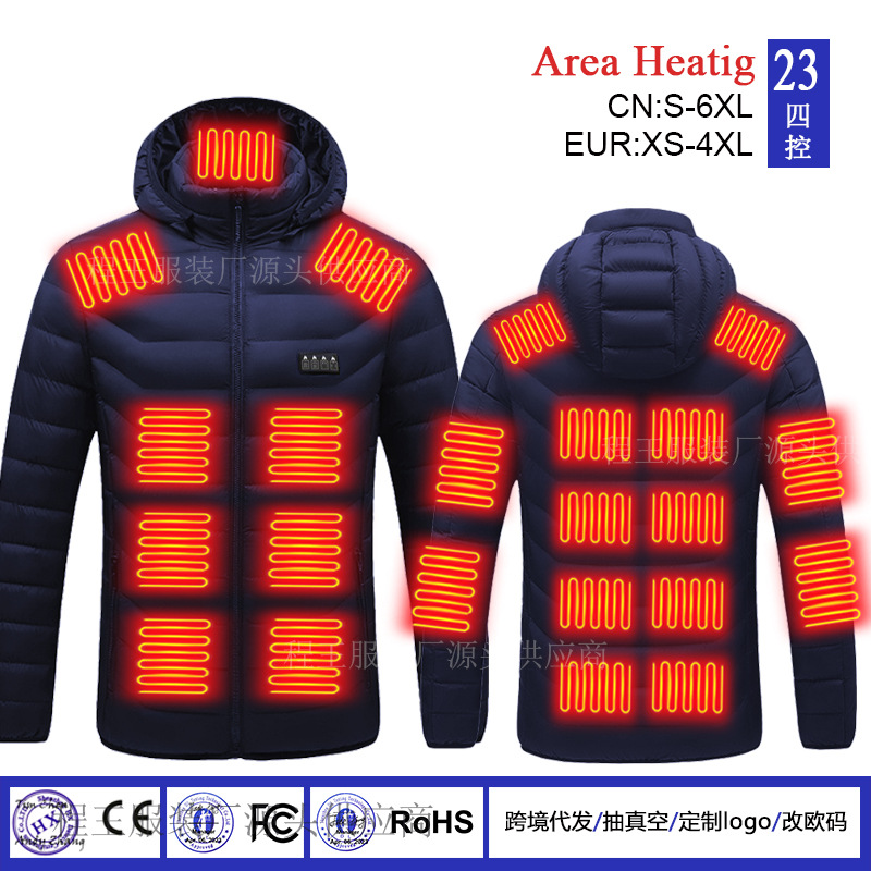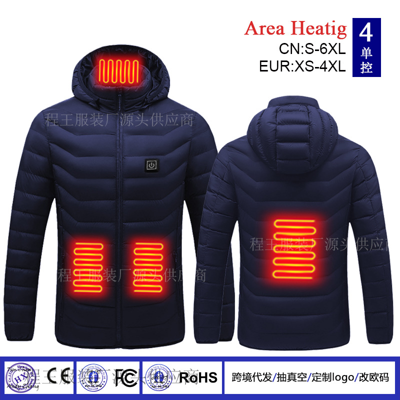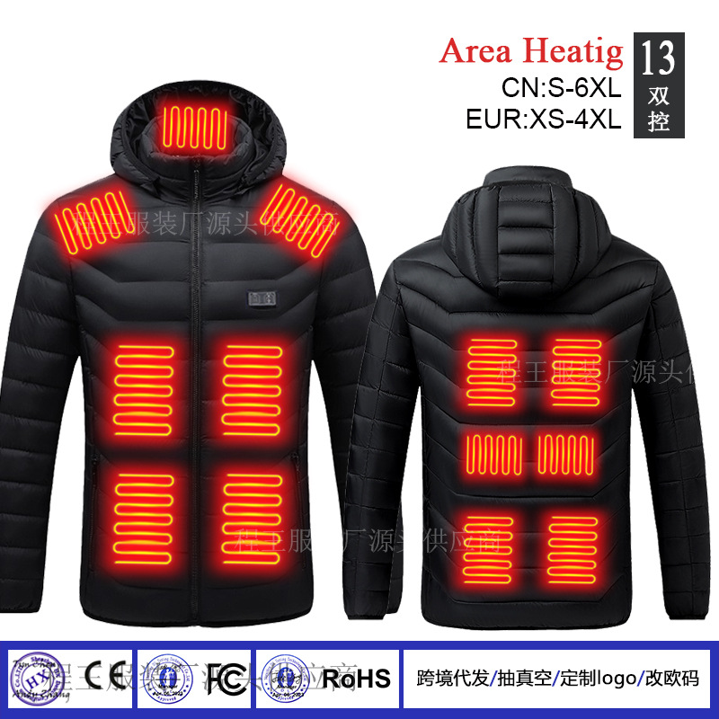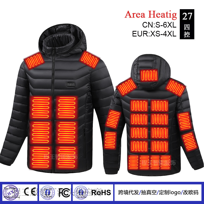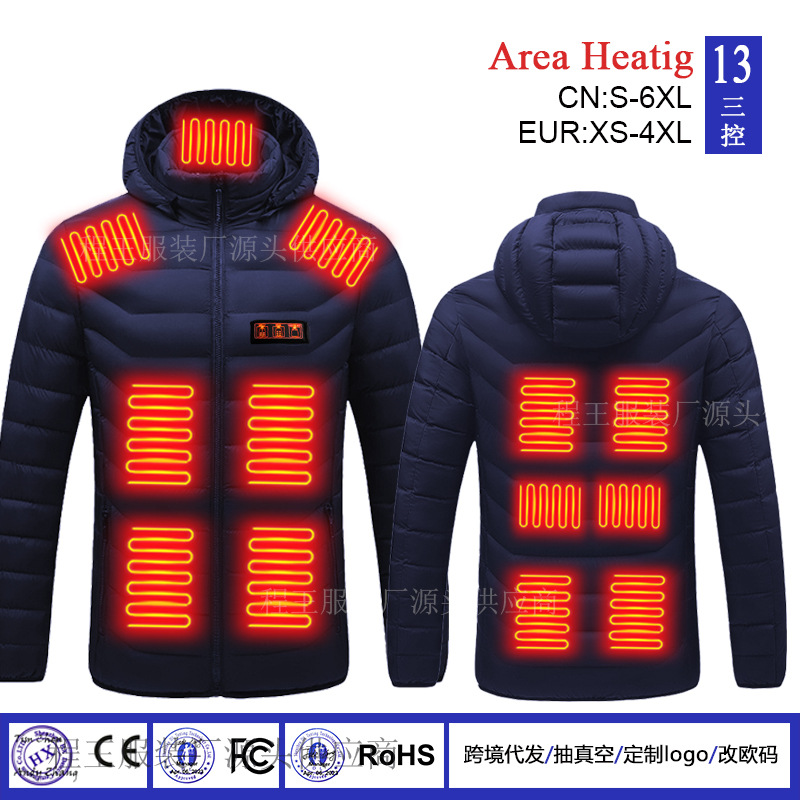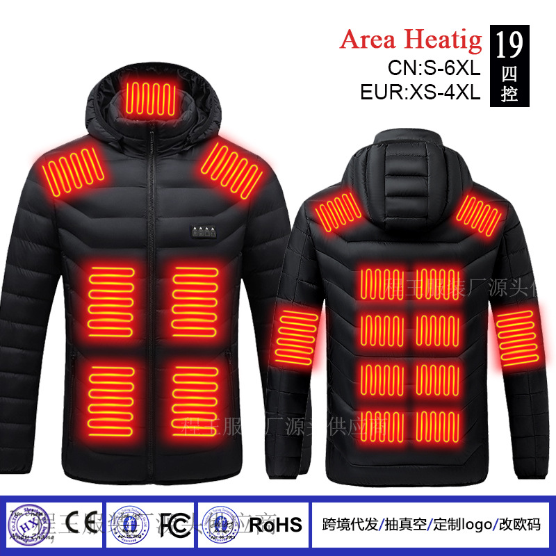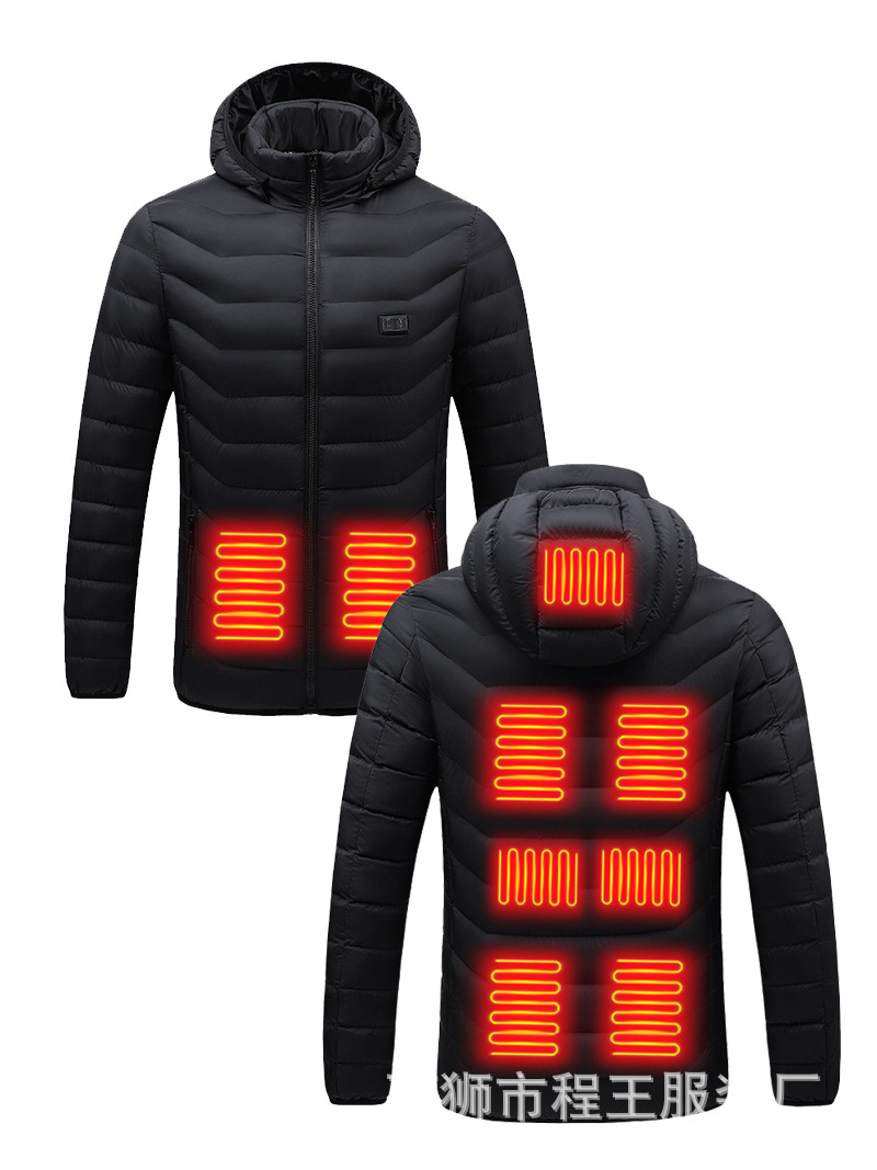 Трансграничный с капюшоном с одним управлением 9 зоны нагрева хлопчатобумажная одежда интеллектуальный подогрев наружная хлопчатобумажная одежда для защиты от холода, теплая электрическая куртка водонепроницаемая