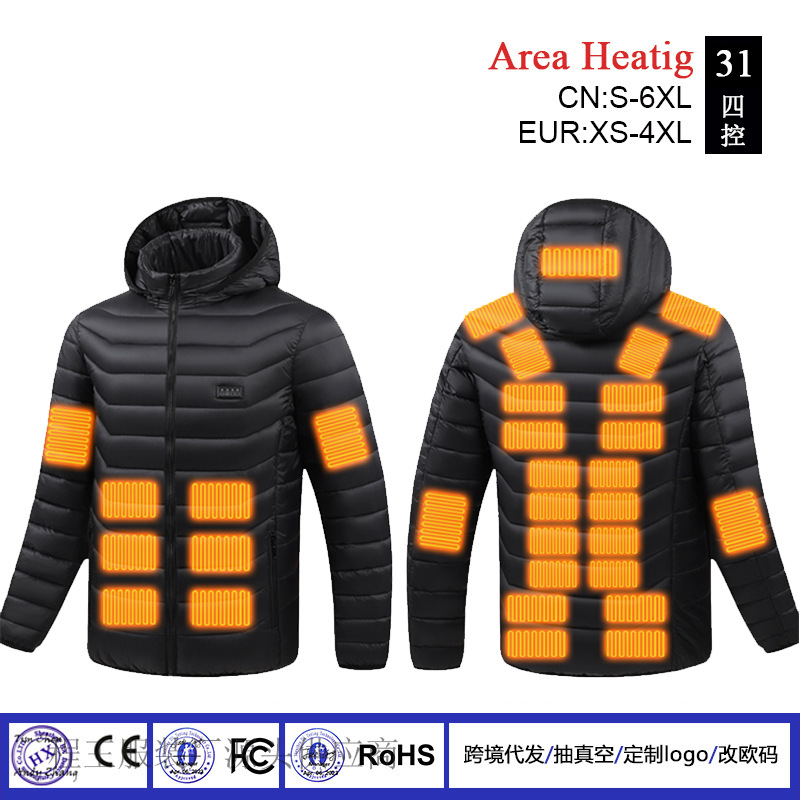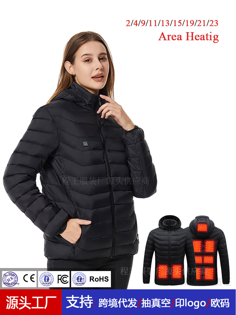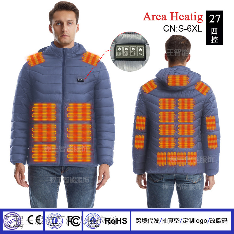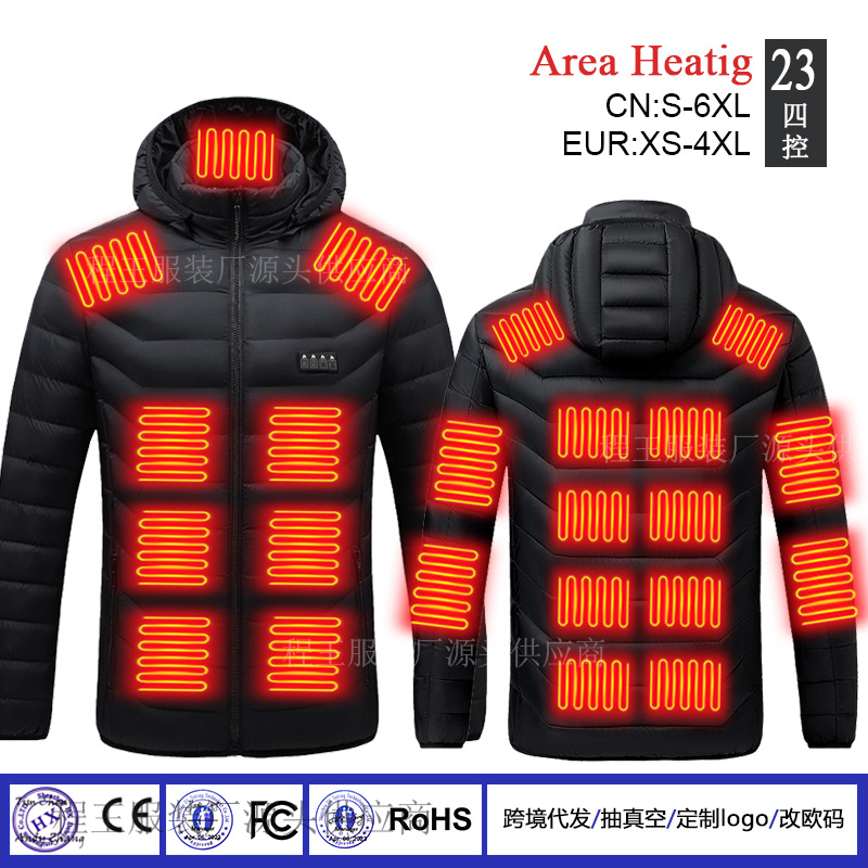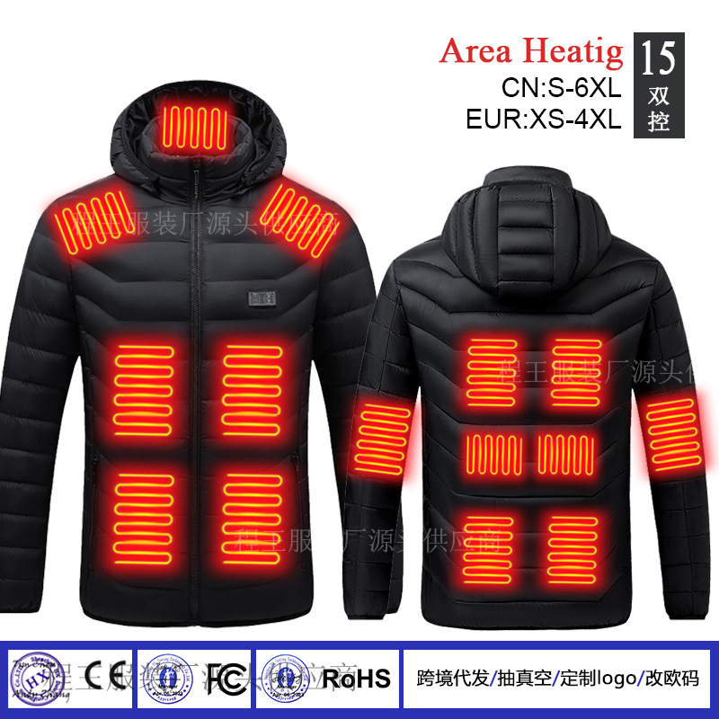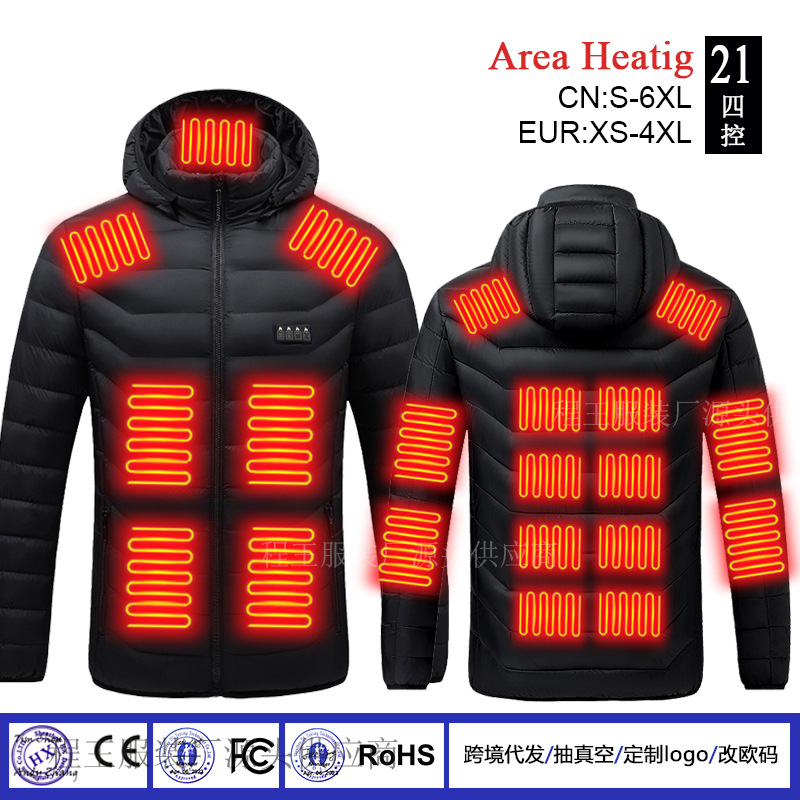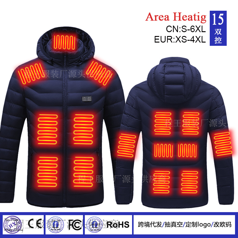 Трансграничный с капюшоном с одним управлением 9 зоны нагрева хлопчатобумажная одежда интеллектуальный подогрев наружная хлопчатобумажная одежда для защиты от холода, теплая электрическая куртка водонепроницаемая