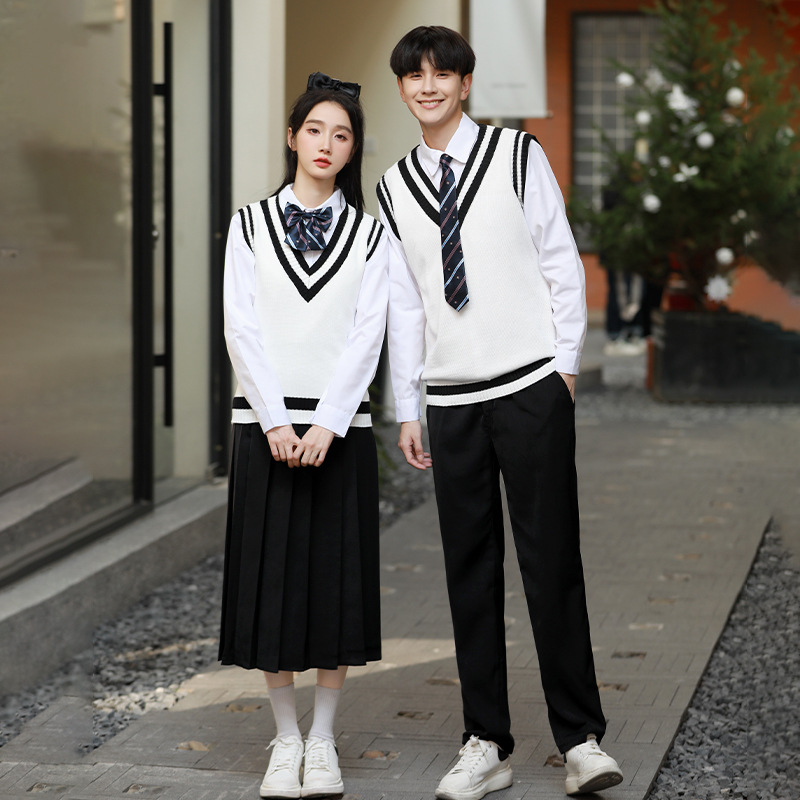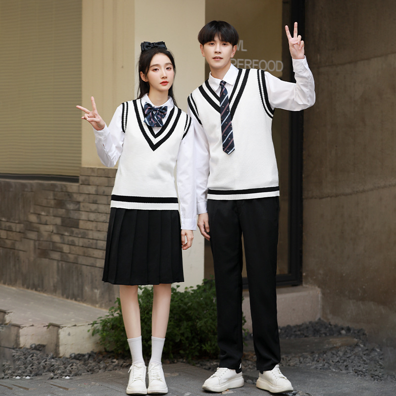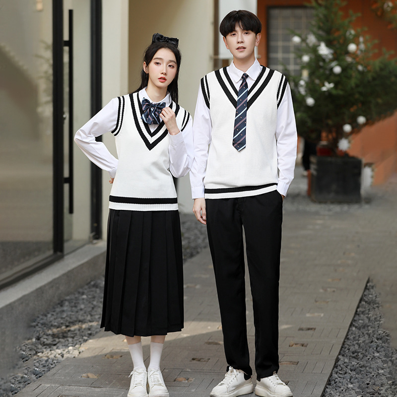 Костюм для школьной формы в стиле колледжа Учащиеся средней школы Студенты средней школы в Корейском стиле Кампус Британский свитер Жилет-тройной классный костюм Осень