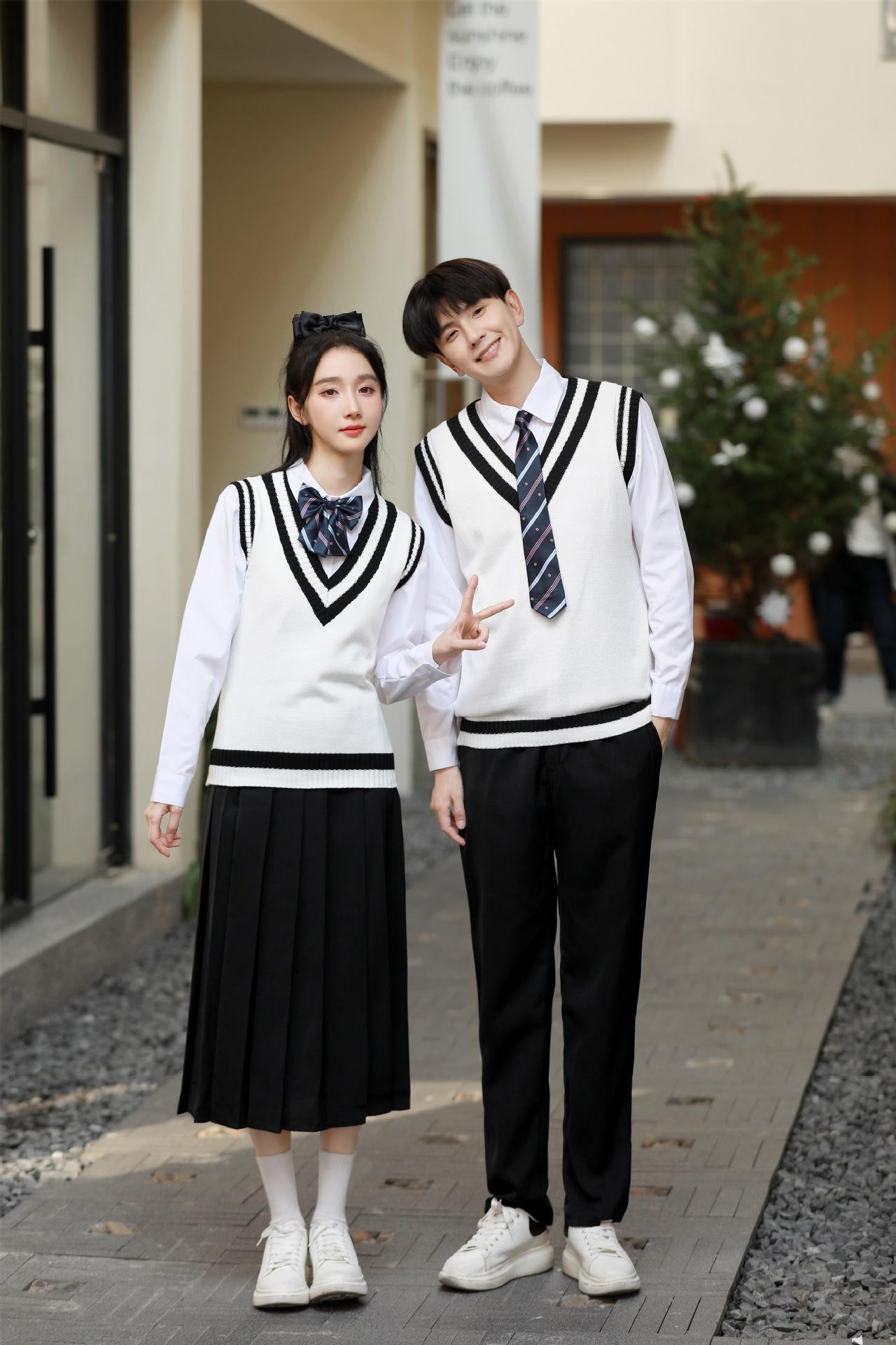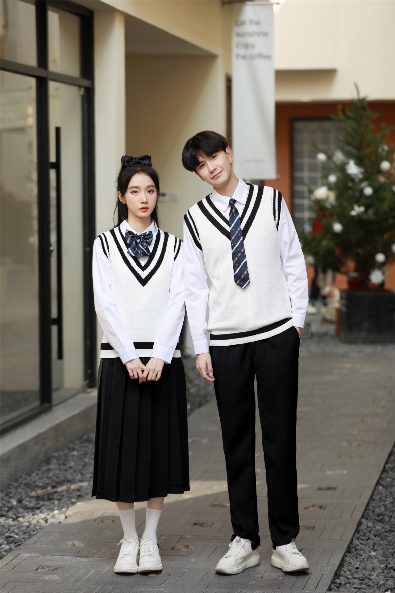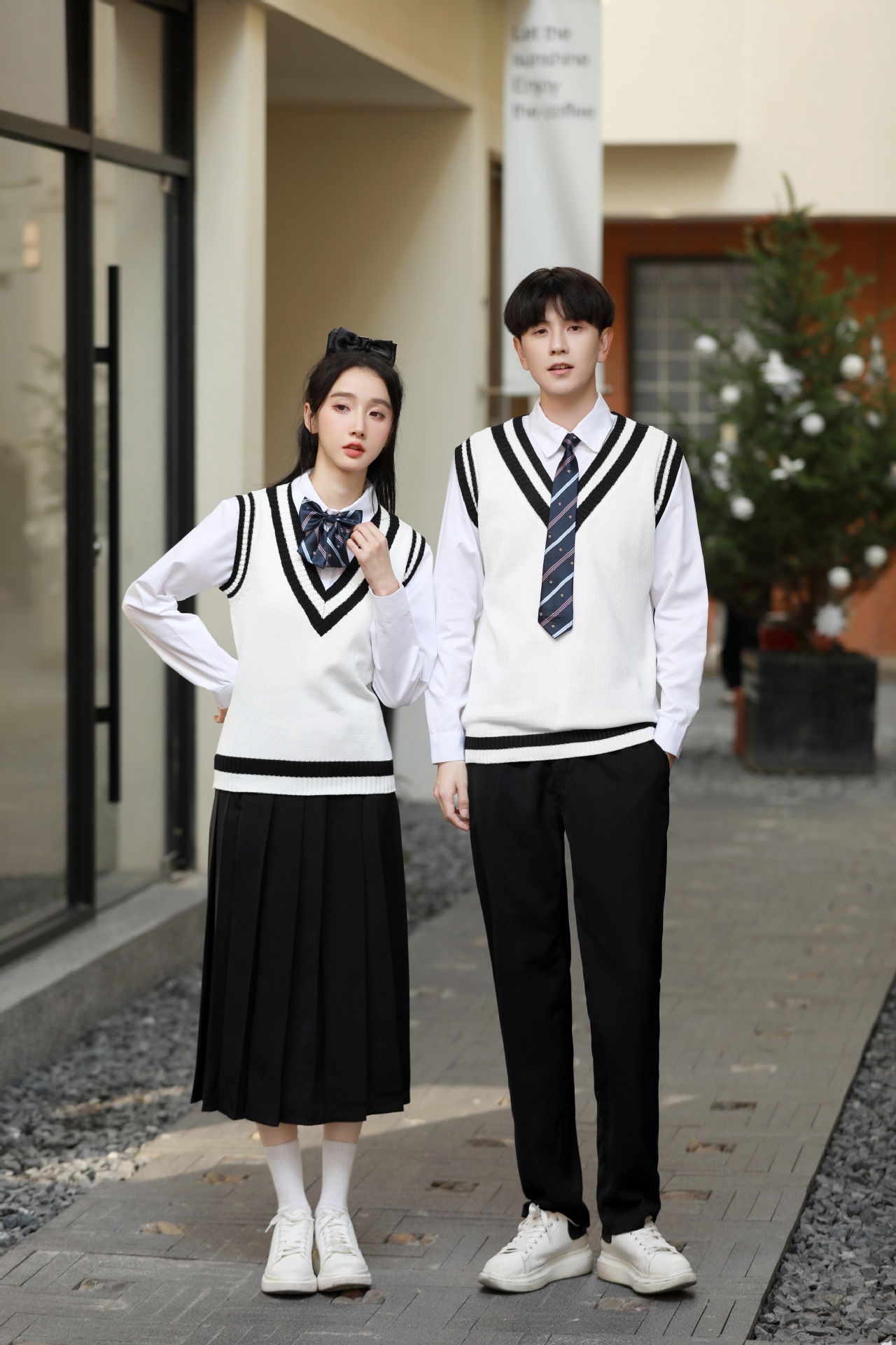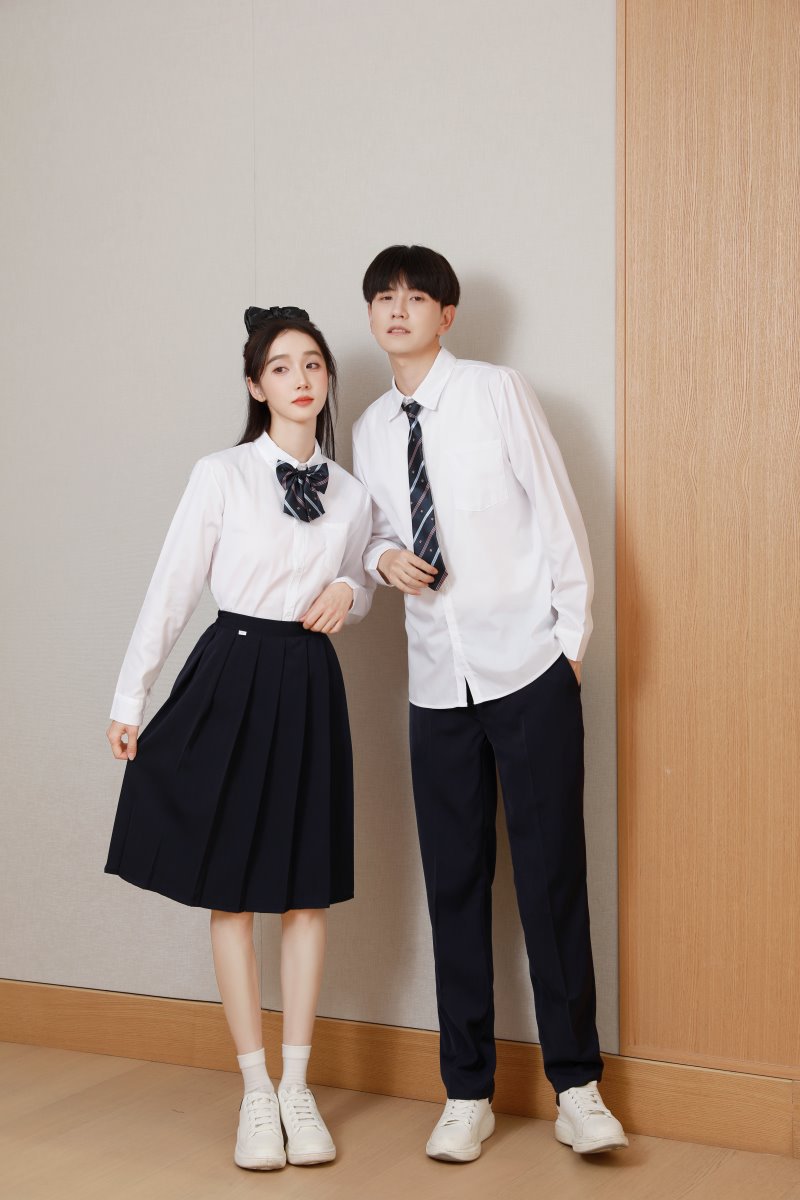 Женский белый длинный рукав + черная юбка + белый жилет + синий галстук-бабочка с короной; Женский белый длинный рукав + черное длинное платье + белый жилет + синий галстук с короной; Мужской белый длинный рукав + черные брюки + белый жилет + синий галстук с короной; Женская белая с длинным рукавом + темно-синяя юбка + корона-синий галстук-бабочка; Женщин белый длинный рукав + юбка среднего Плиссированные длинные юбки + Корона синий галстук-бабочка; Мужской белый длинный рукав + темно-синие брюки + Корона синий галстук; Белый жилет (одинаковый для мужчин и женщин)