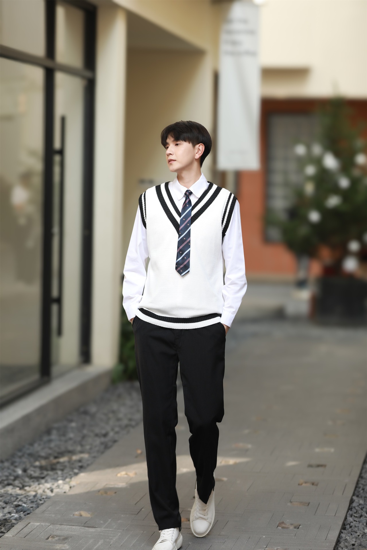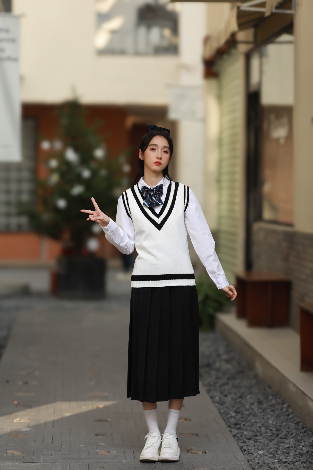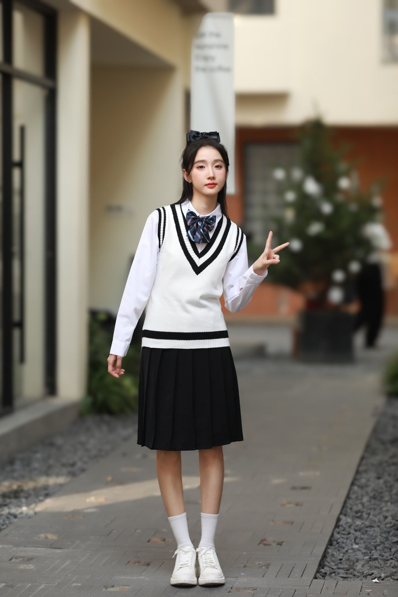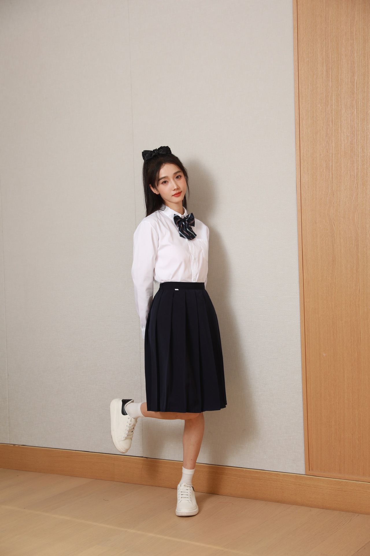 Женский белый длинный рукав + черная юбка + белый жилет + синий галстук-бабочка с короной; Женский белый длинный рукав + черное длинное платье + белый жилет + синий галстук с короной; Мужской белый длинный рукав + черные брюки + белый жилет + синий галстук с короной; Женская белая с длинным рукавом + темно-синяя юбка + корона-синий галстук-бабочка; Женщин белый длинный рукав + юбка среднего Плиссированные длинные юбки + Корона синий галстук-бабочка; Мужской белый длинный рукав + темно-синие брюки + Корона синий галстук; Белый жилет (одинаковый для мужчин и женщин)