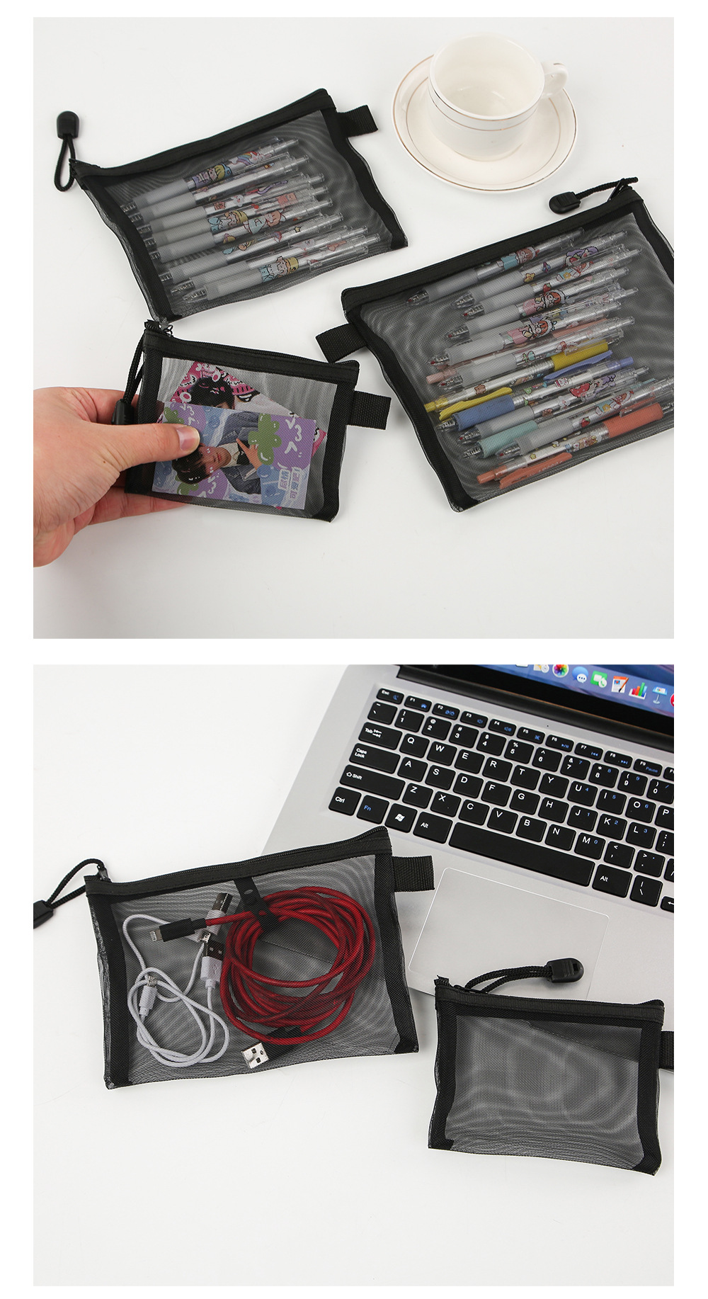 Черная сетчатая сумка на молнии из ПЭТ для стирки, помады, макияжа, дорожная косметичка, маленькая сумка для карточек, сумка для хранения ювелирных изделий