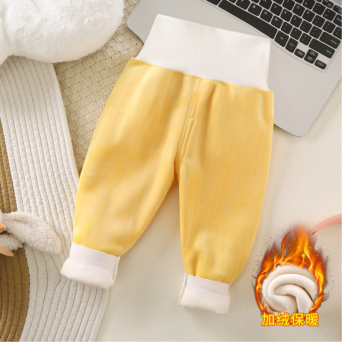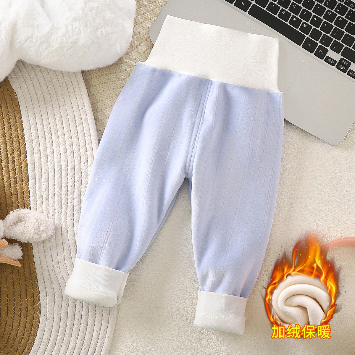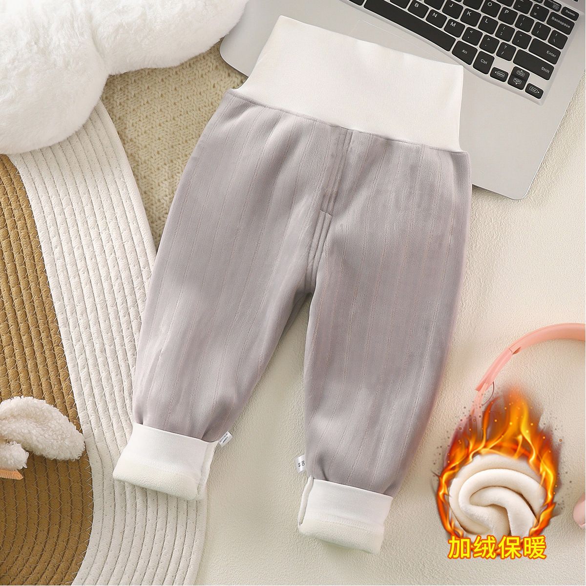 Детские теплые брюки, детские длинные брюки на флисовой подкладке, осенне-зимние утолщенные брюки для защиты живота с высокой талией для девочек и мальчиков, Детские Пижамные брюки