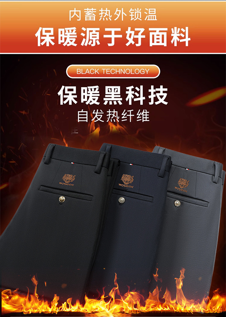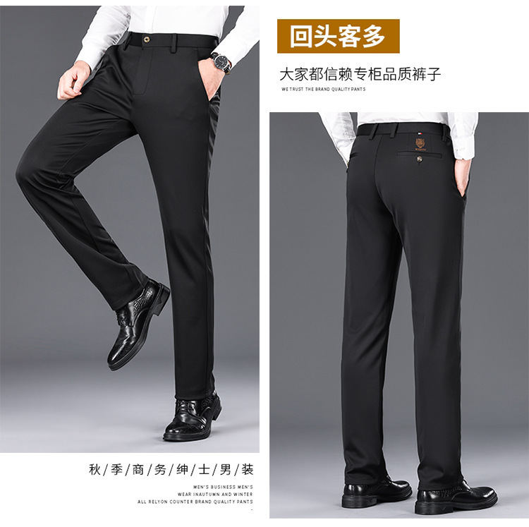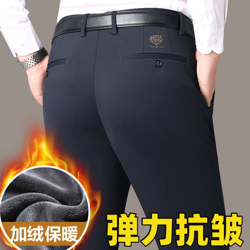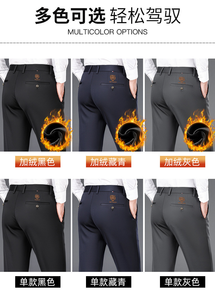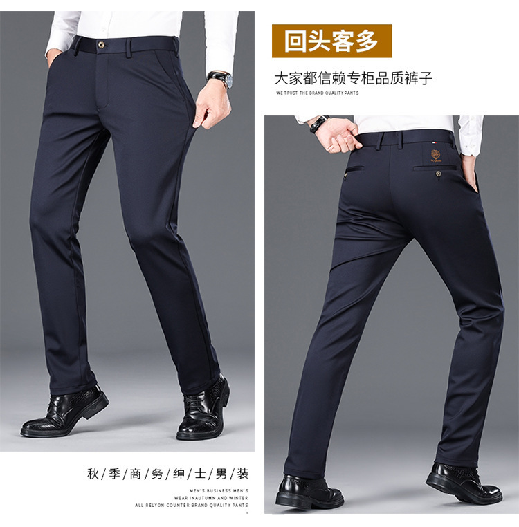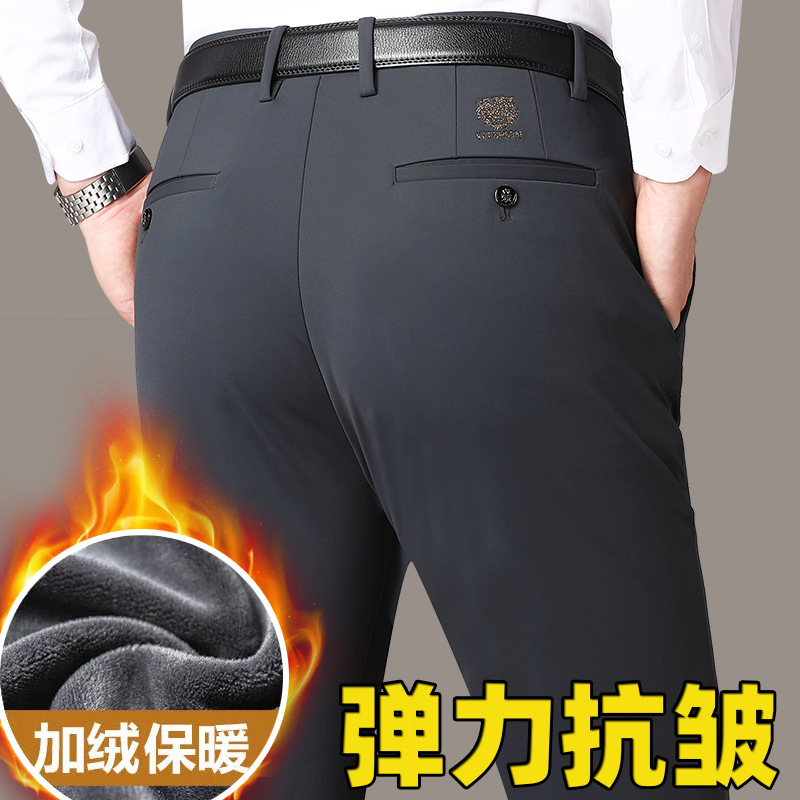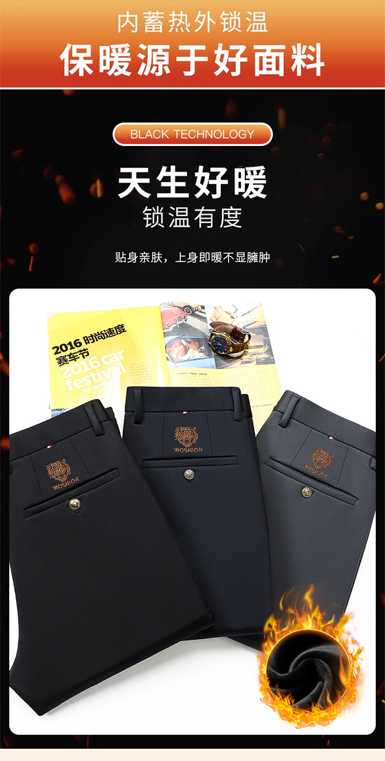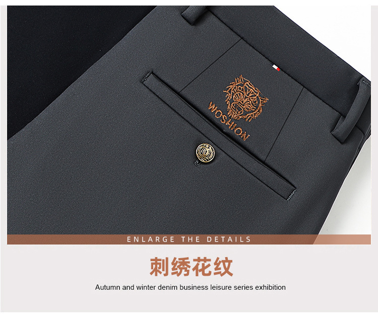 Осенние и зимние толстые мужские повседневные брюки тигра вышивка головы тигра мужские брюки прямые против морщин бизнес-брюки среднего возраста свободные