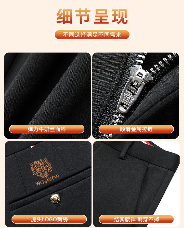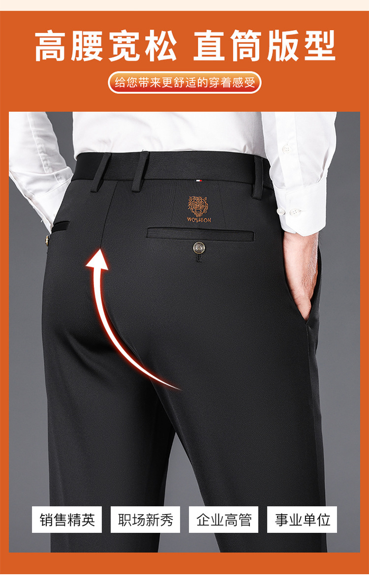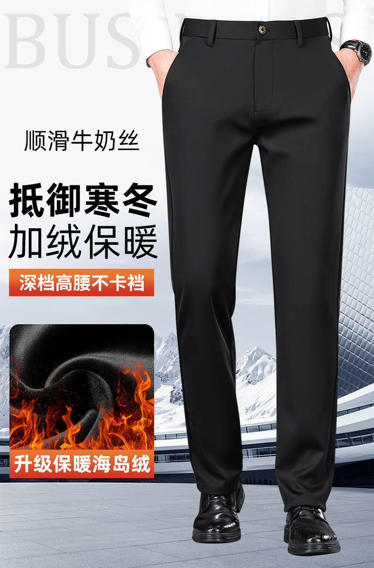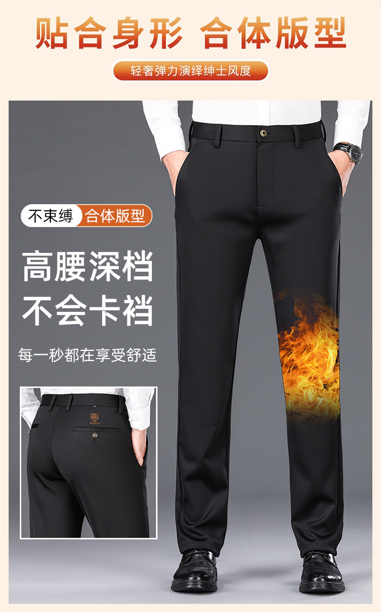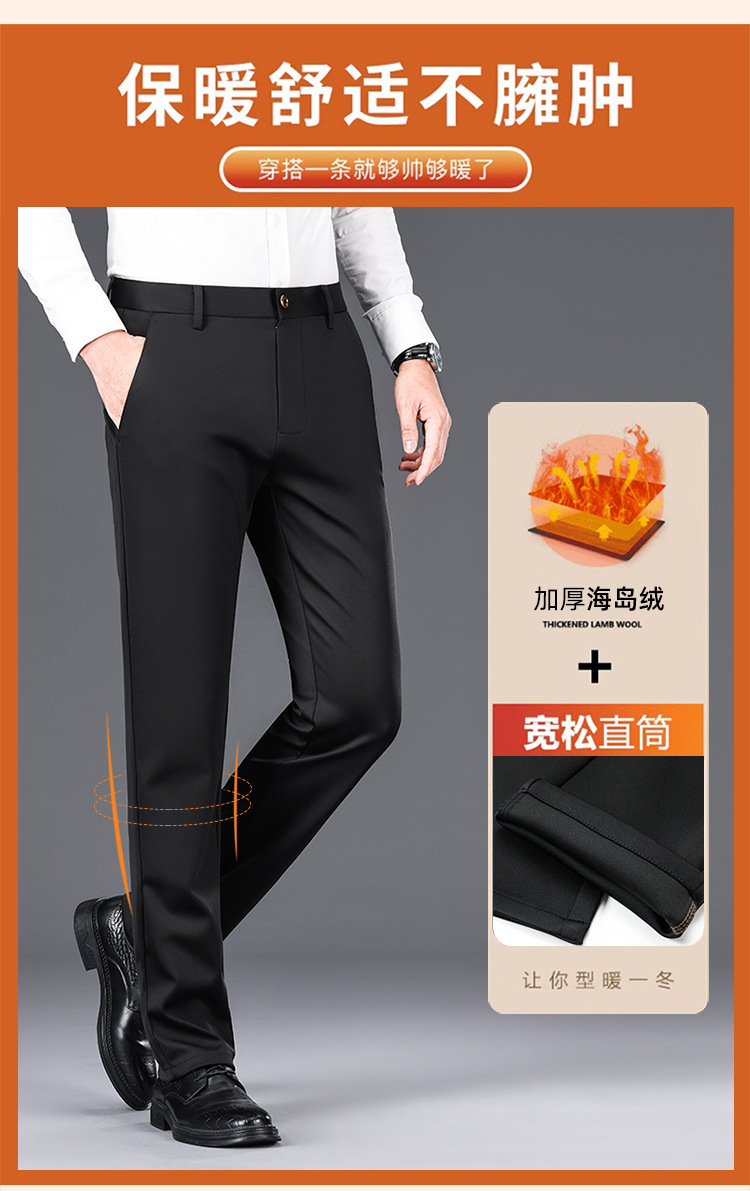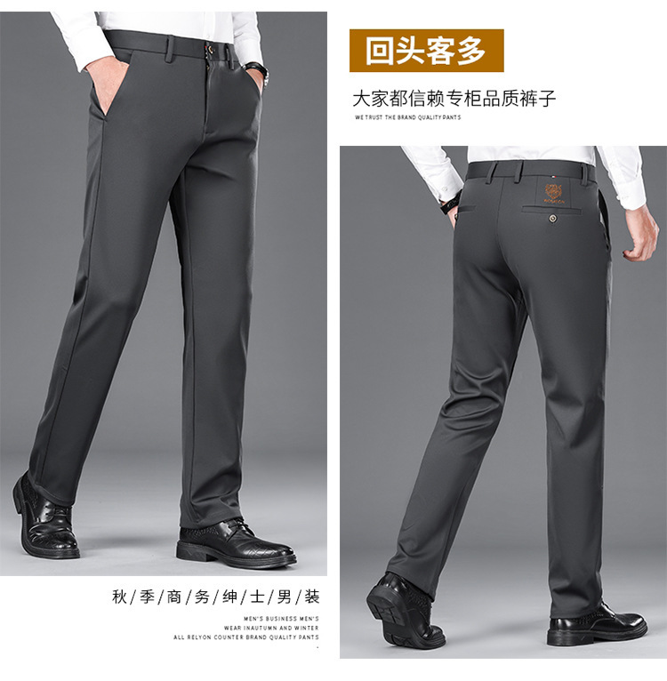 Осенние и зимние толстые мужские повседневные брюки тигра вышивка головы тигра мужские брюки прямые против морщин бизнес-брюки среднего возраста свободные