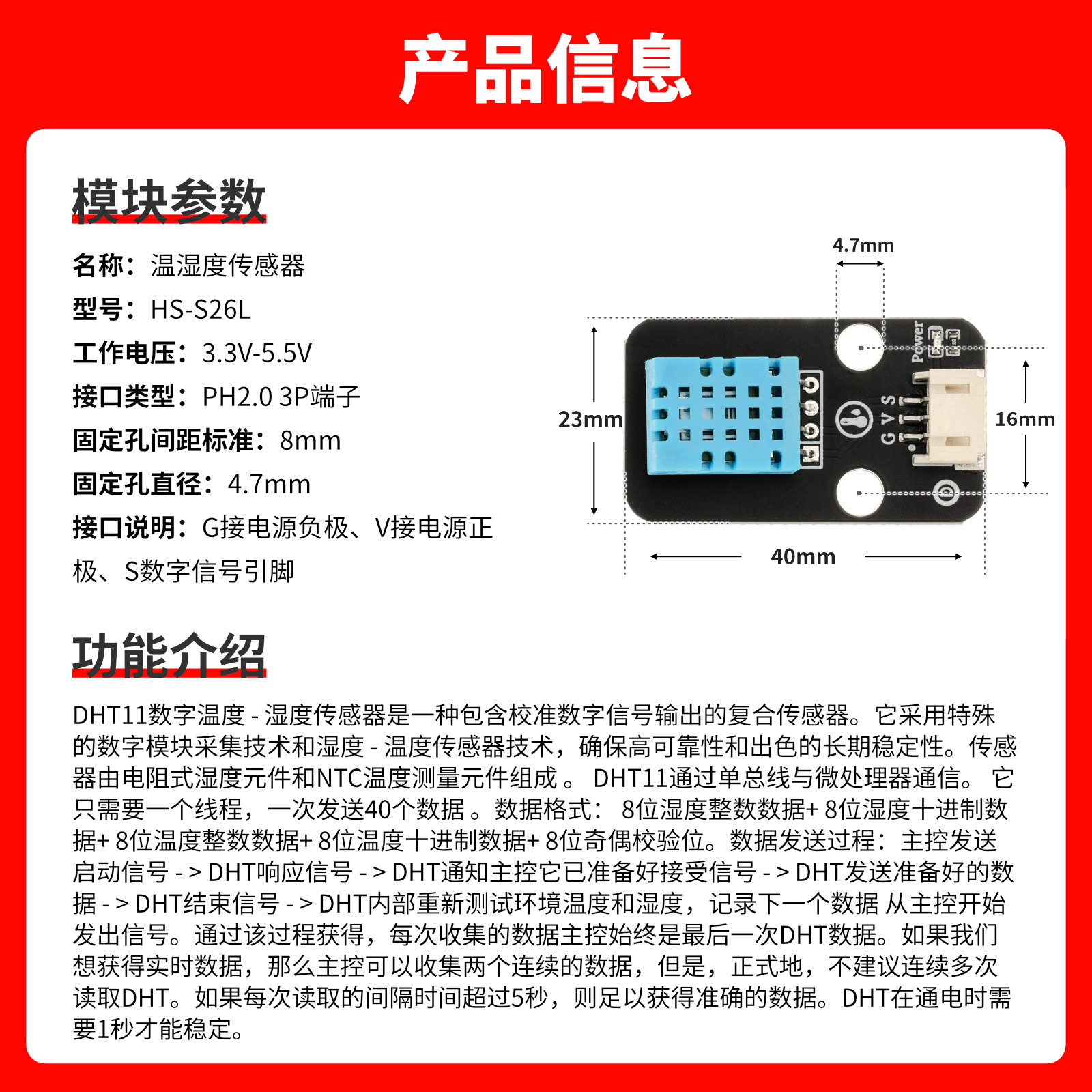 DHT11数字温度 - 湿度传感器是一种包含校准数字信号输出的复合传感器。它采用特殊的数字模块采集技术和湿度 - 温度传感器技术,确保高可靠性和出色的长期稳定性。传感器由电阻式湿度元件和NTC温度测量元件组成 。 DHT11通过单总线与微处理器通信。 它只需要一个线程,一次发送40个数据 。