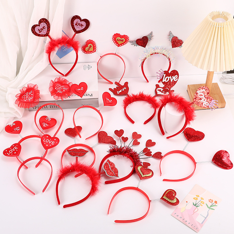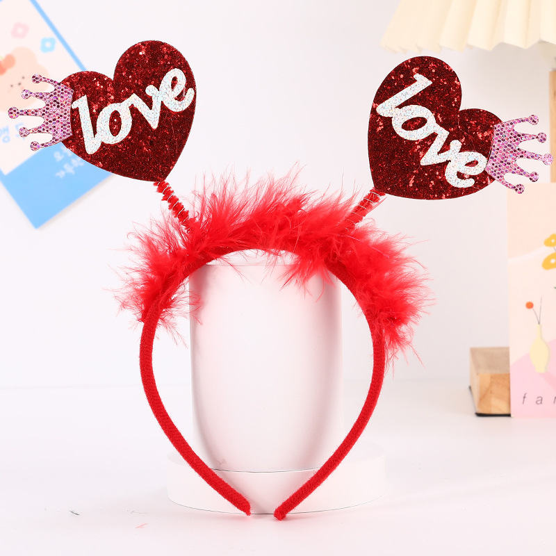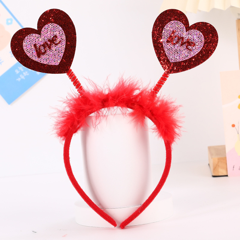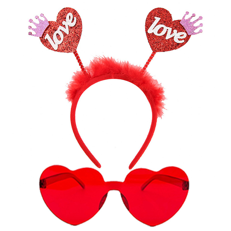 Новый трансграничный европейский и американский День Святого Валентина, красная повязка для волос, вечеринка, блестки, Персиковое сердце, пряжка, костюм для очков для любви