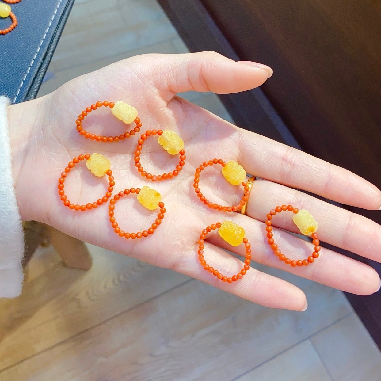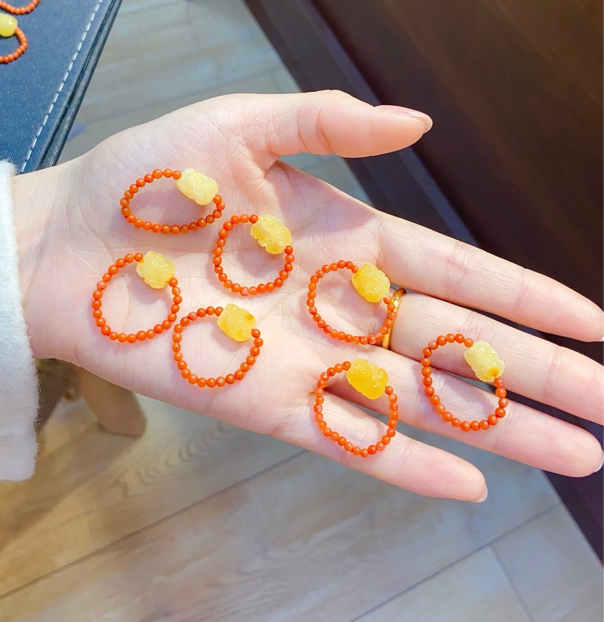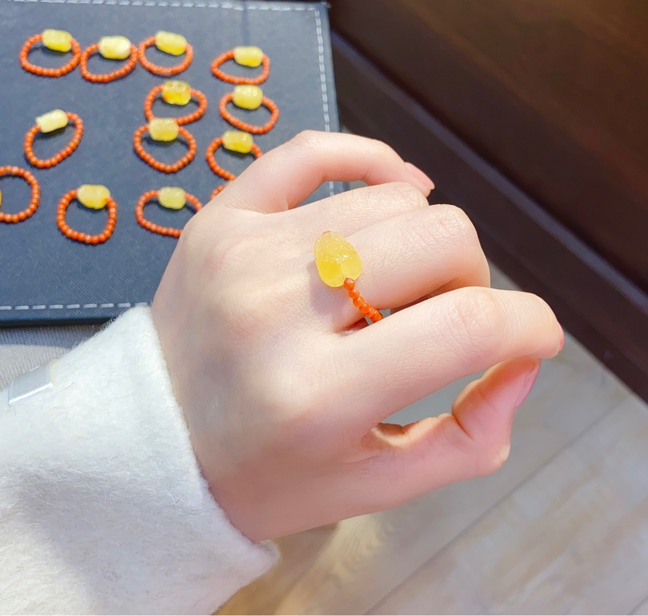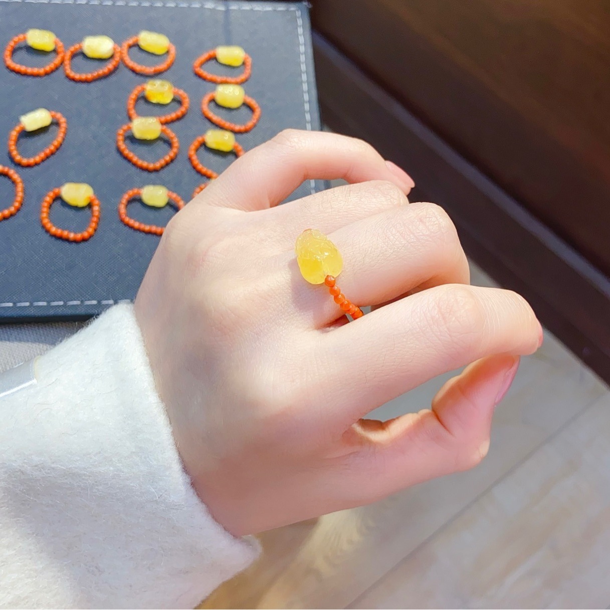 Кольцо Pixiu из натурального пчелиного воска Полное Медовое куриное масло, желтое с хурмой, красное Южное красное агатовое кольцо, дизайн ручной работы