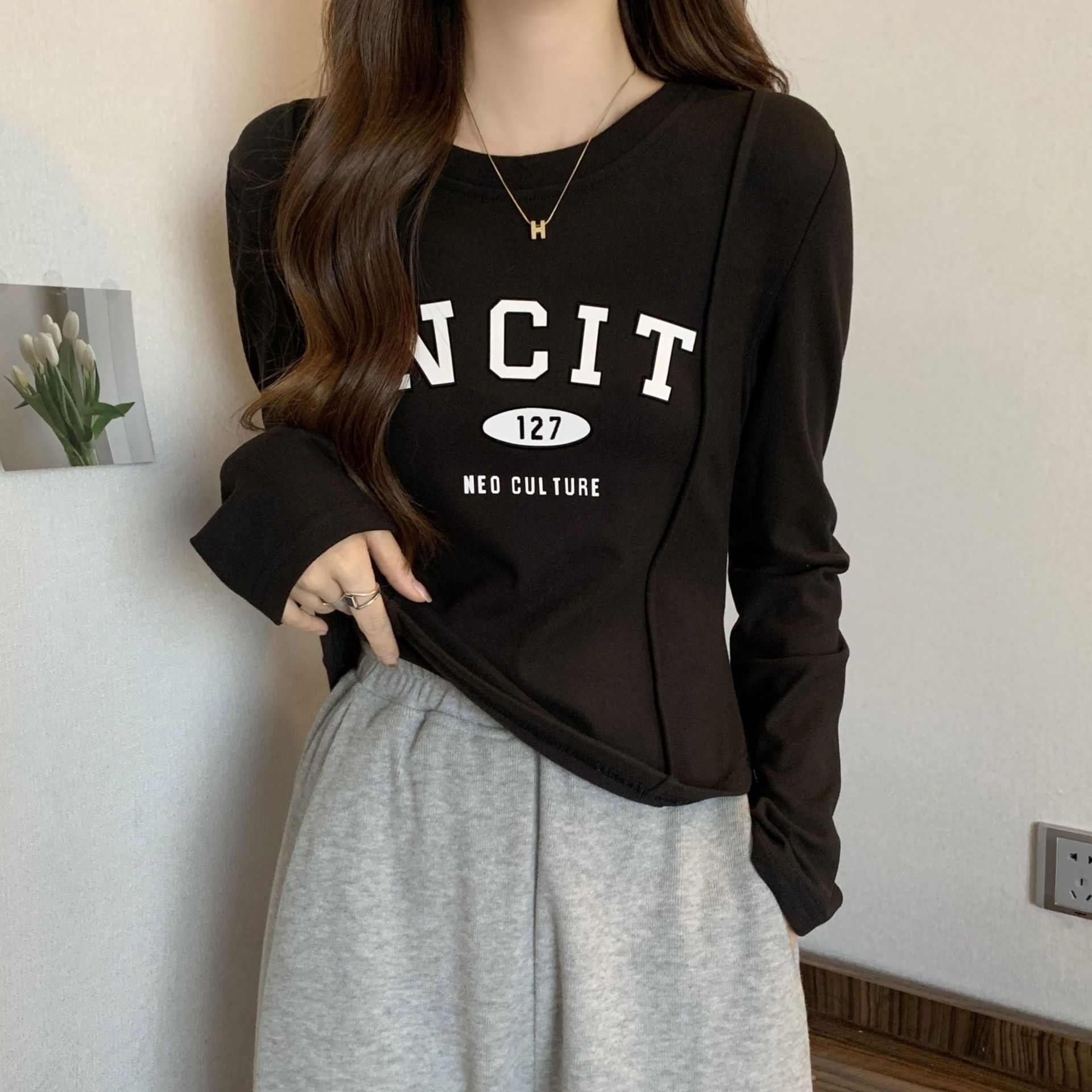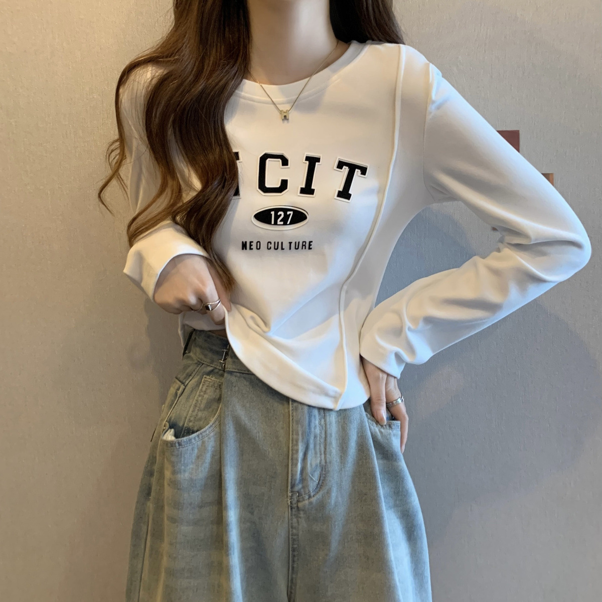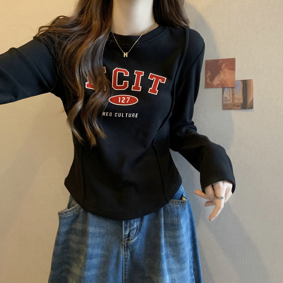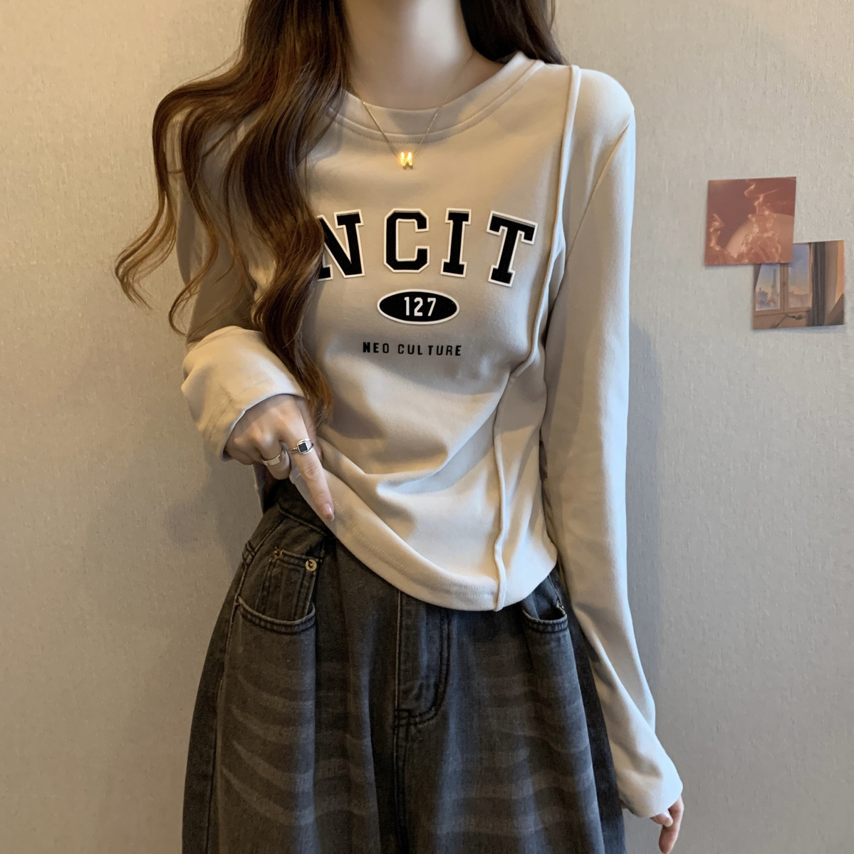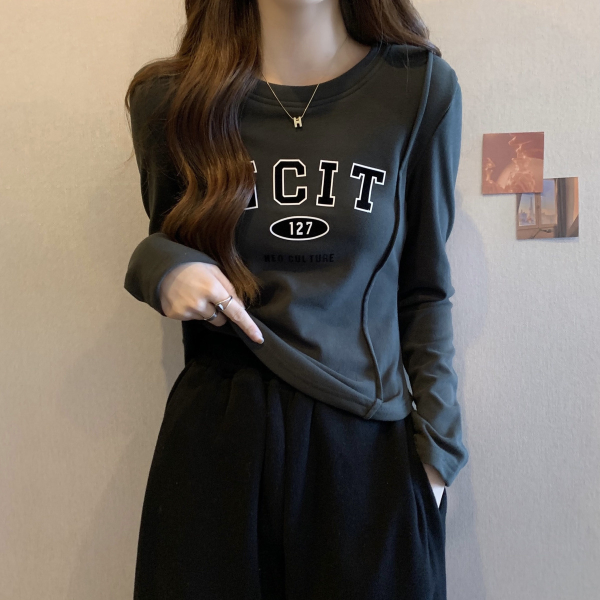 DeRong женская рубашка большого размера на осень и зиму, новый дизайн, ниша, универсальный утягивающий вид, топ с длинными рукавами на флисовой подкладке