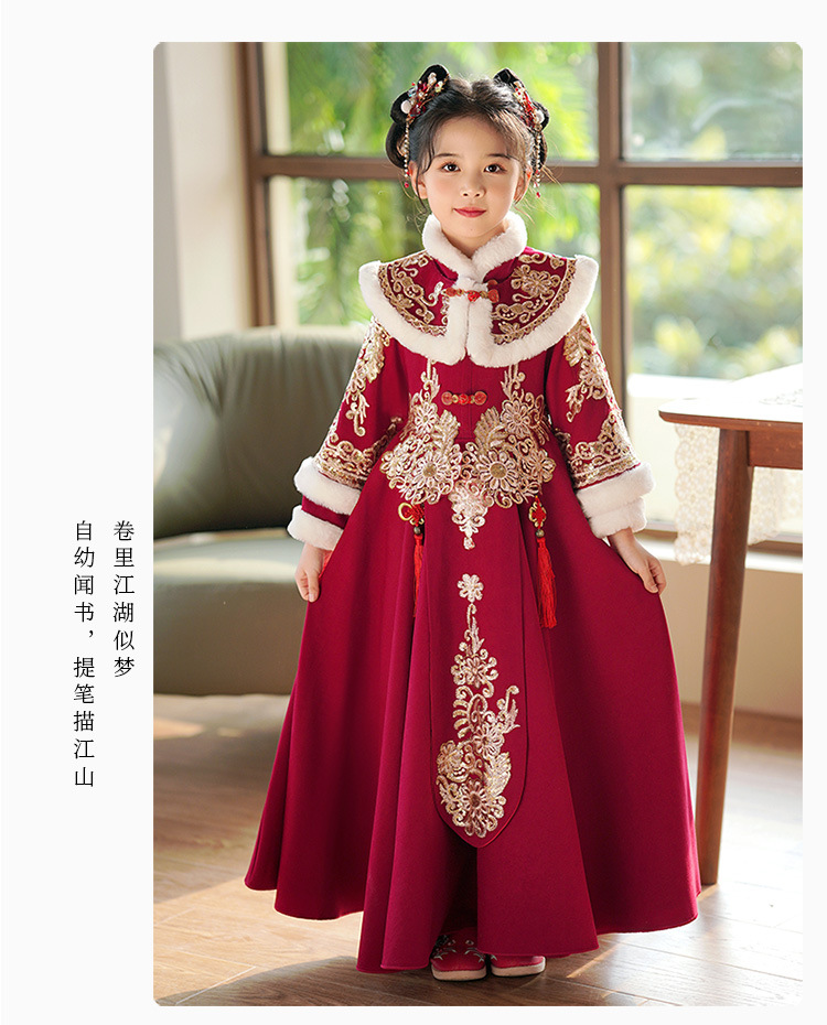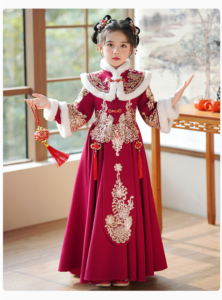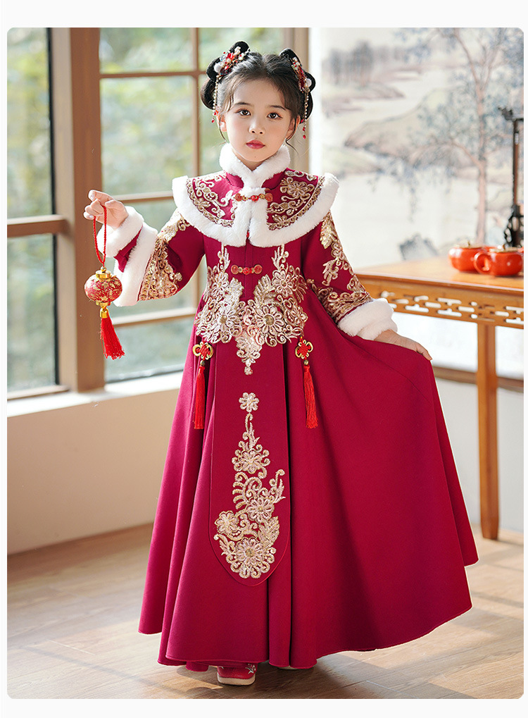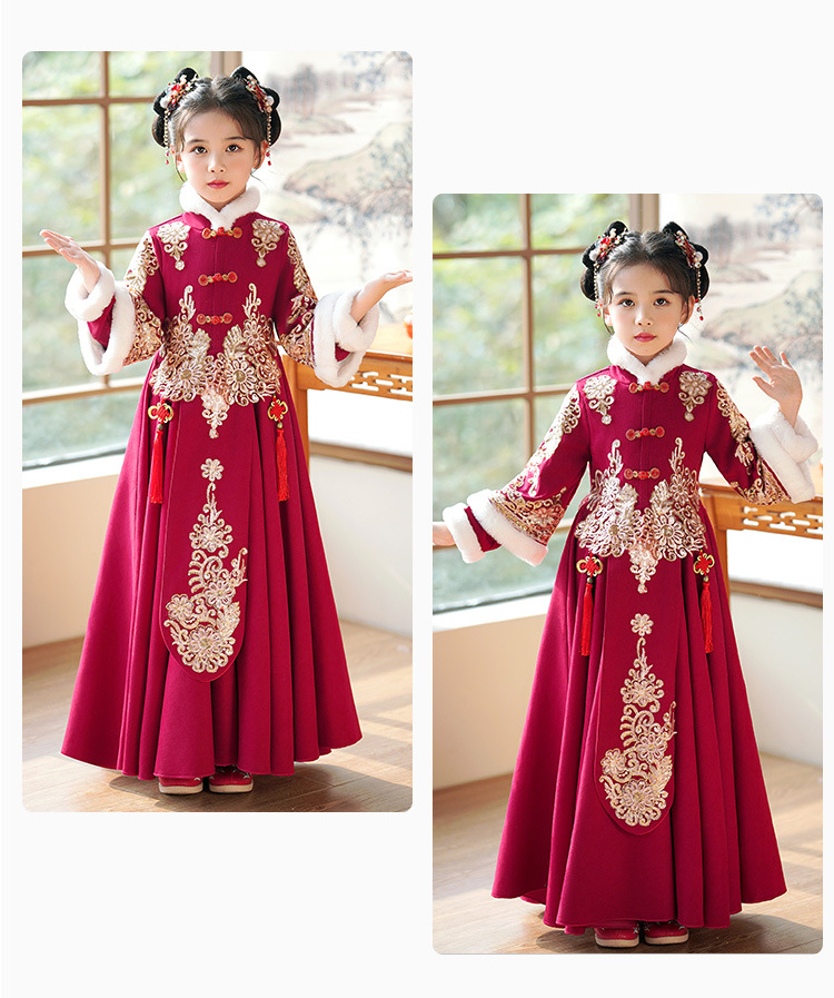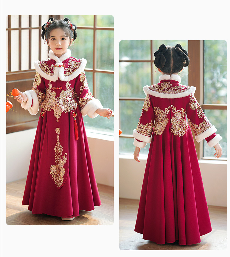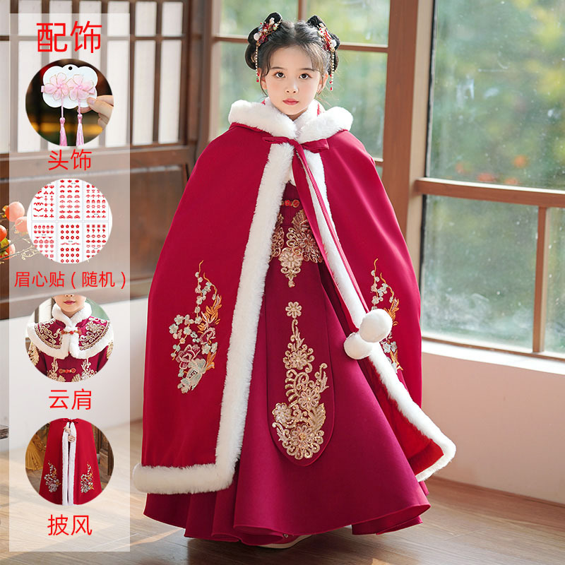 Детский древний костюм в китайском стиле ханьфу для девочек, зимний костюм Тан на флисовой подкладке, платье в старинном стиле, новогодняя услуга для маленьких девочек
