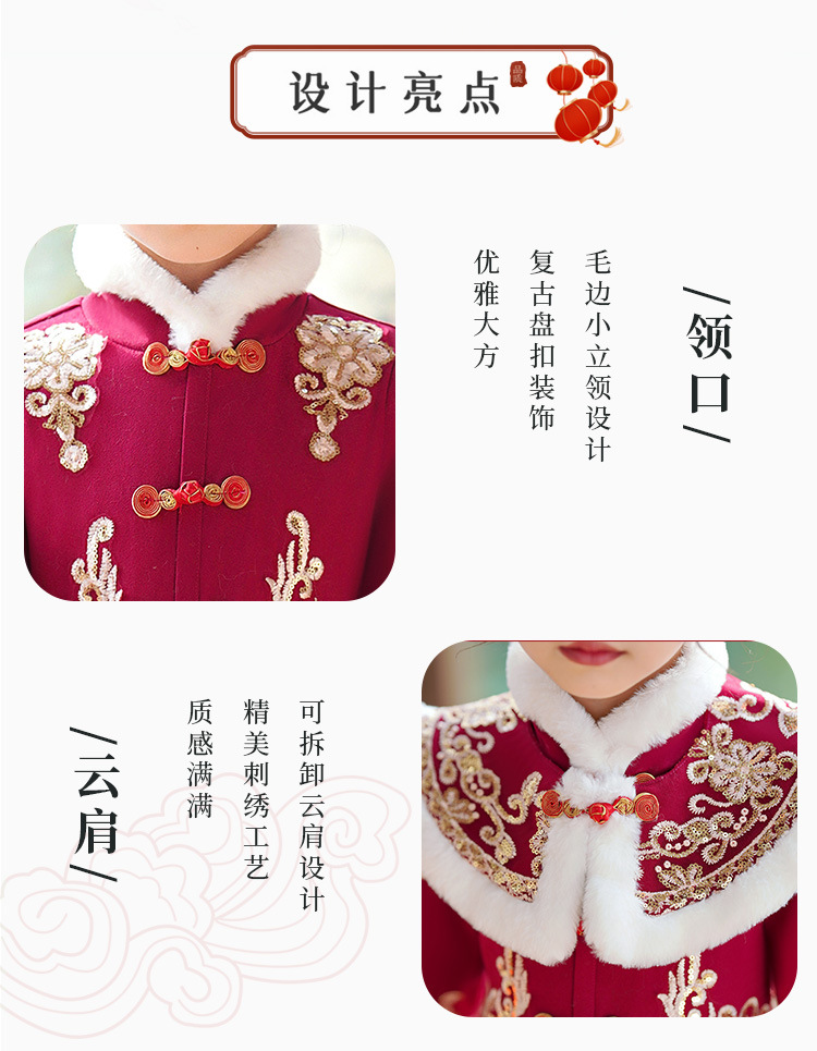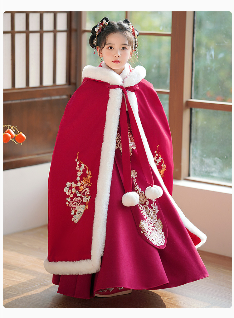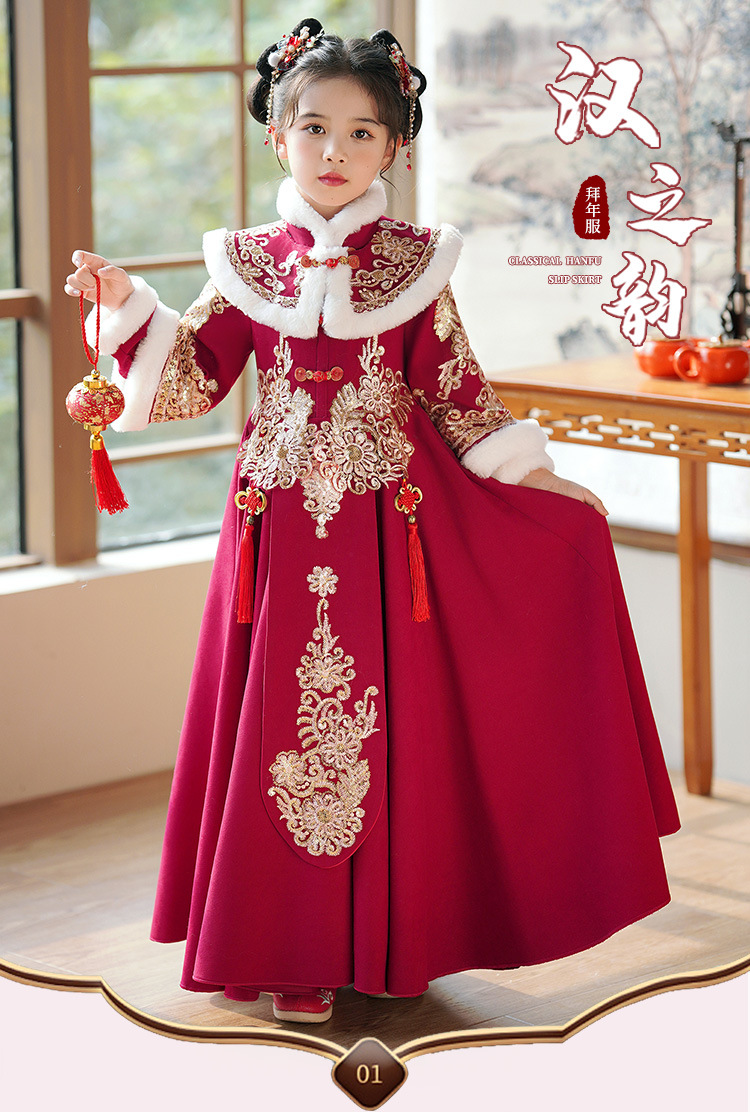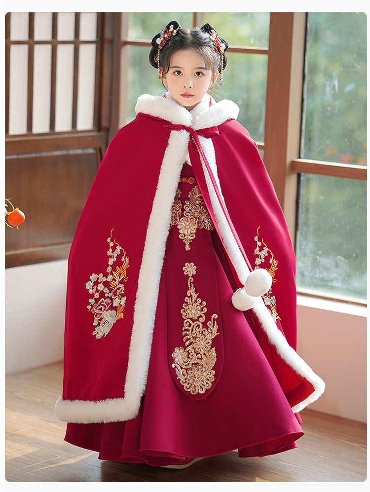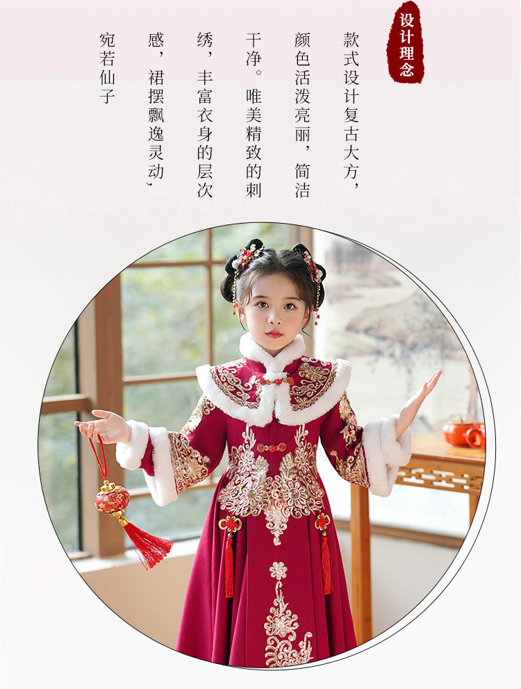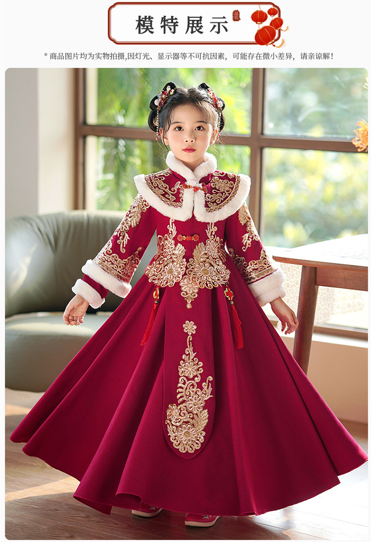 Детский древний костюм в китайском стиле ханьфу для девочек, зимний костюм Тан на флисовой подкладке, платье в старинном стиле, новогодняя услуга для маленьких девочек