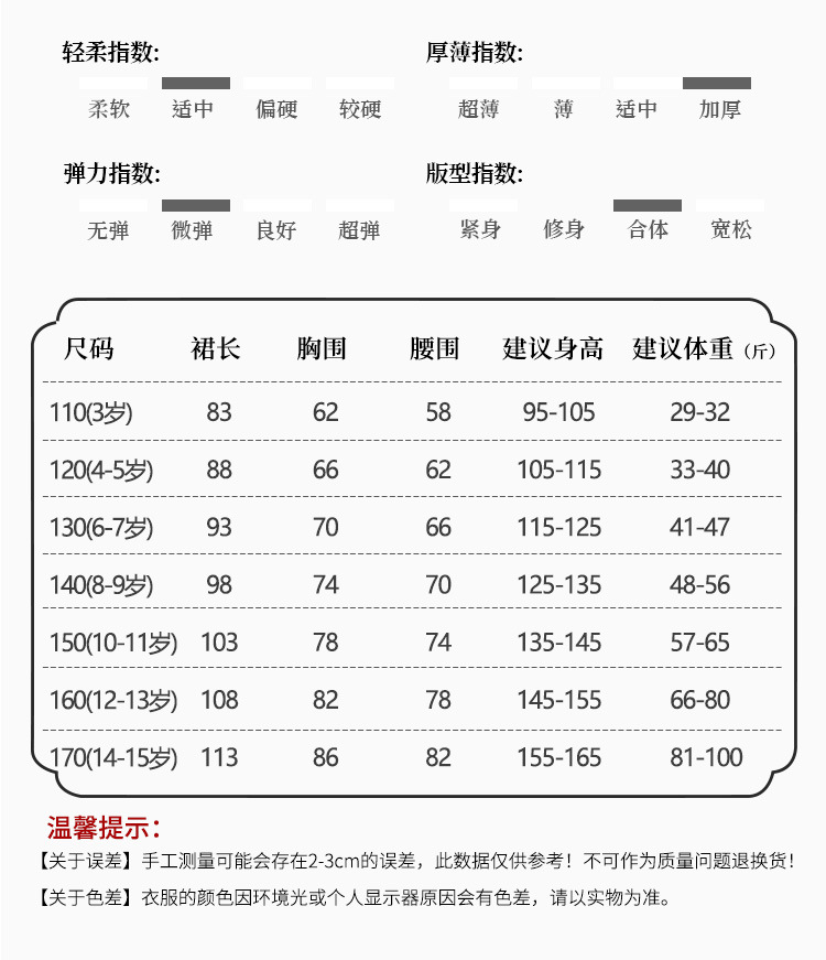 110cm; 120cm; 130cm; 140cm; 150cm; 160cm; 170cm