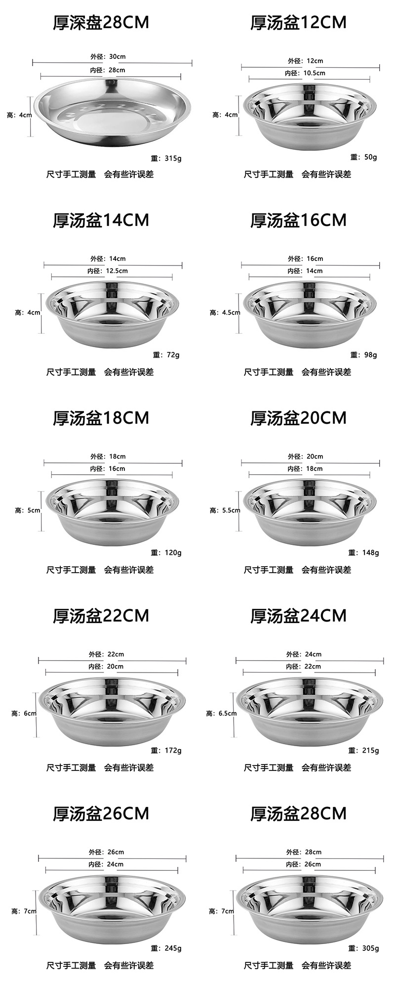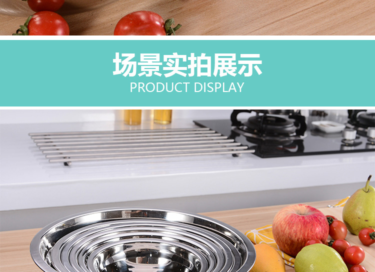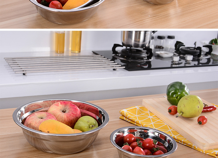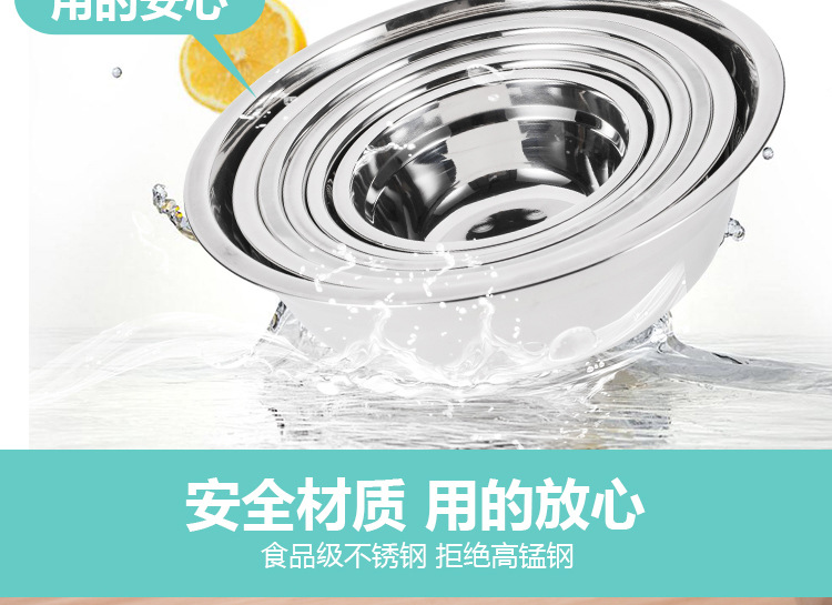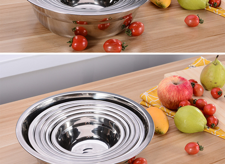 Бассейн для супа из нержавеющей стали Столовая Чаша для супа из нержавеющей стали Бак для приправ Утолщенный утолщенный бассейн для взбивания яиц и лапши Бытовая круглая раковина для овощей