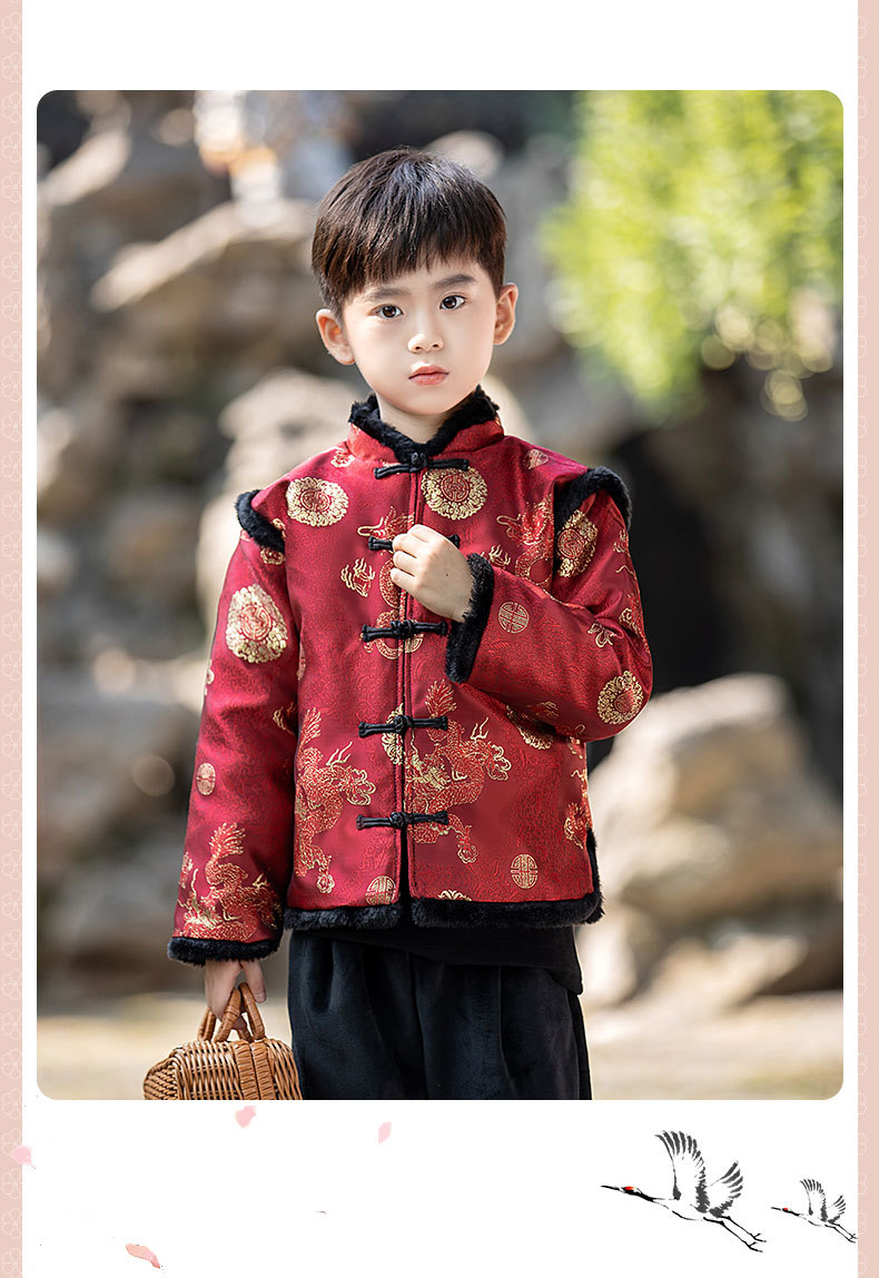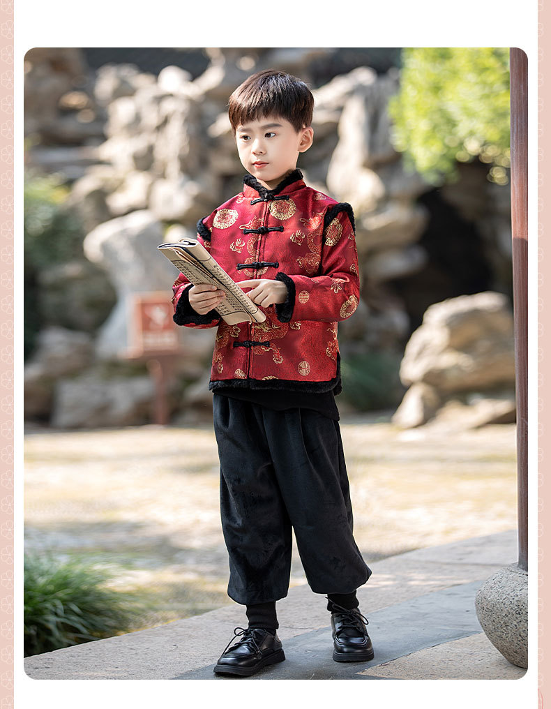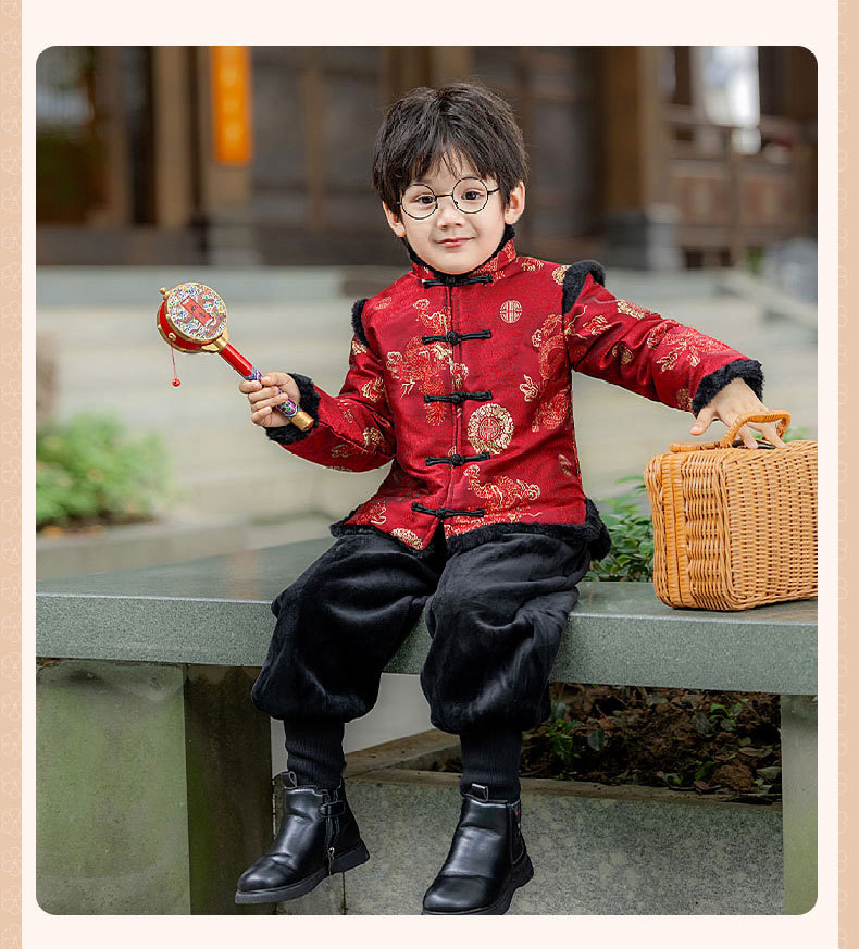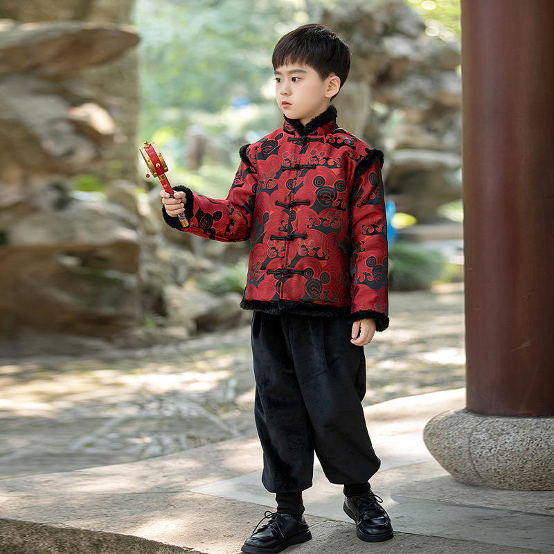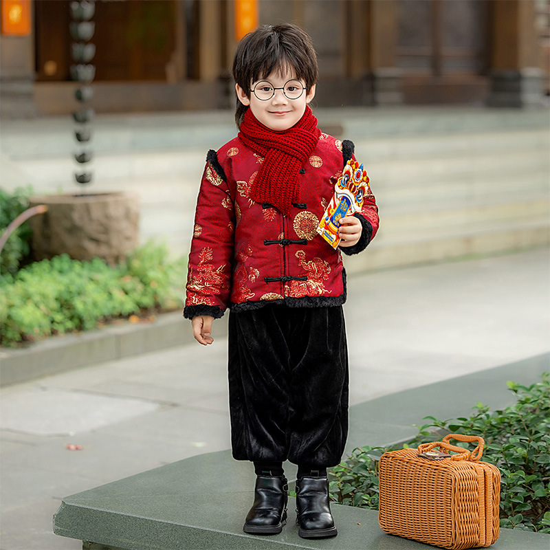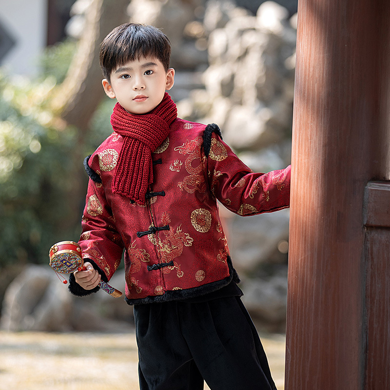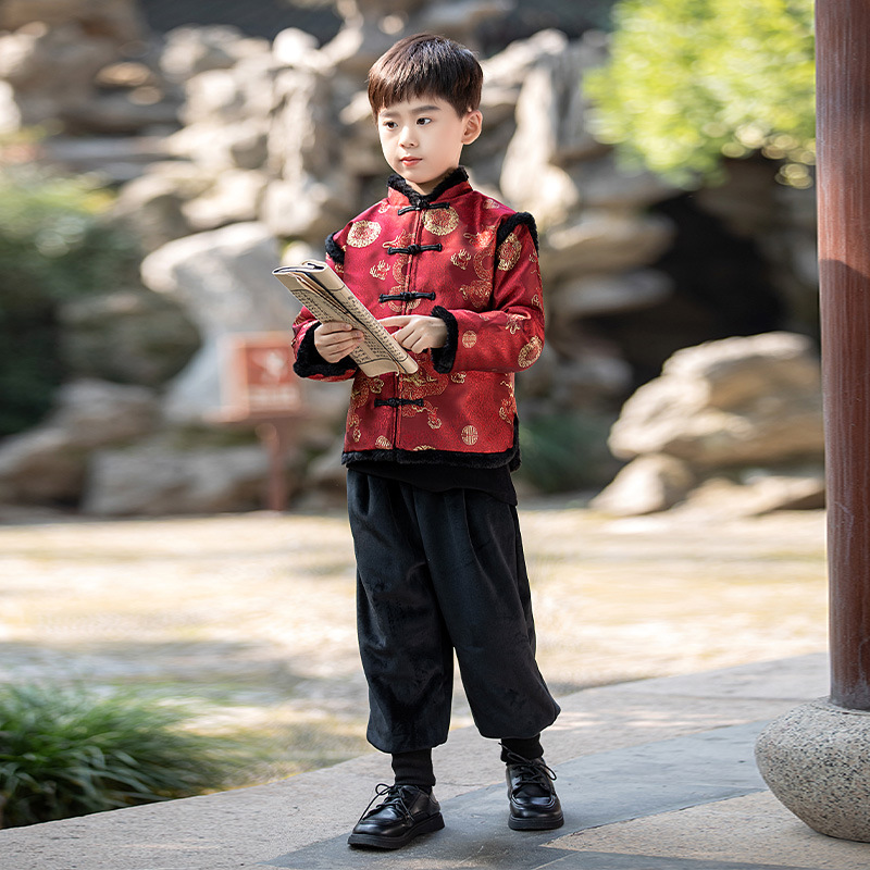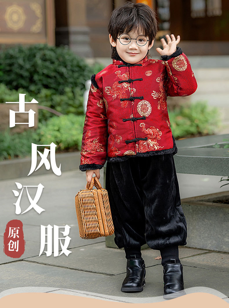 Детская зимняя утепленная Новогодняя одежда в китайском стиле Костюм Тан для мальчиков Детская одежда для новогодних выступлений в этническом стиле Костюм Тан
