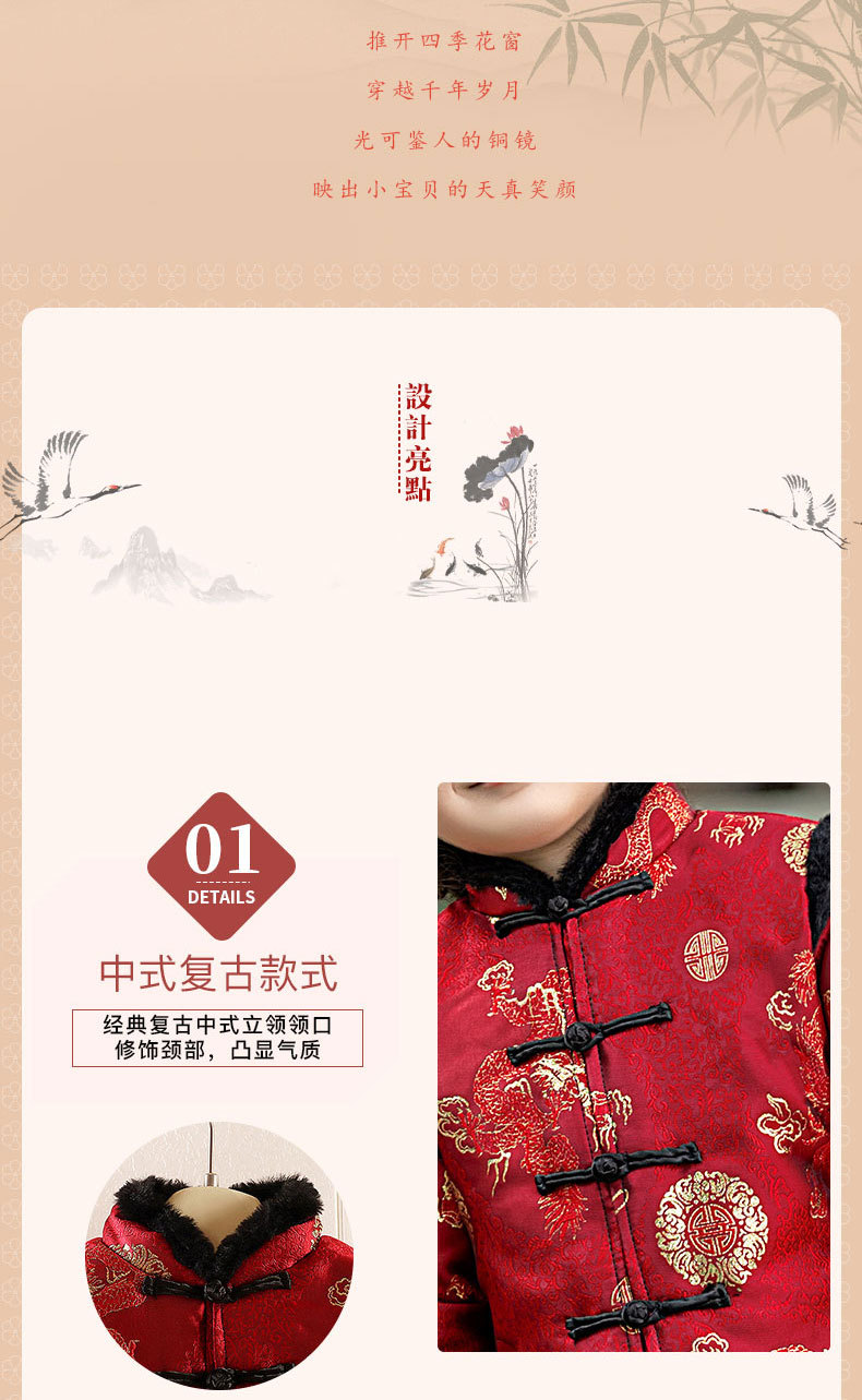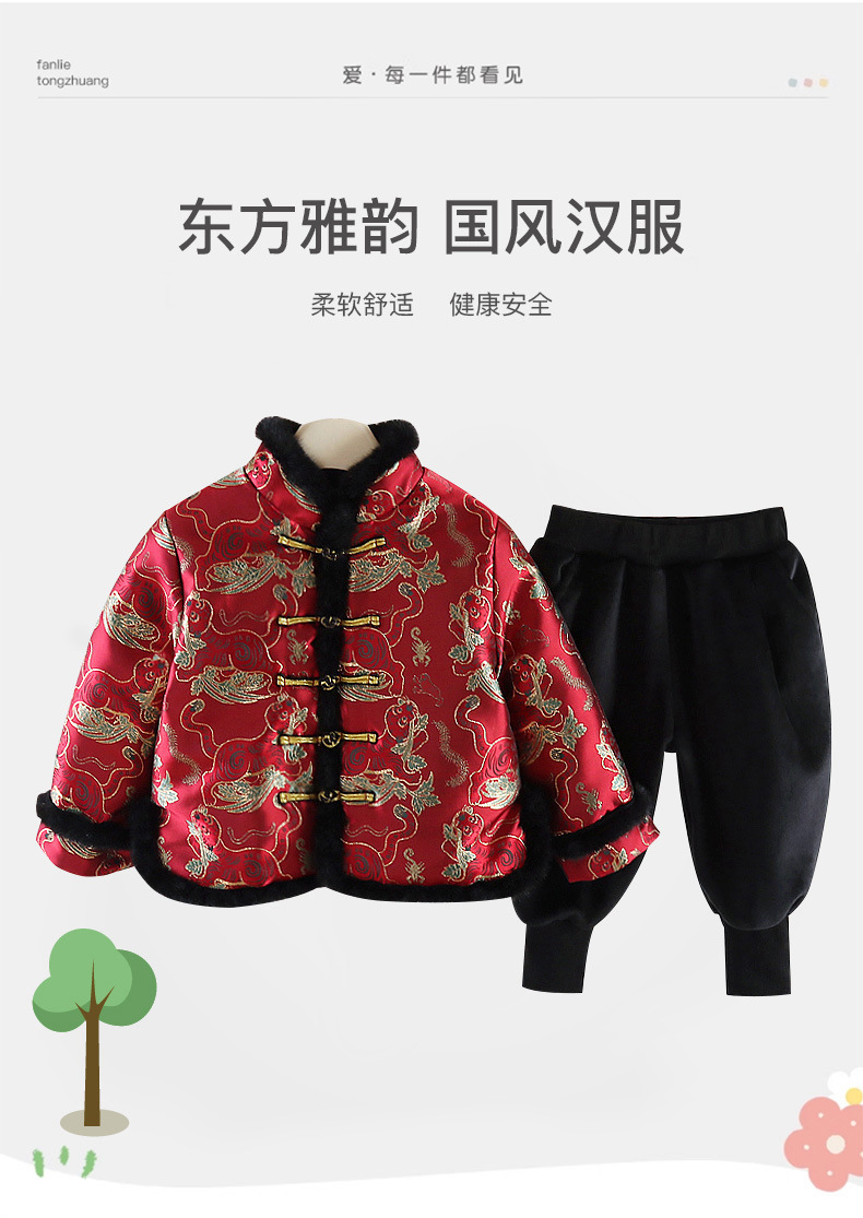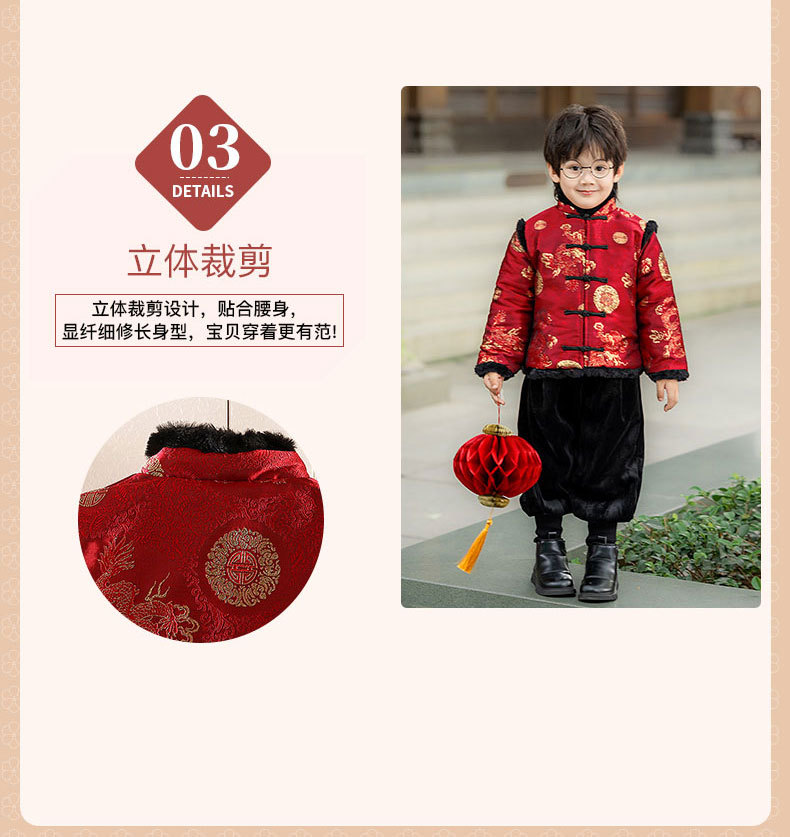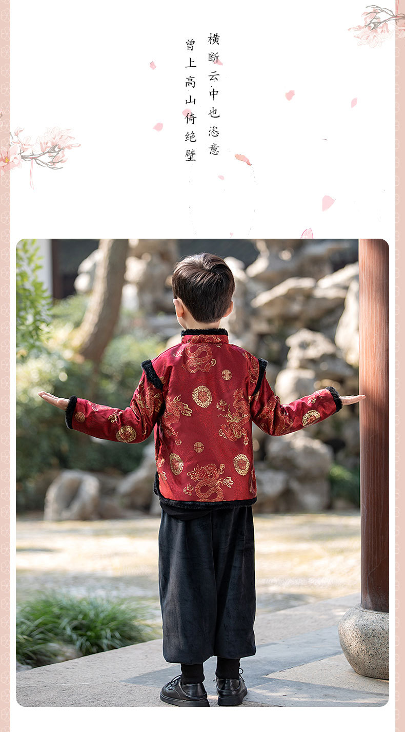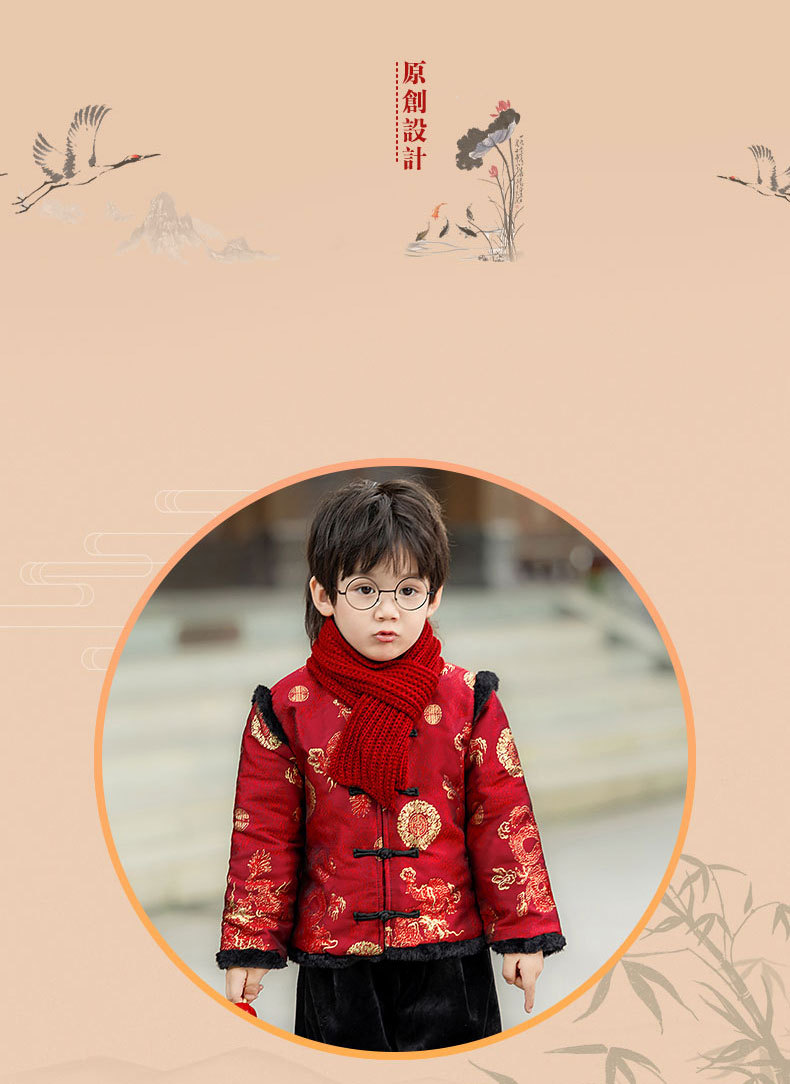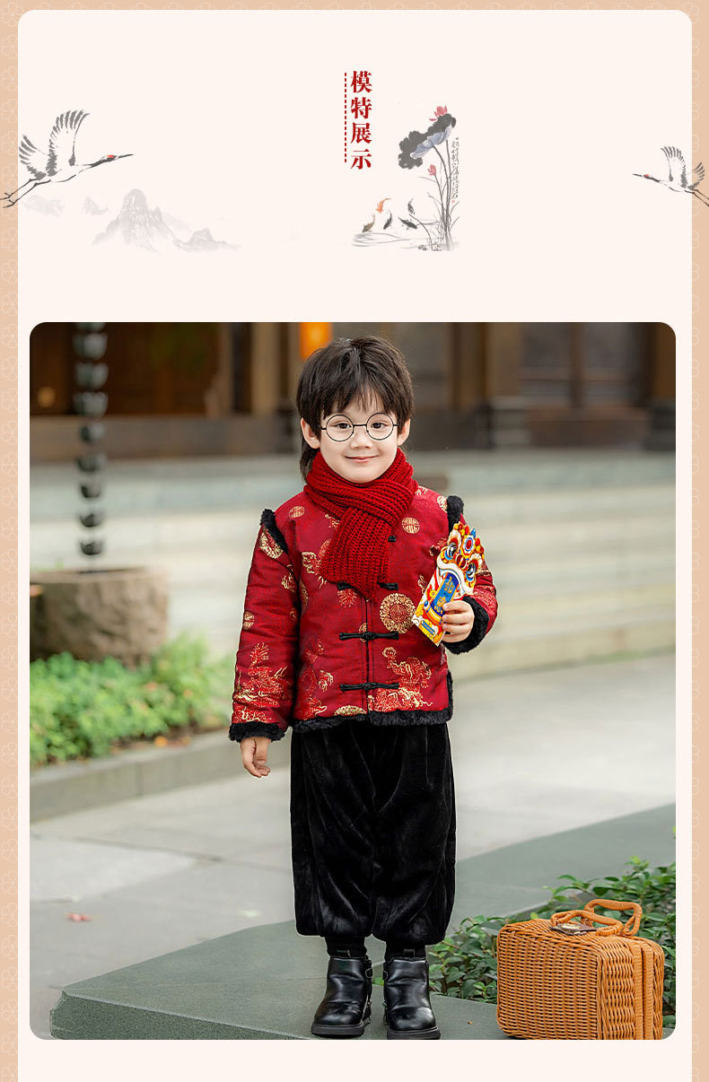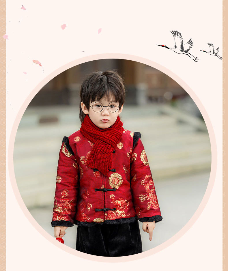 Детская зимняя утепленная Новогодняя одежда в китайском стиле Костюм Тан для мальчиков Детская одежда для новогодних выступлений в этническом стиле Костюм Тан