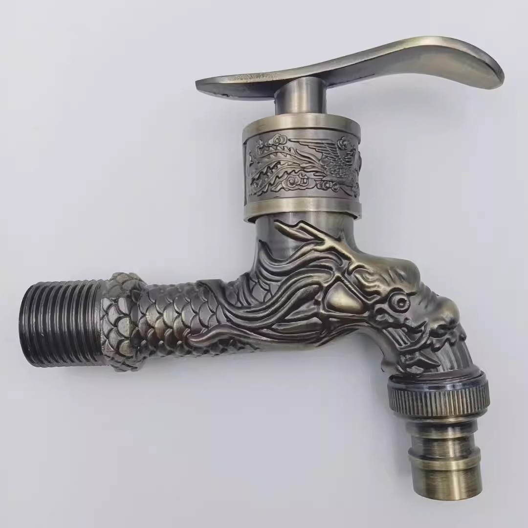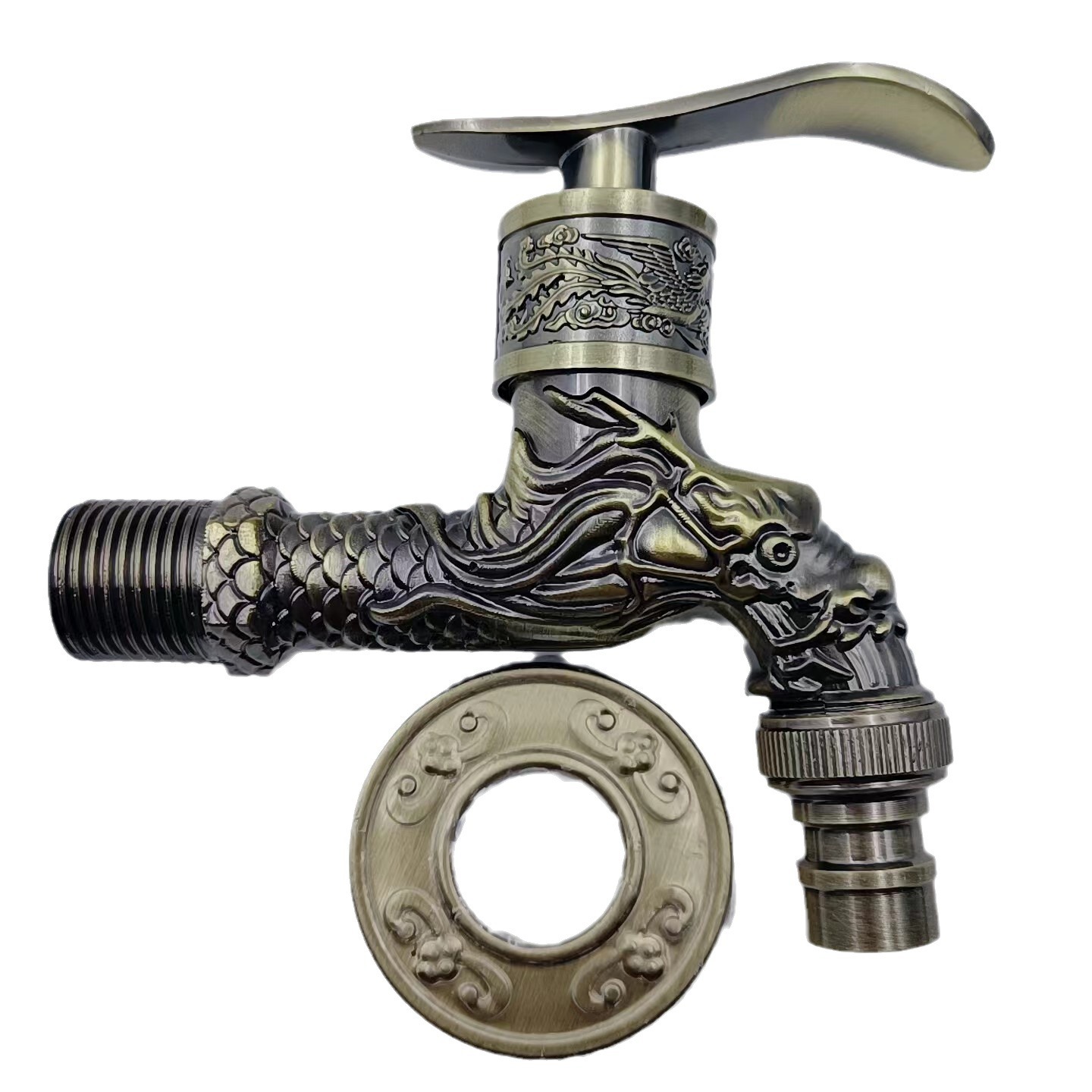 Античный утолщенный смеситель для стиральной машины в европейском стиле в форме дракона, простой ретро-простой четырехточечный универсальный солнцезащитный смеситель для стиральной машины