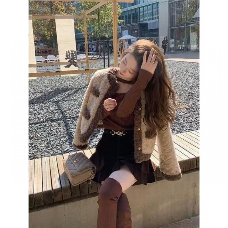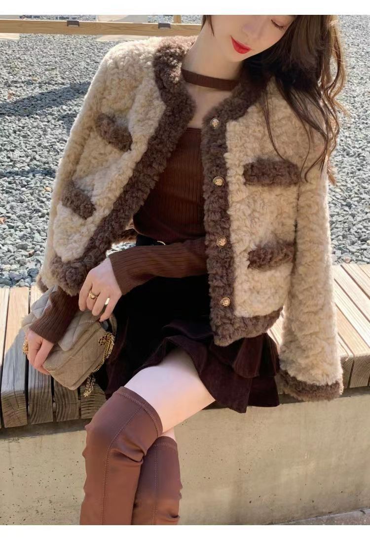 Короткое пальто из искусственной овечьей шерсти в стиле Chanel, женский весенний свободный элегантный топ с изображением интернет-знаменитостей 2023 года в Корейском стиле
