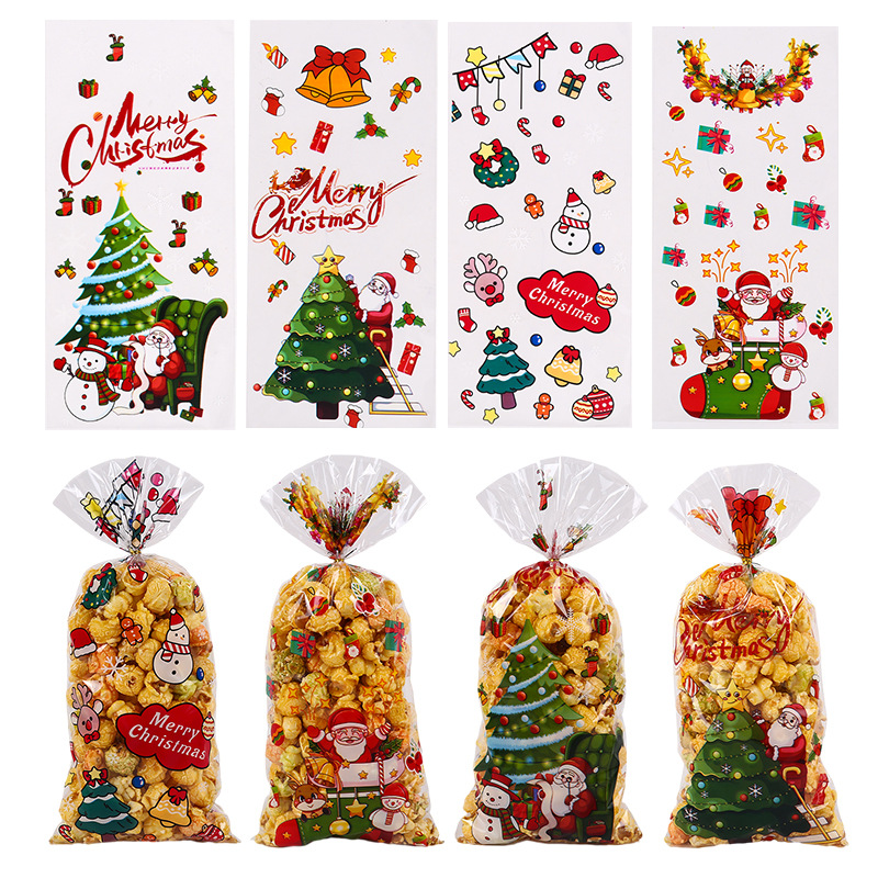 Пятно новые рождественские конфеты упаковочные пакеты печенье выпечка подарочные пакеты Санта-Клаус снежинка opp плоские карманы