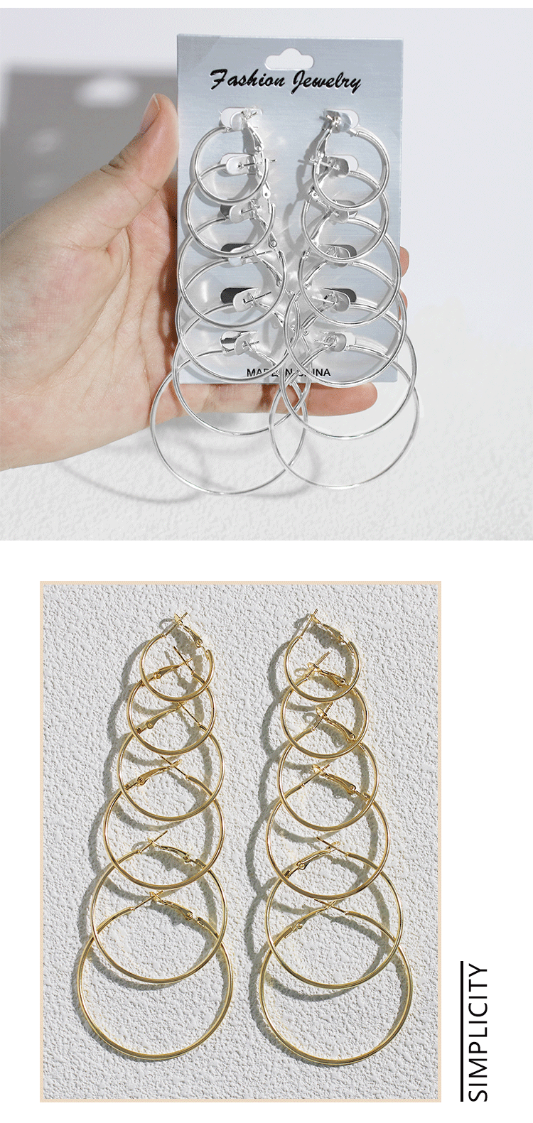 Европейские и американские серьги Джокера, женские тонкие популярные в Интернете, 1 набор из 6 глянцевых колец C, разные размеры, сочетание колец для ушей, простая Мода