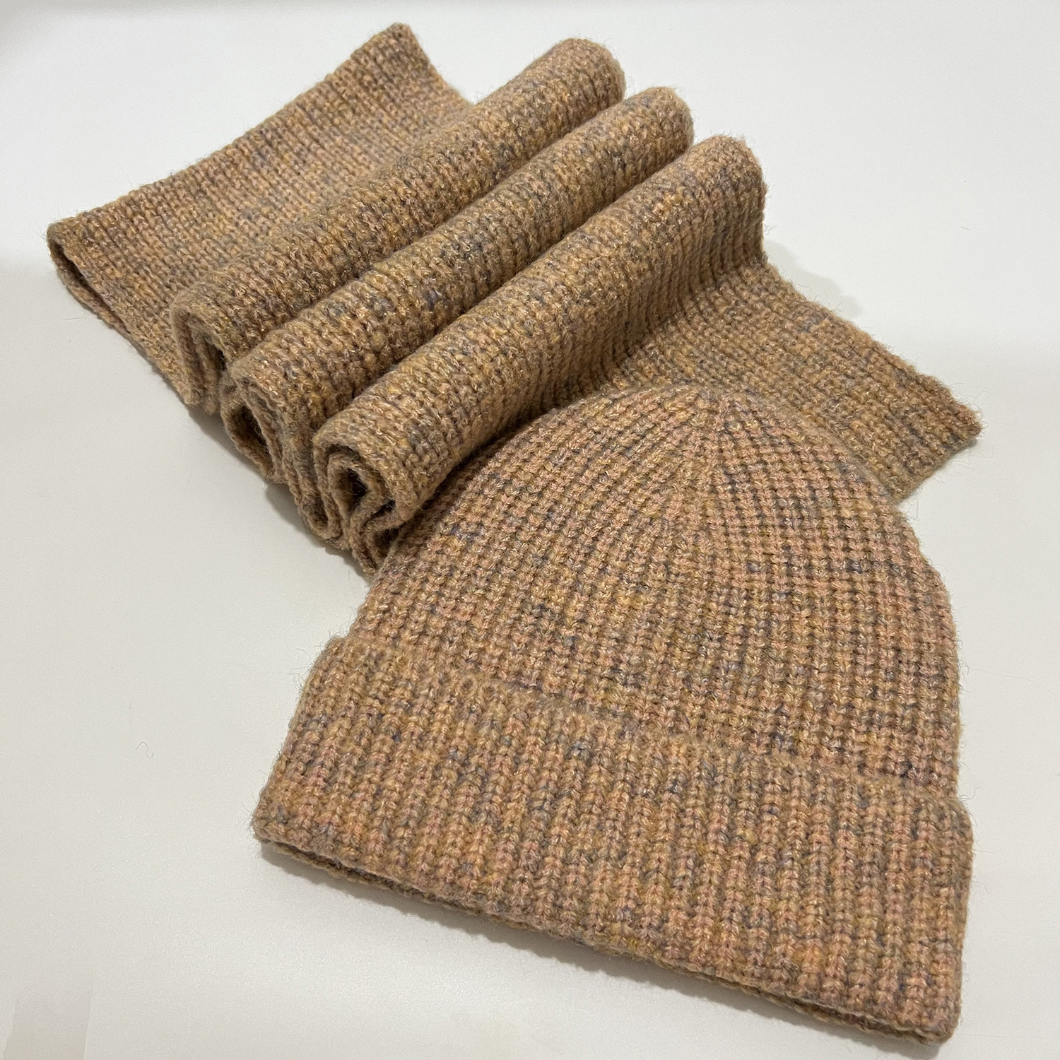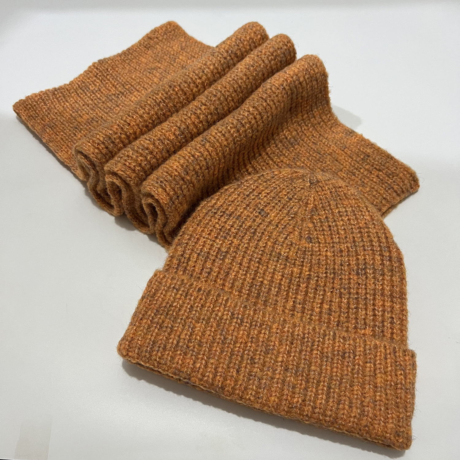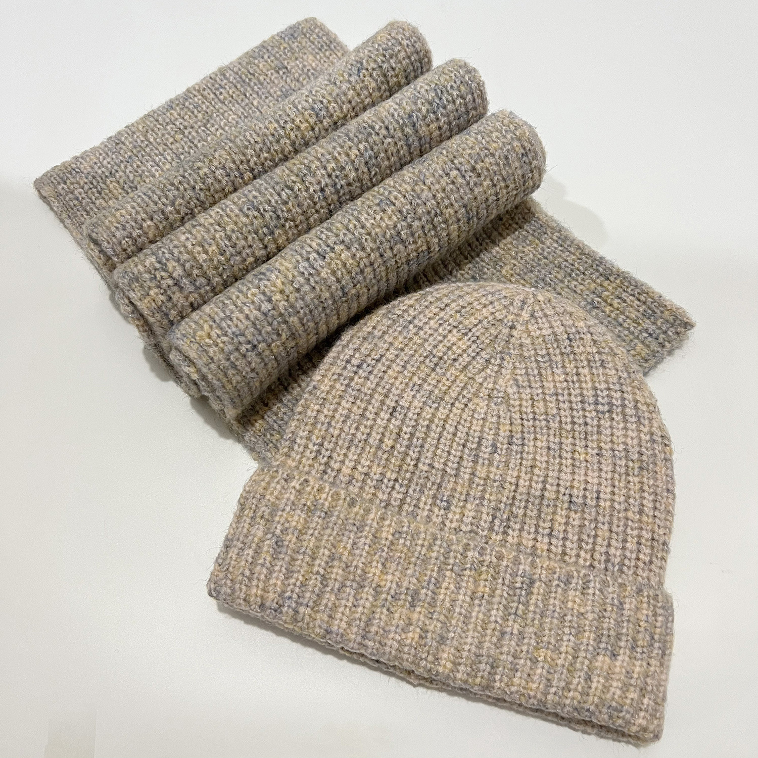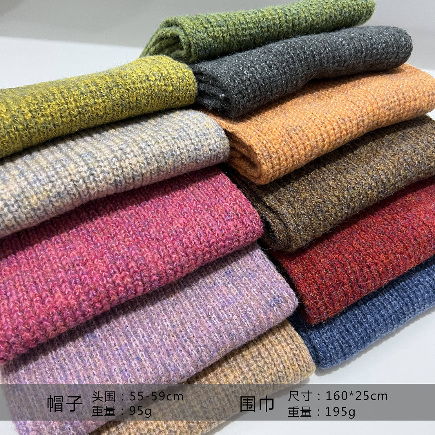 Новый стиль шерстяной смеси сплошной цвет трикотажный шарф из двух частей женский зимний теплая толстая езда ветрозащитная шерстяная шапка