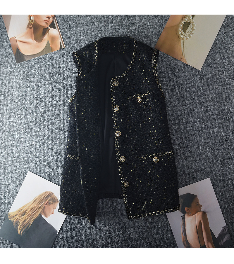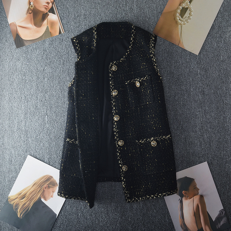 Женская пухлая девушка больших размеров, новый маленький ароматный жилет в стиле, толстая сестра, длинный Модный золотой жилет, жилет 200 кг