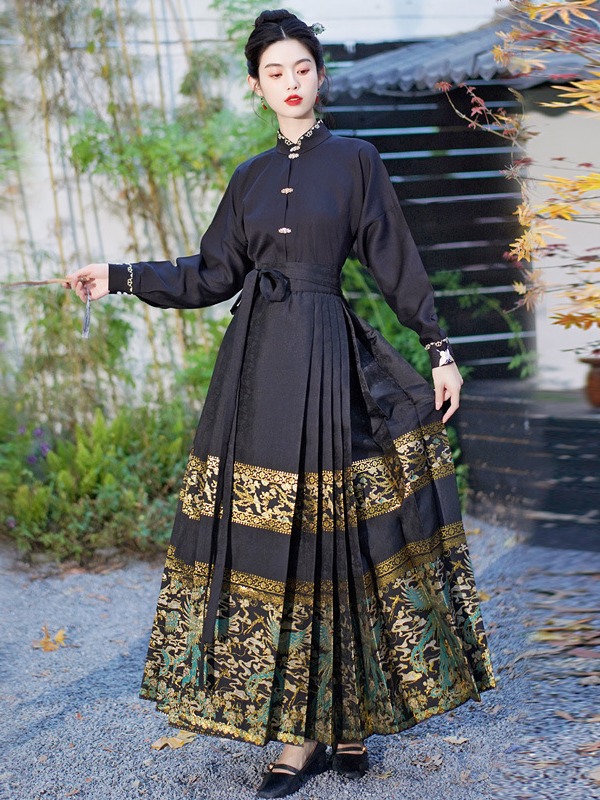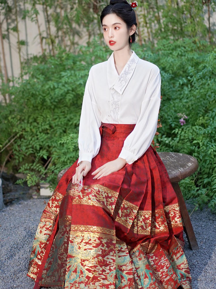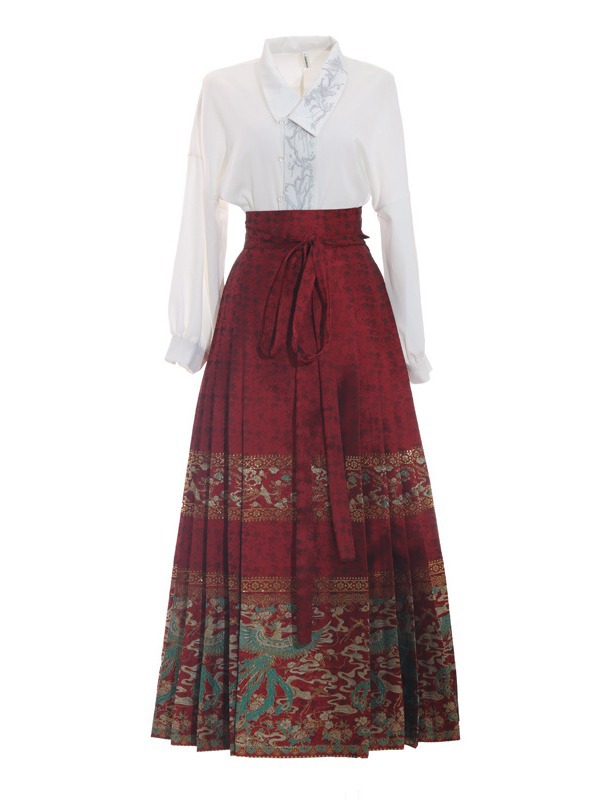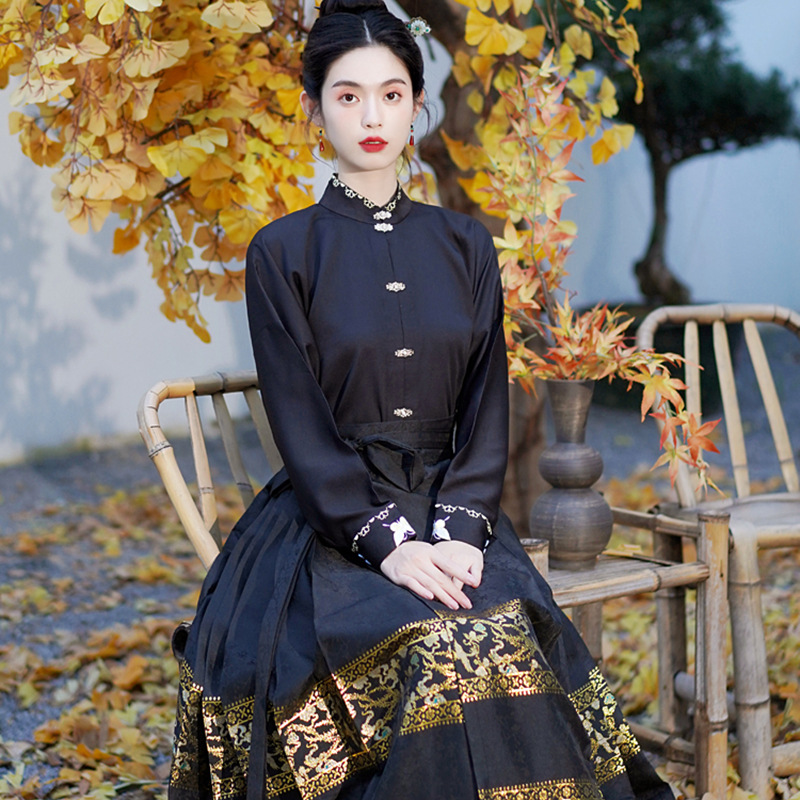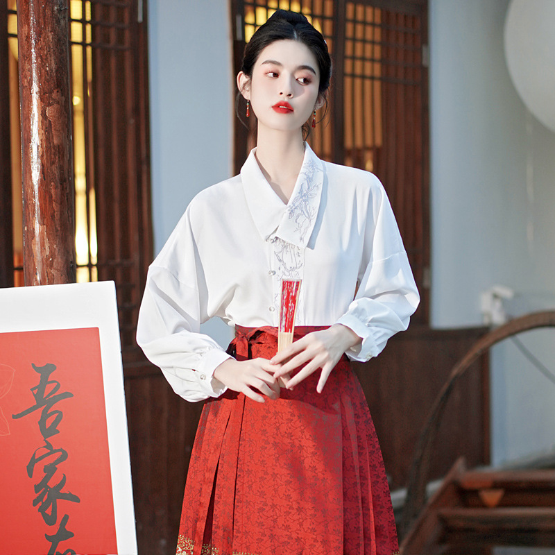 Осень 2023 Новый китайский стиль ретро элегантная вышитая рубашка с длинными рукавами Топ высокого класса в национальном стиле с золотым плетением юбка с конским лицом костюм