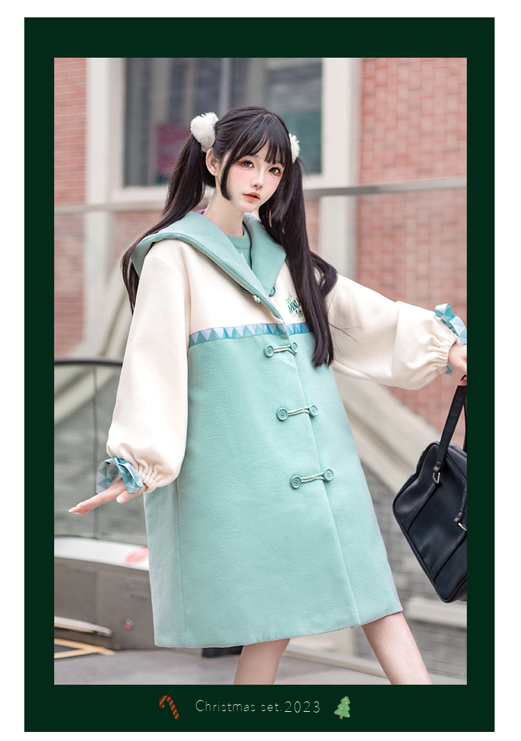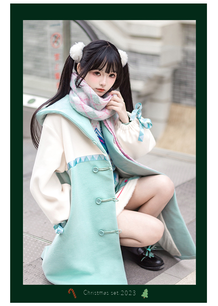 свитер; шерстяное пальто; шарф; юбка; Рождественская сумка