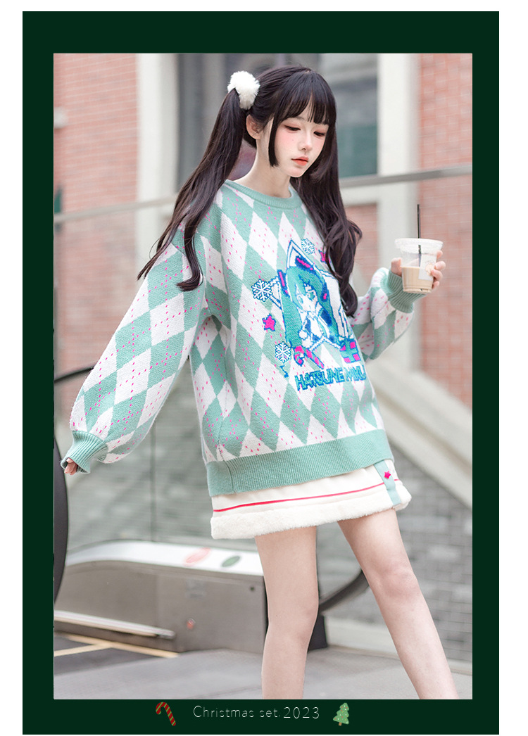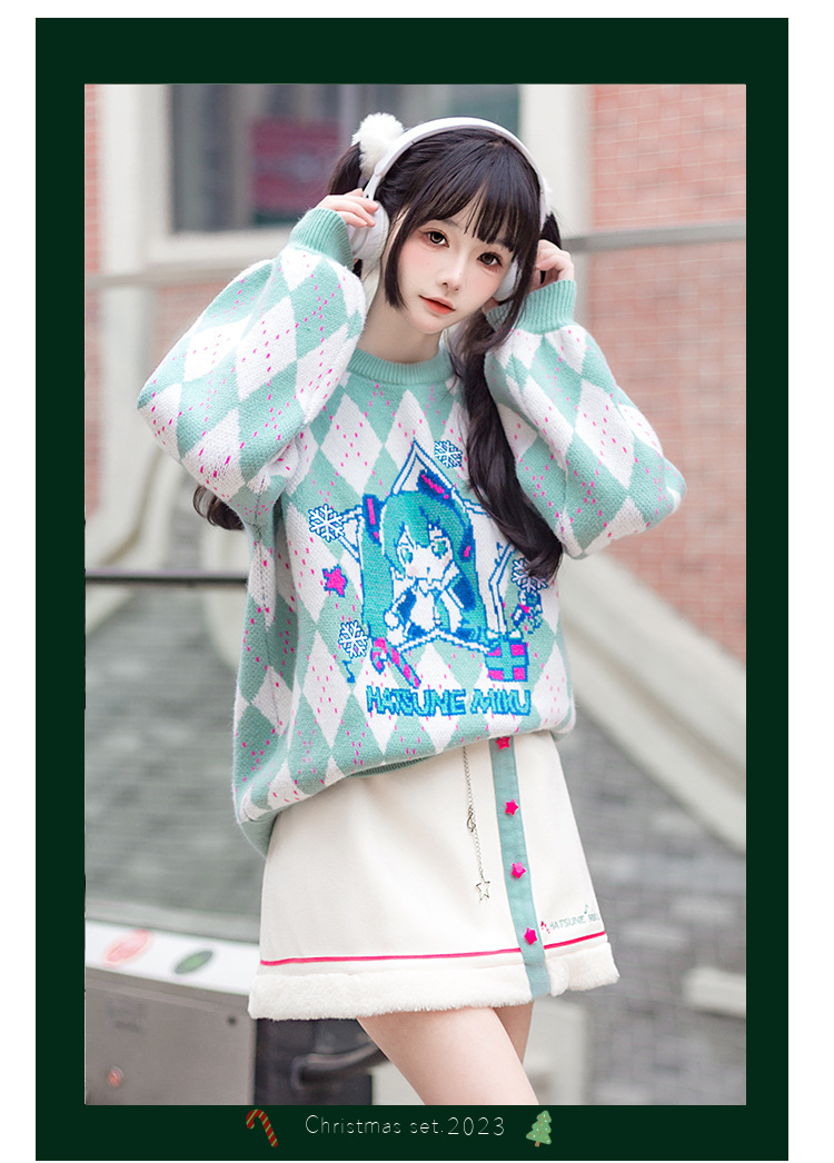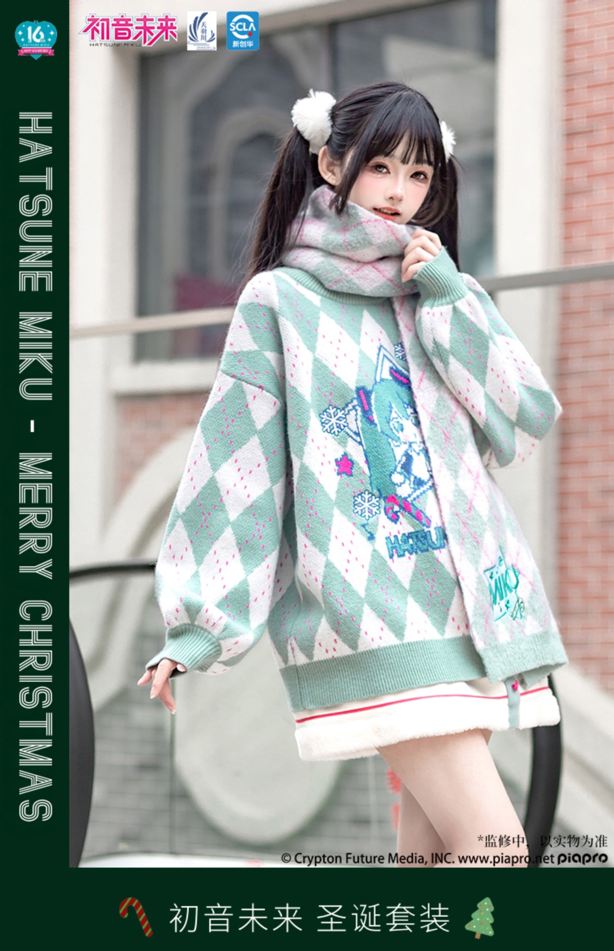 Новогодний свитер шерстяной пальто юбка шарф женский осенне-зимний костюм натуральная