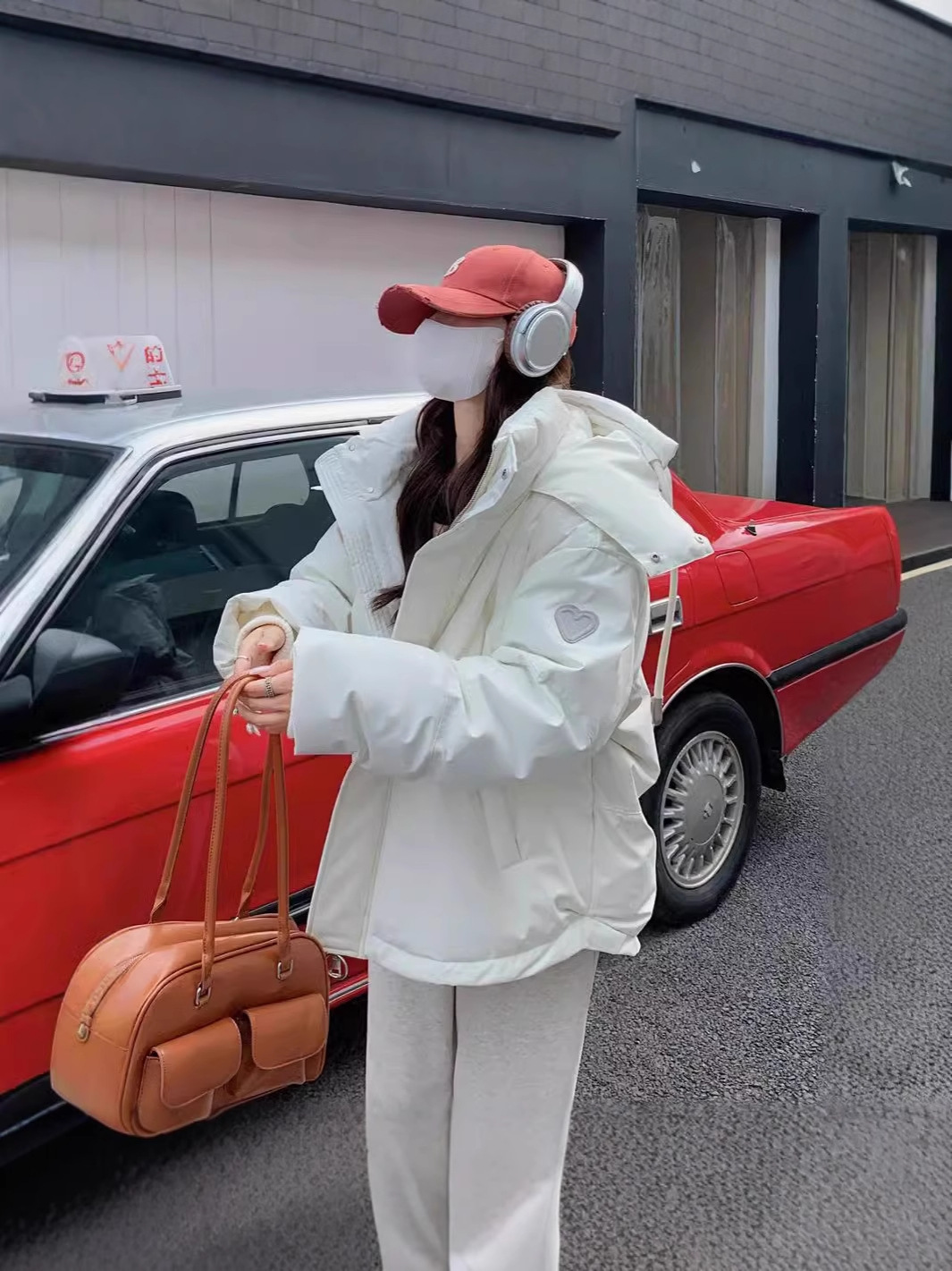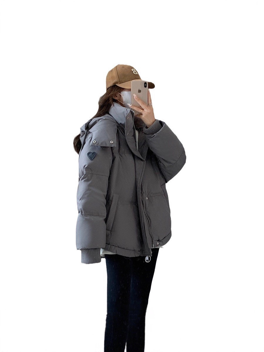 Новая зимняя хлопковая верхняя одежда в стиле k с серым сердцем и коротким пухом, студенческая хлопковая верхняя одежда больших размеров, женская верхняя одежда для пар, хлебная верхняя одежда