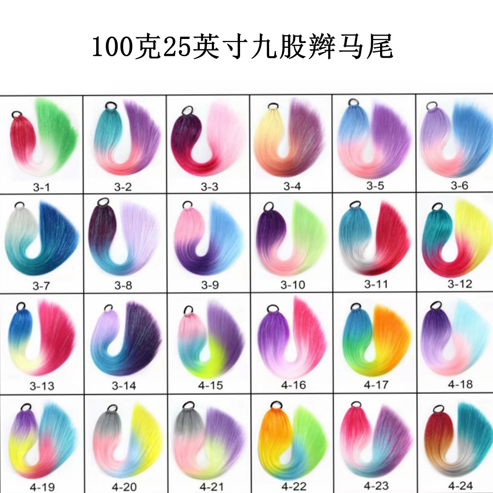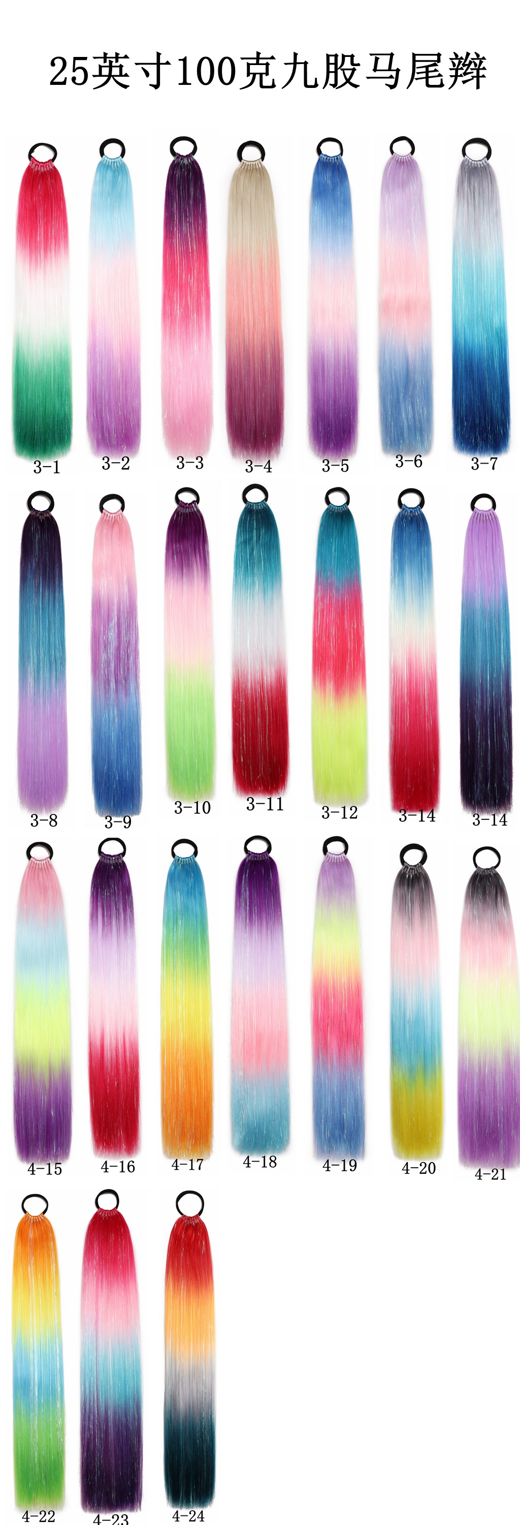 Цвет Радий 9 прядей Плетеные волосы EZ Грязная коса Золотой Длинный Конский хвост Волосы Расширение Красочный градиент Плетеный парик из волос