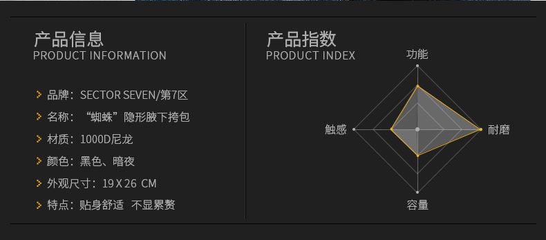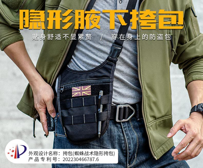 Zone 7 Spider Подмышка Невидимая сумка-мессенджер Сумка-мессенджер Специального агента Облегающий Противоугонный кошелек Армейский вентилятор Подмышка Скрытая темная сумка