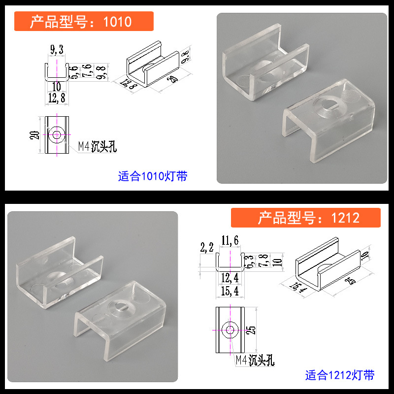 | 1212柔性灯带卡槽 | PC | 透明 | 适用于12*12mm柔性硅胶灯带 |