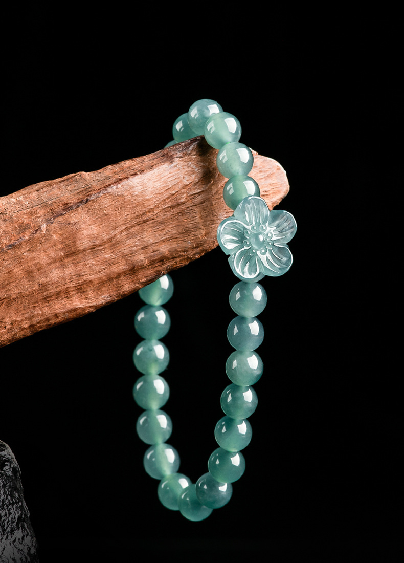 Натуральный товар Нефрит Голубая вода Персиковый цветок Ледяной нефритовый браслет Пара женщин Подарок