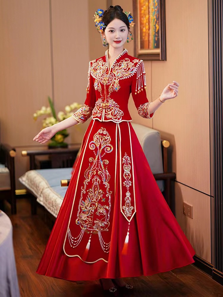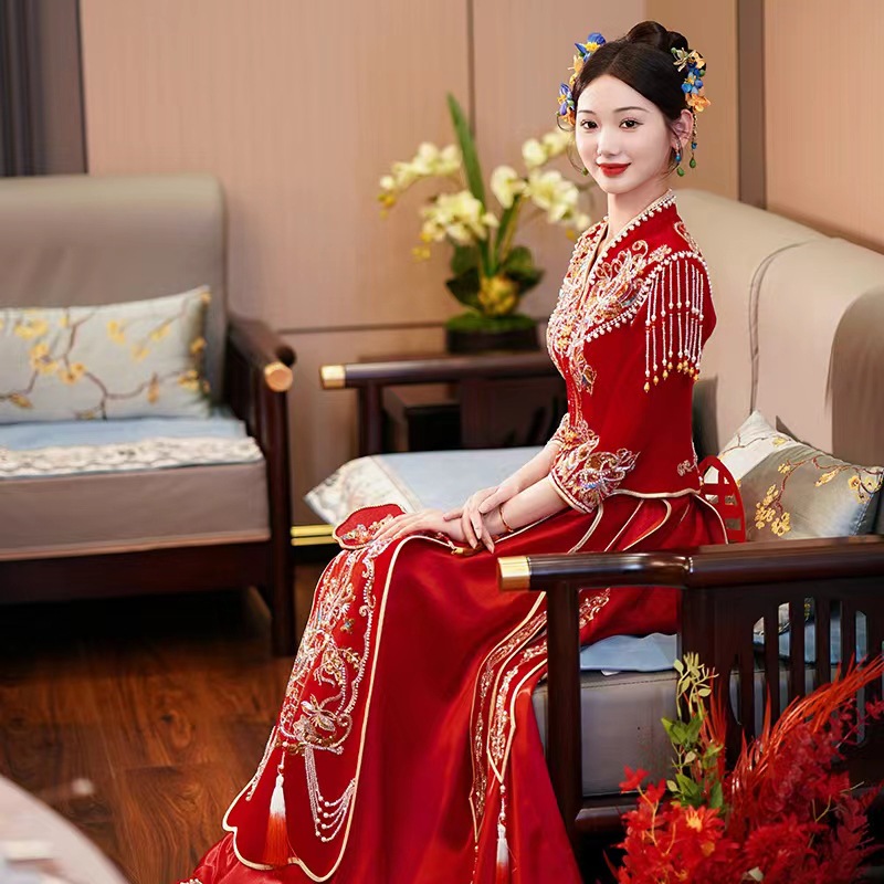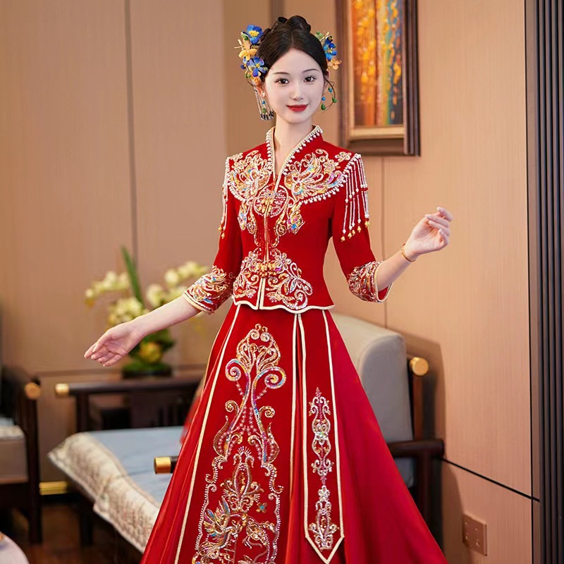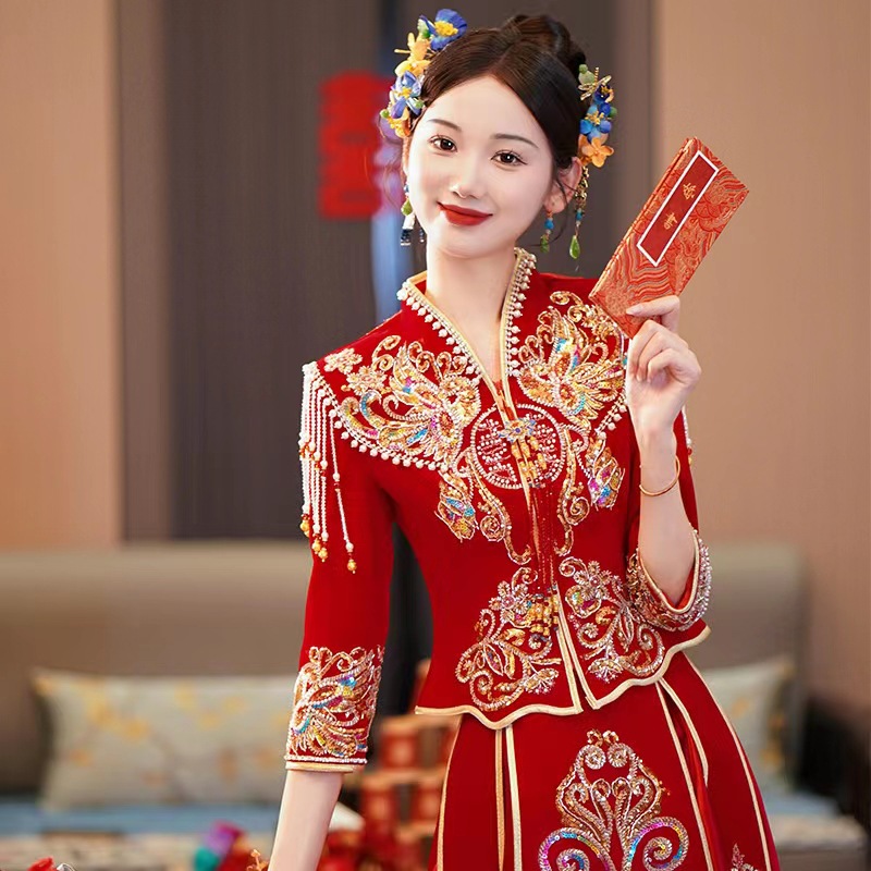 Низкий воротник Xiuhe платье невесты 2023 новый китайский свадебный Дракон и Феникс платье ретро суд Свадебное платье высокого класса тяжелая работа Бархат