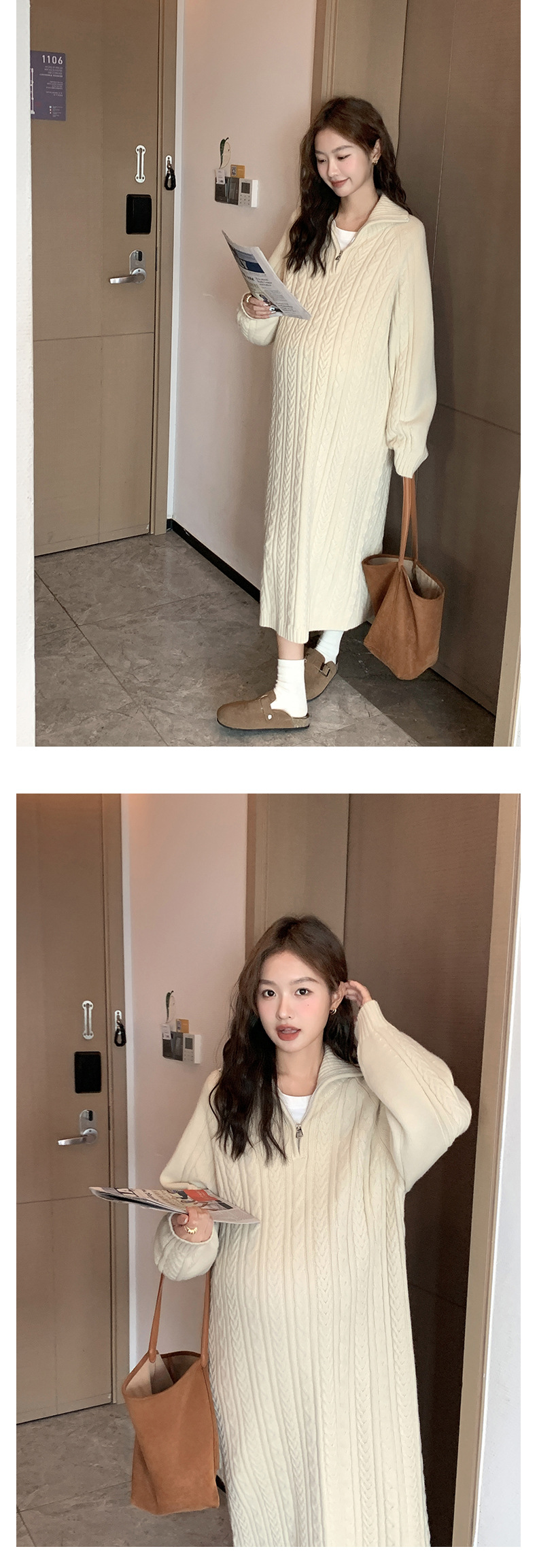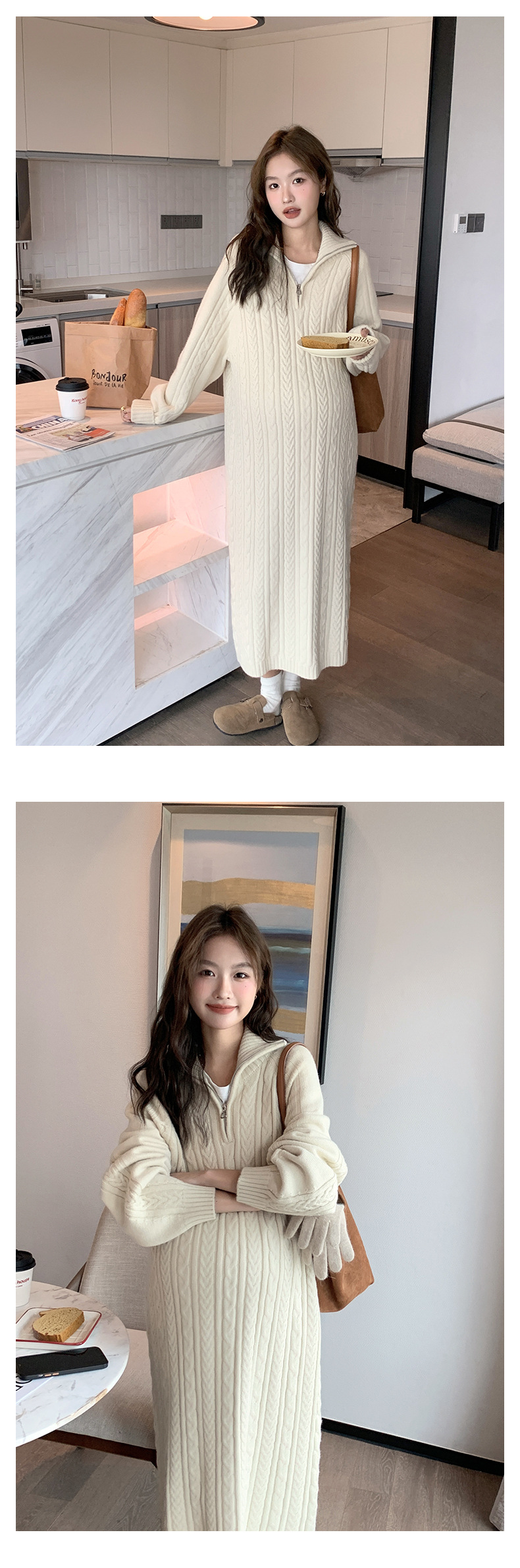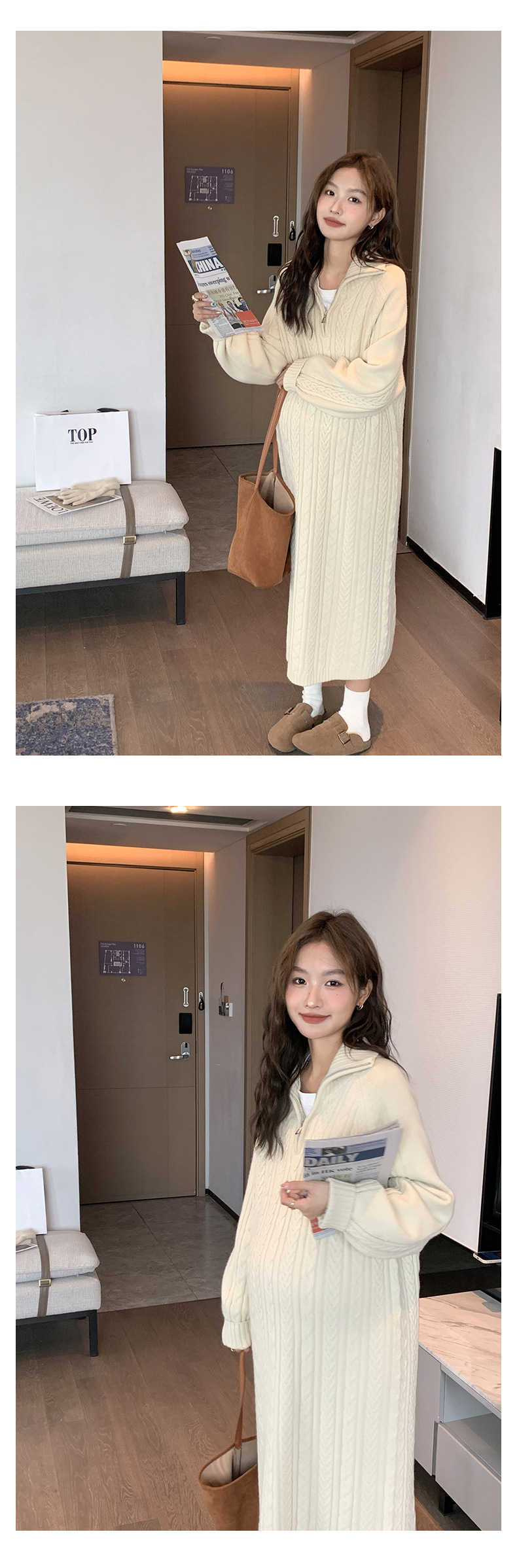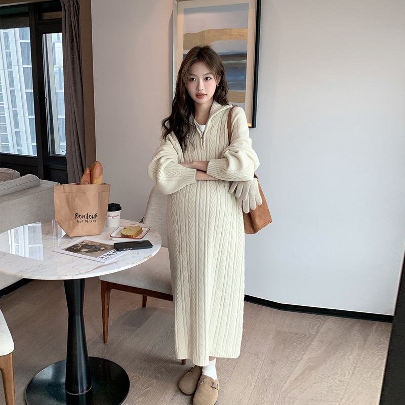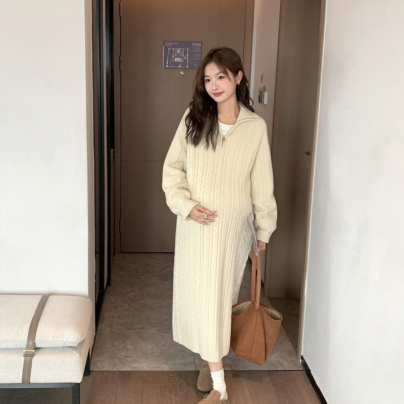 Осенне-зима Новое корейское длинное платье для беременных женщин с короткой молнией, Повседневное платье с тонким воротником