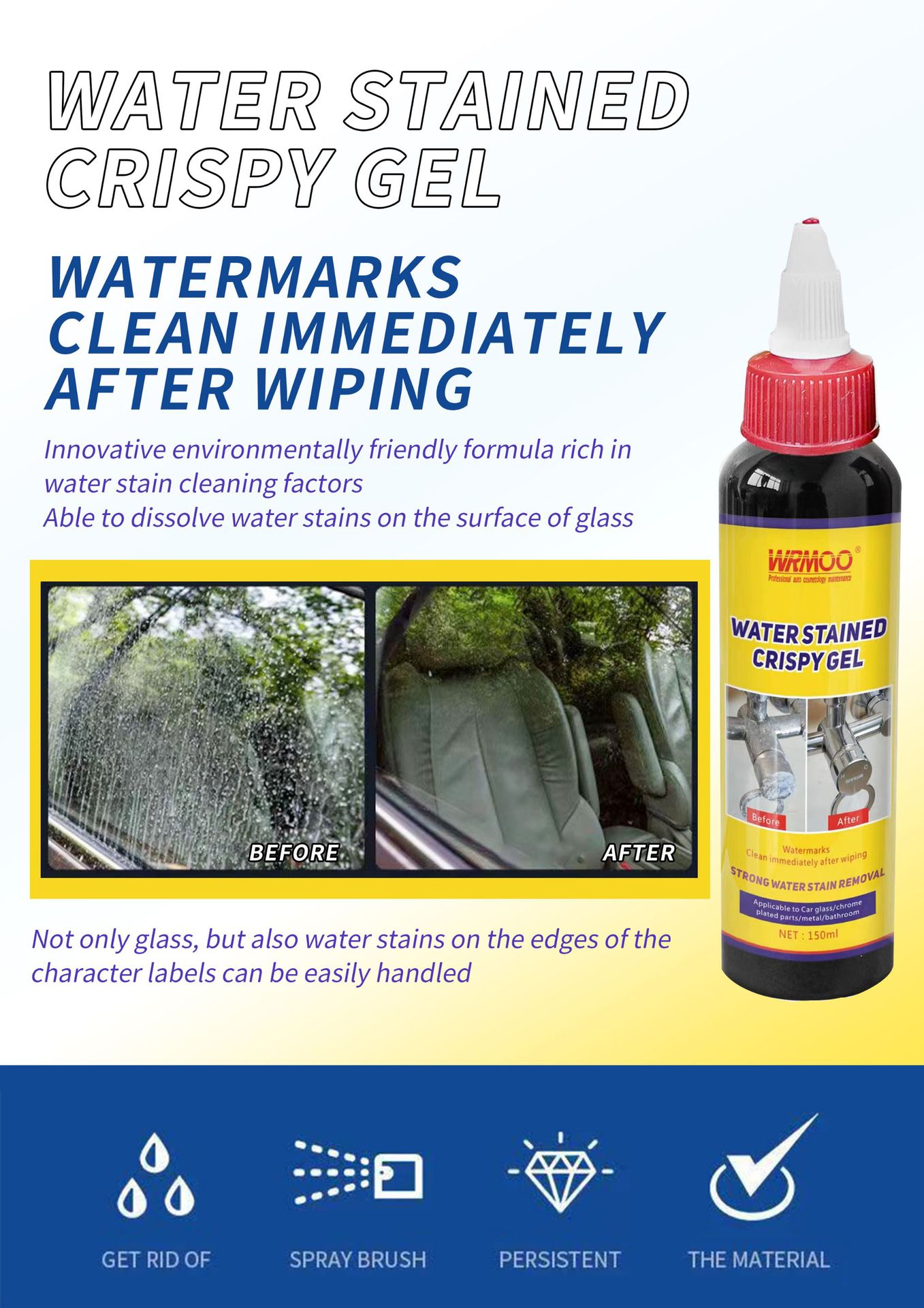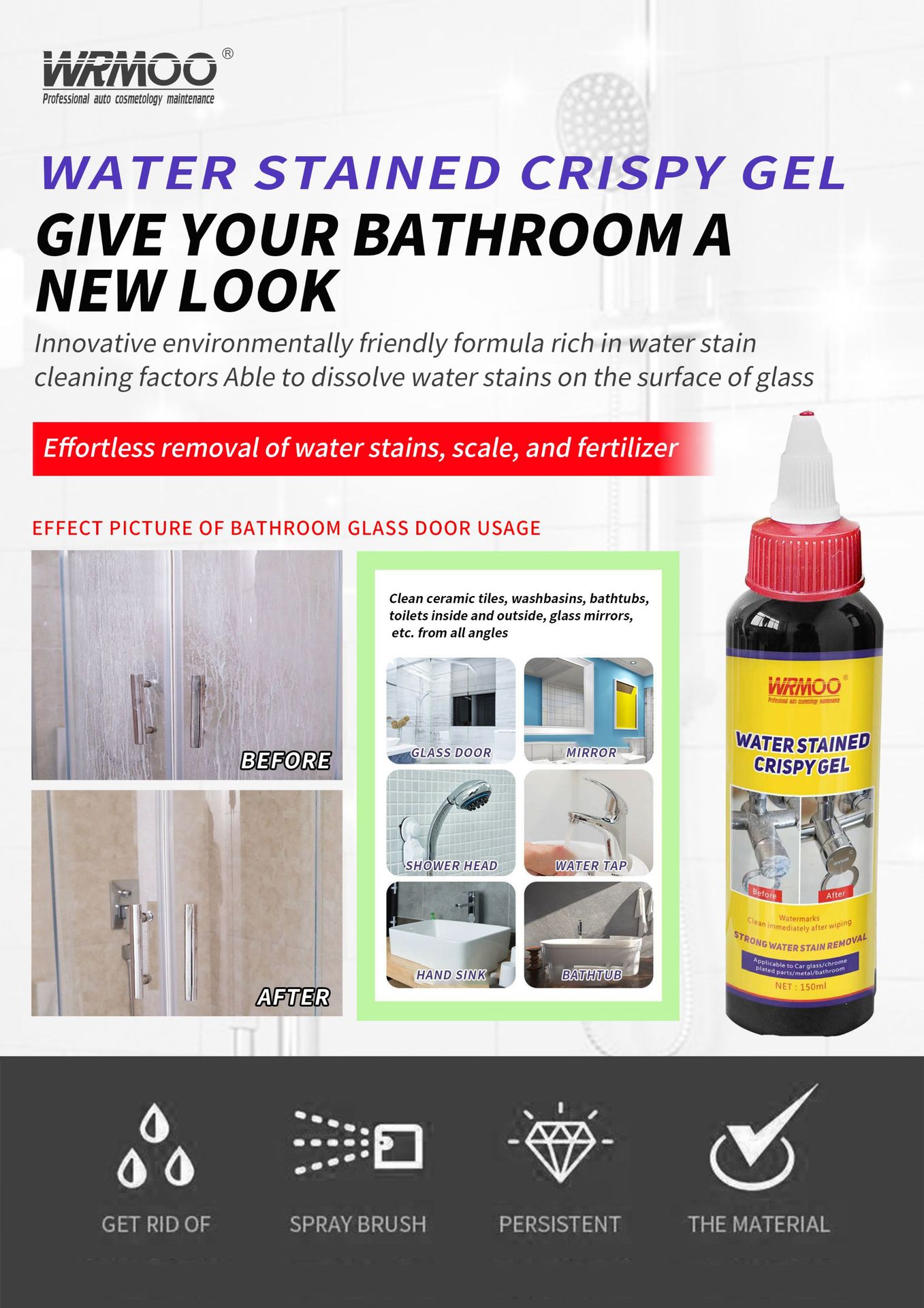 Трансграничный WRMOO водяное пятно хрустящий Гель жидкий смеситель для ванной комнаты шкала душевая стеклянная плитка очиститель для ванной комнаты