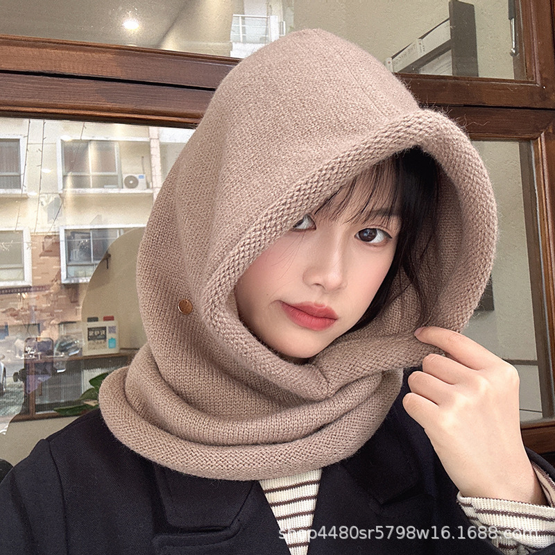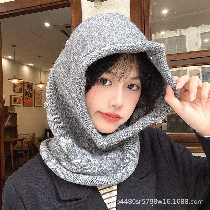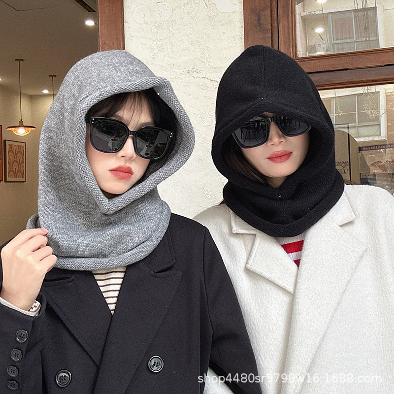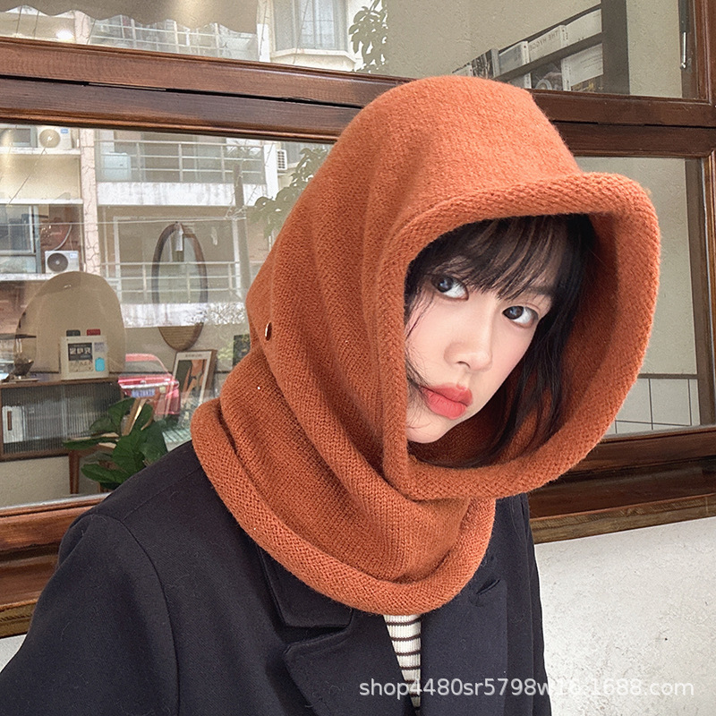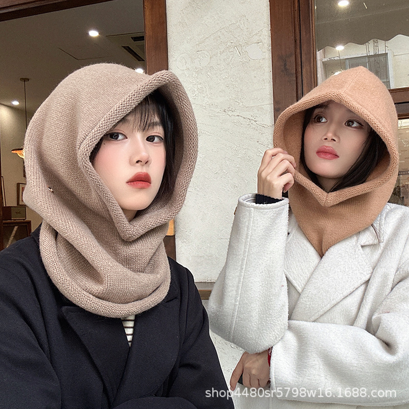 Однотонная цельная шапка Baotou, модная женская зимняя теплая шапка из одного продукта, шерстяной вязаный воротник на шее