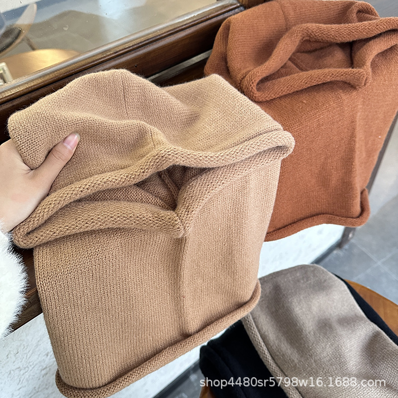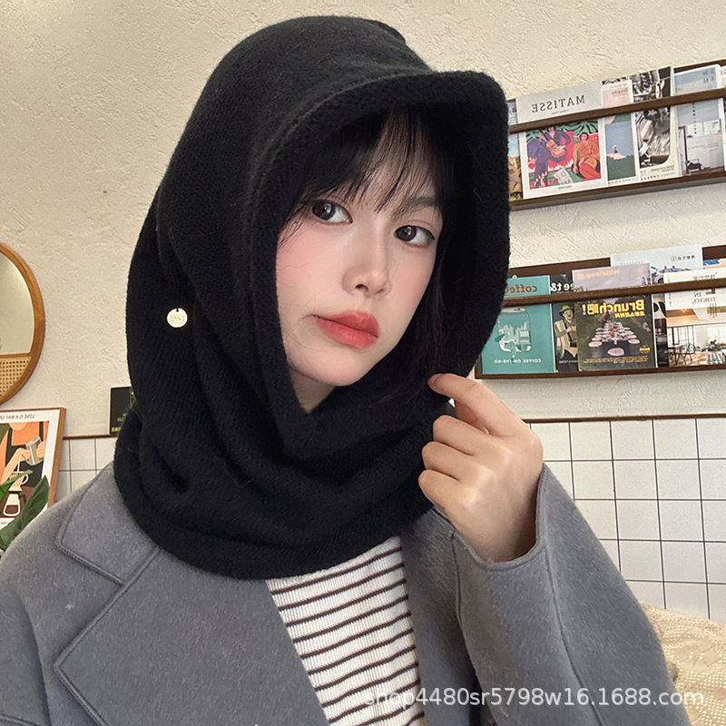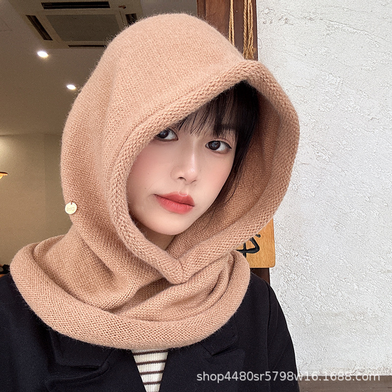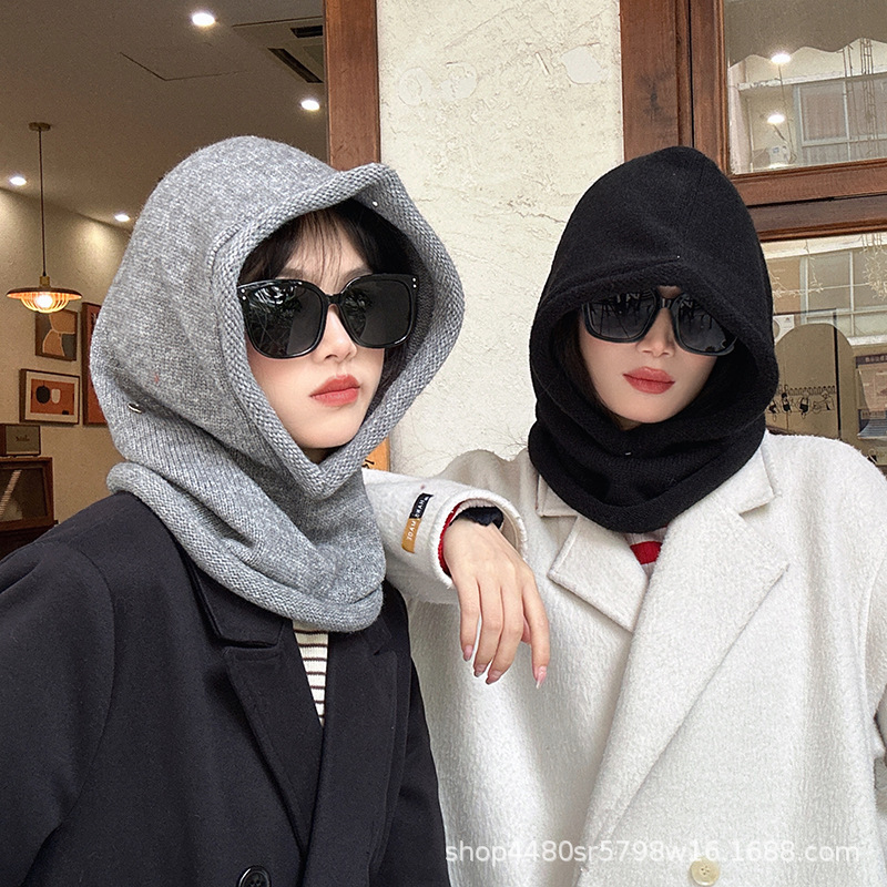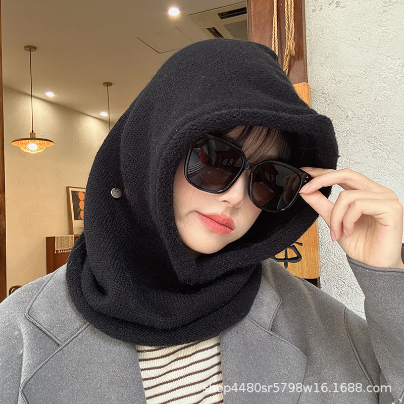 Однотонная цельная шапка Baotou, модная женская зимняя теплая шапка из одного продукта, шерстяной вязаный воротник на шее