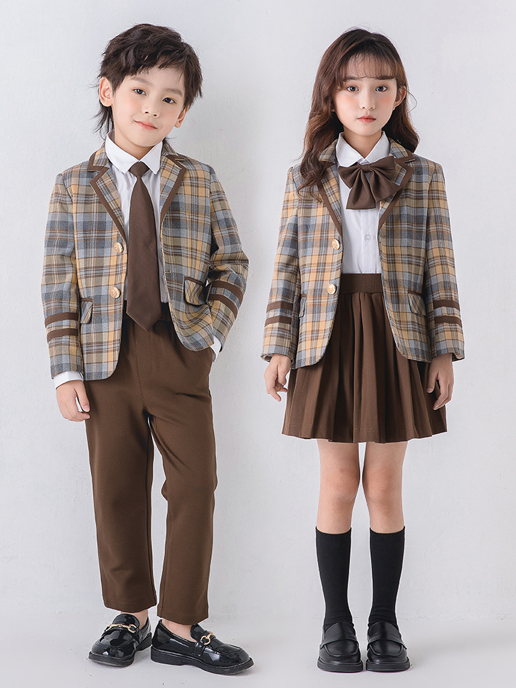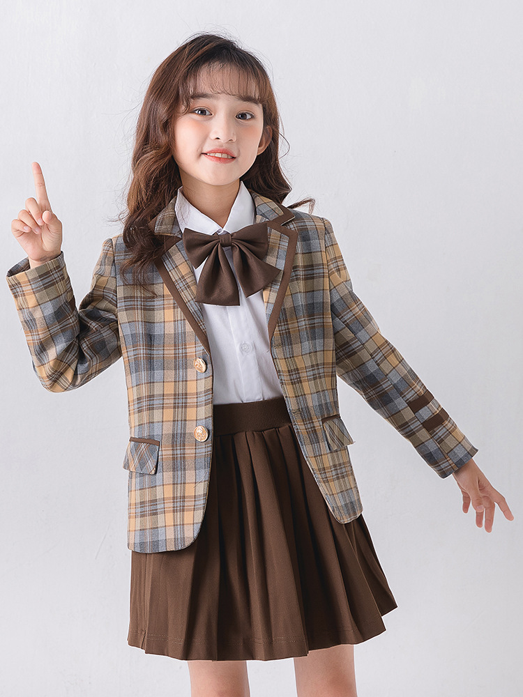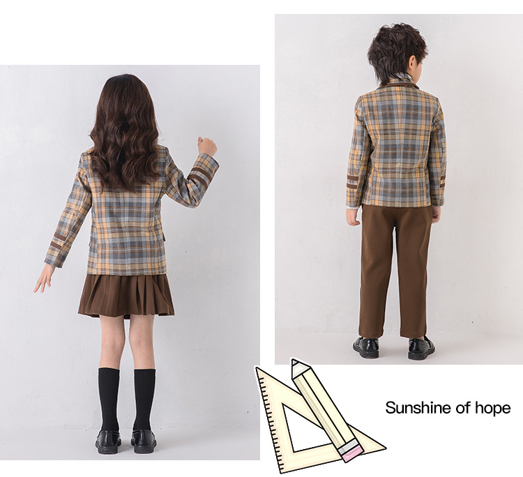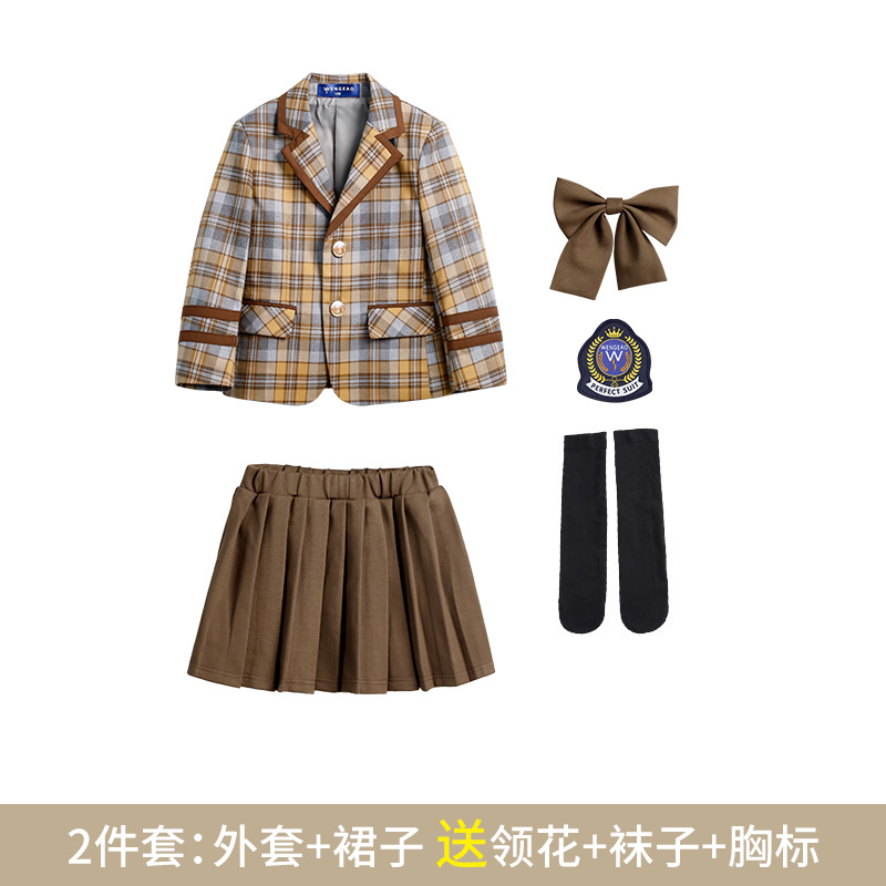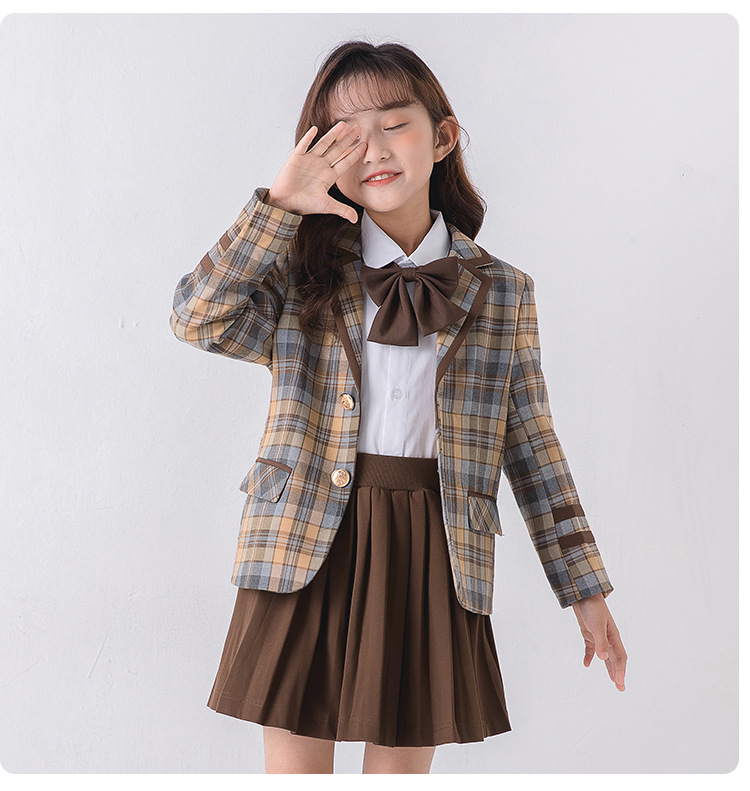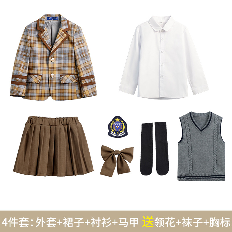 Весенне-осенняя классная одежда для учеников начальной школы Школьная форма в стиле Британской академии Одежда для детского сада Детский костюм в клетку Костюм с юбкой