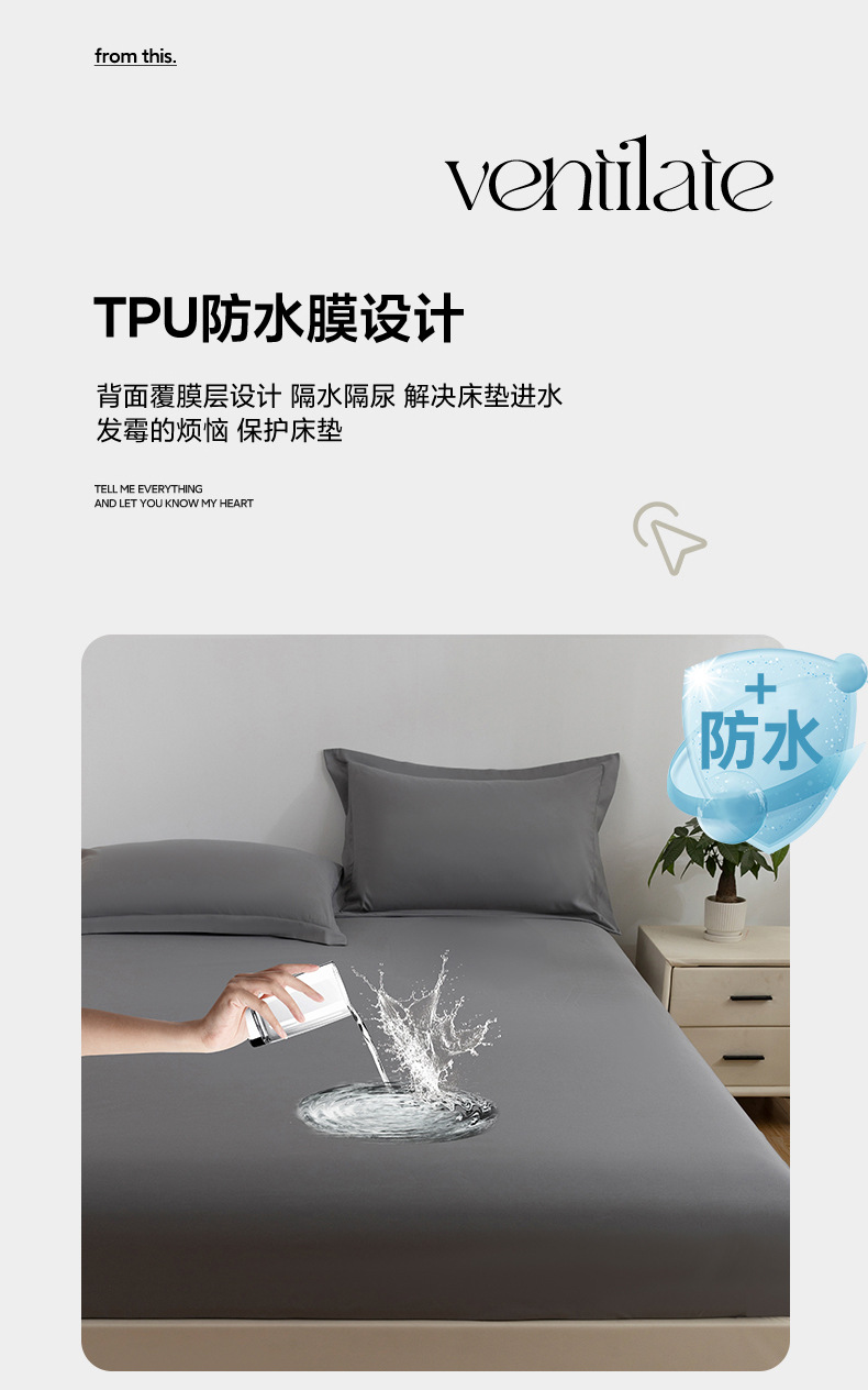Однотонный шлифовальный ТПУ двухслойный водонепроницаемый чехол для кровати, приятный для кожи Мягкий пылезащитный чехол, мембранная накладка, защитный чехол Simmons, постельное белье