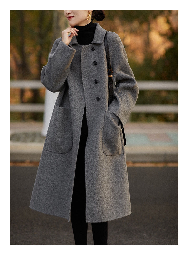 Плюс размер женская шерстяная шерстяная шуба женская средняя длинная 2024 осень и зима новая свободная двухсторонняя плюшевая твидовая куртка