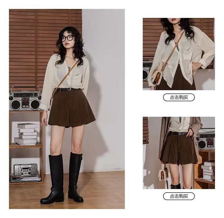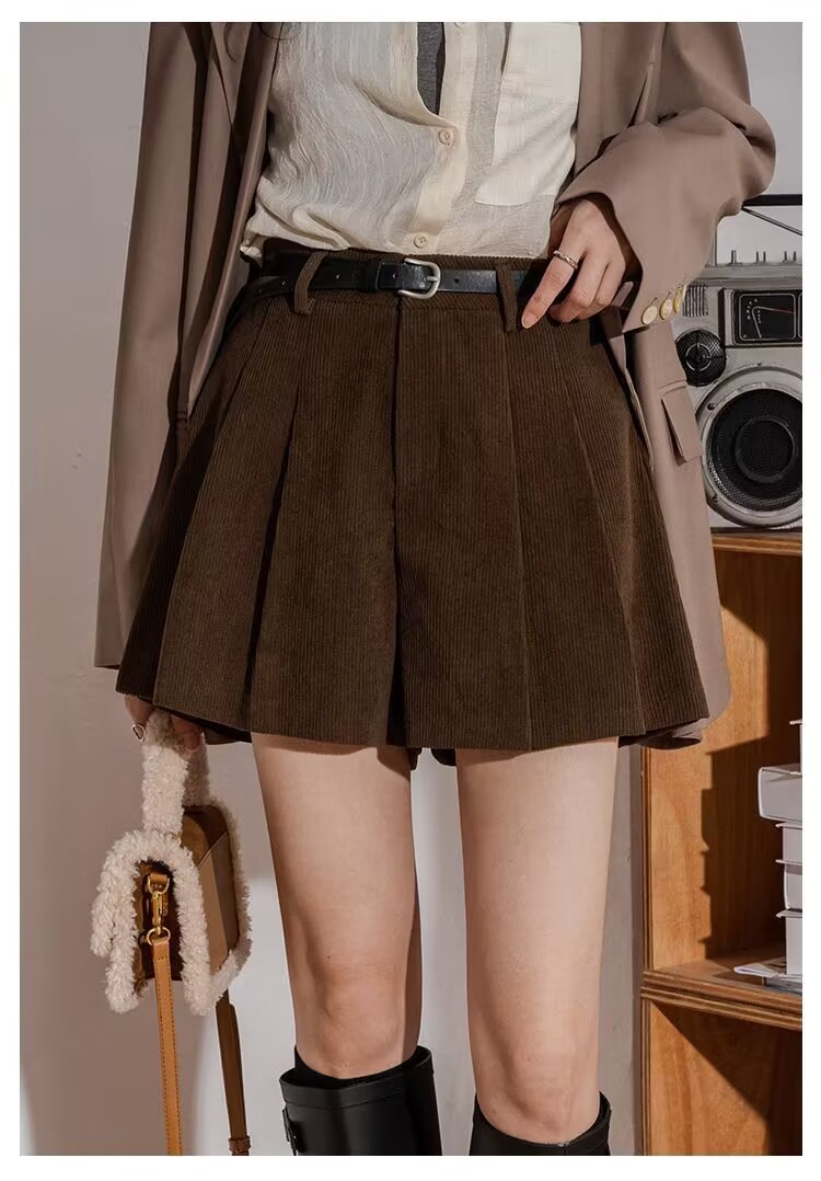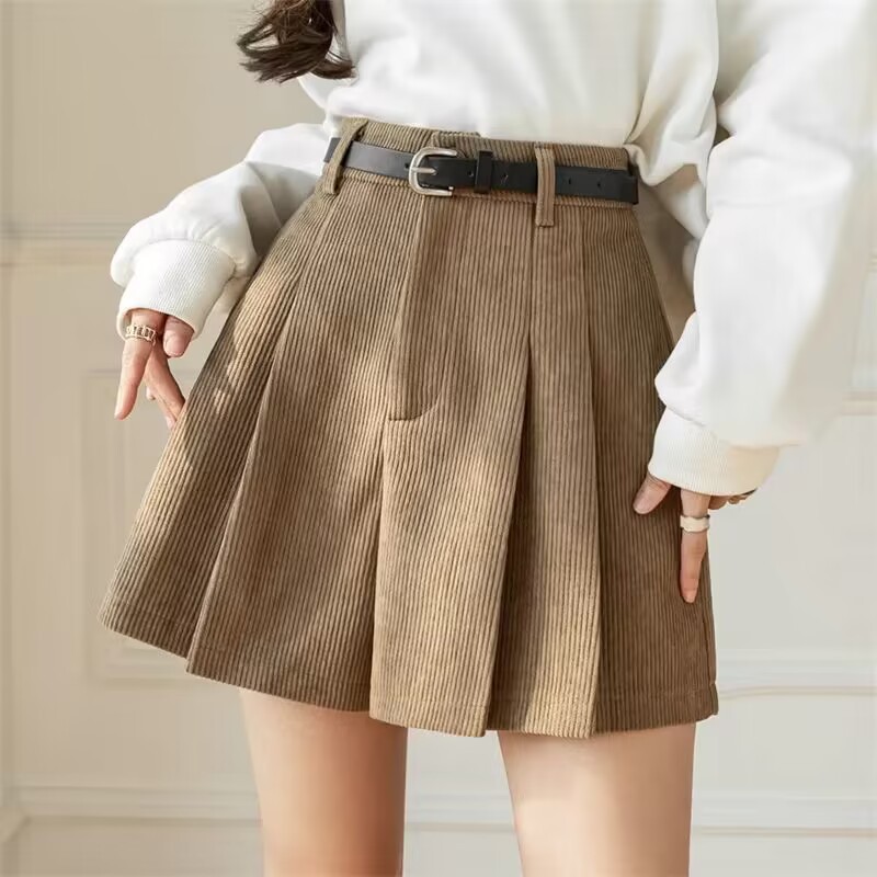 Вельветовые плиссированные утягивающие повседневные шорты с широкими штанинами для женщин, осень-зима 2025, новинка, с высокой талией, для миниатюрных фигур, шорты-брюки для ношения поверх одежды