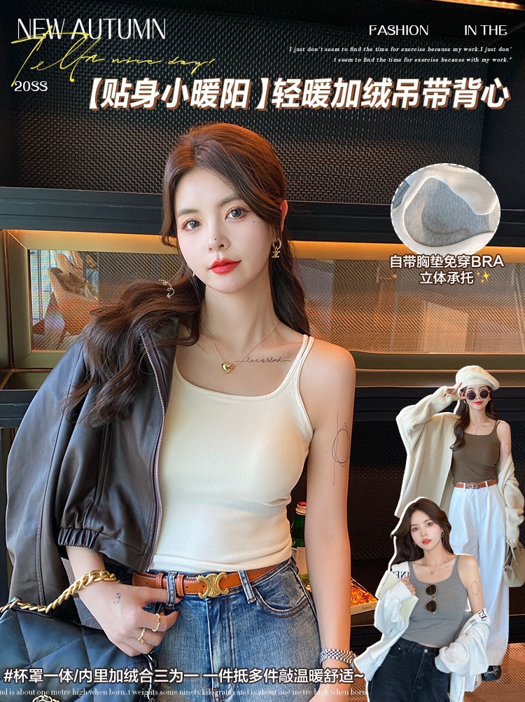 Осенне-зимний чистый цвет с нагрудником, цельный теплый камзол, Женский двухсторонний бархатный с внутренним подогревом, красивый топ на спине