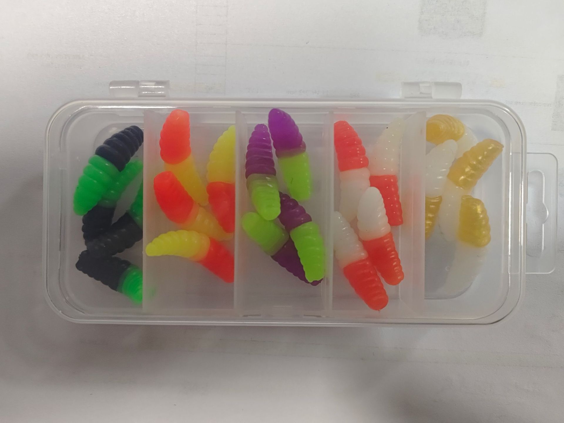 Цвет №1, упаковка из 20 штук; Цвет №2, упаковка из 20 штук; Цвет №3, упаковка из 20 штук; №4, цвет, упаковка 20 шт.; №5, цвет, упаковка 20 шт.; Двухцветный хлебный червь 5 цветов в штучной упаковке; №1 цвет одинарный; №2, однотонный цвет; Цвет №3, одинарный; Цвет №4, одинарный; №5, однотонный цвет